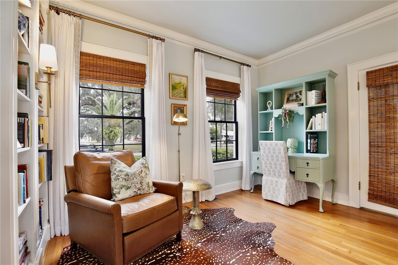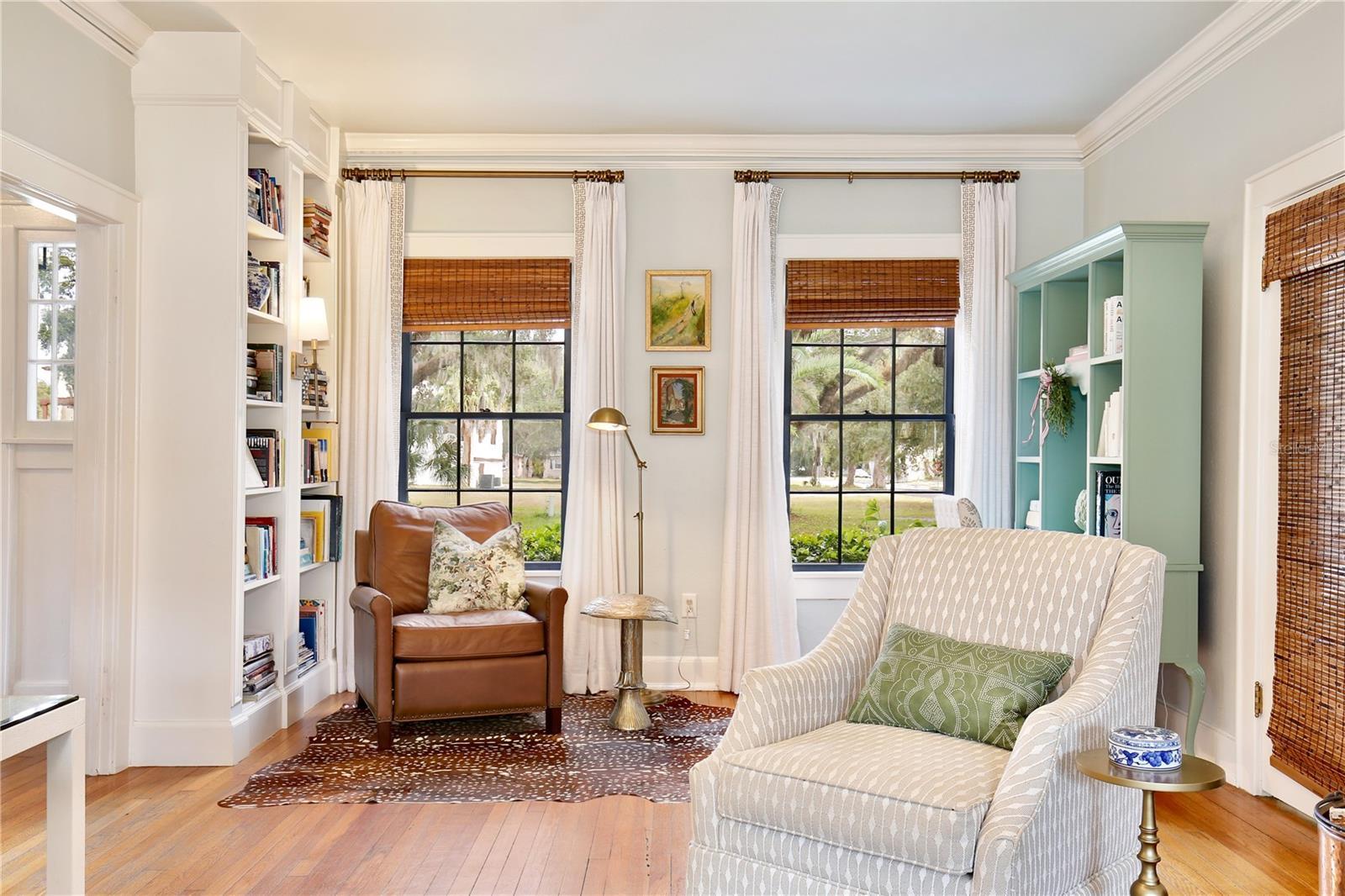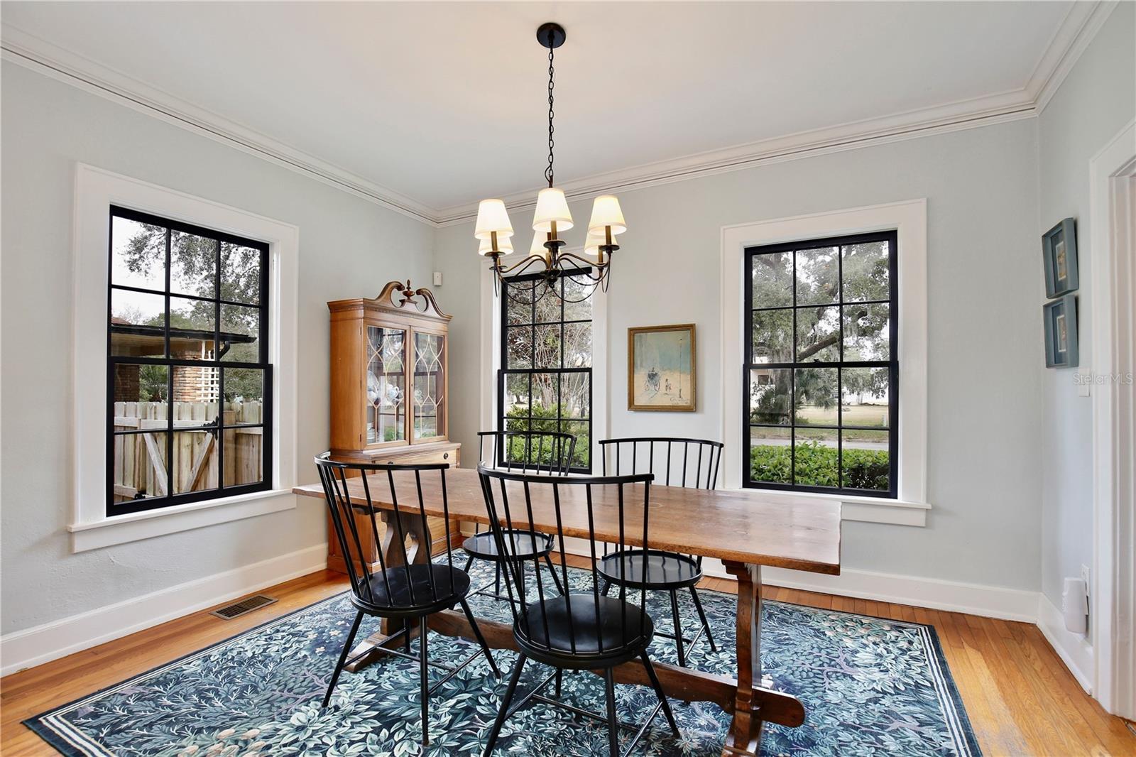 Welcome to 918 S. Palmetto Avenue! This 1921 Colonial Revival home is located on a large corner lot in Historic Downtown Sanford’s Residential Historic District. Featuring 3 bedrooms, 2 1/2 bathrooms + 2 flex rooms, this home also has a 600+ sq. ft., 2-car detached garage (new garage door doors with openers, 2025). This home has been thoughtfully renovated over the last decade, and the end result is a beautiful home that is also COMFORTABLE and FUNCTIONAL for modern day living. As you enter the home's foyer you'll notice the stately staircase, the centerpiece of the traditional Center Hall Colonial floor plan. The dining room and kitchen have been updated to an open floor plan, with a Carrera marble peninsula-style countertop, traditional white cabinetry, stainless steel appliances (natural gas range) and subway tile back splash. This kitchen features 3 pantries, one of which is currently used as a party closet! Around the corner is a nook/bar area, followed by the mud porch, and downstairs powder bath. The large living room features 4 large windows, a decorative brick fireplace, a custom built-in bookcase (2017), custom draperies, and 2 French doors leading to a sunroom/flex room/office. Hardwired ceiling speakers are located throughout the downstairs of the home - so great for entertaining! Beyond the living room is a downstairs sunroom/flex room/office, filled with windows that make it a light and bright space - perfect for an office or den. Upstairs, surrounding a large and open upstairs landing, you'll find the large primary suite, two additional bedrooms, large full bathroom with double sink vanity sink, and upstairs laundry room. A small yet magical room is found at the top of the stairs - a flex room, perfect for a small office, nursery, meditation/yoga retreat, reading nook...the big primary suite features three large double-hung windows, as well as a wall of custom closets installed by Closet by Design (2024). Walking into the classic en suite bathroom is like stepping into a relaxing spa, featuring Carrera marble tile, an antique cast iron claw foot tub, windows, amazing natural light, double sink vanity, and plenty of spaces to store everything neatly. The nearly .25 acre corner lot also features a private wood-fenced (2024) backyard, with a masonry garden wall, original brick paver patio, TREX deck, and a 600 SQ FOOT DETACHED GARAGE. This home is move-in ready: HVAC 2016 and 2021, ROOF 2021, full electrical re-wire 2016, re-plumbed (PEX and CPVC), natural gas tankless water heater, and new natural gas line (2016.) The irrigation system provides reclaimed water. Nearly all of the original double-hung wood windows have been professionally restored. This home was selected as the filming location for two DISNEY commercials and just last month, a feature film, reflecting its timeless appeal and photogenic design. She has been LOVED and is ready for her lucky new stewards! The detached garage also offers opportunities for ADU conversion to become a mother in law suite, pool cabana, guesthouse etc. Don't miss your chance to own a piece of Sanford's past and future in this special home, neighborhood and community.