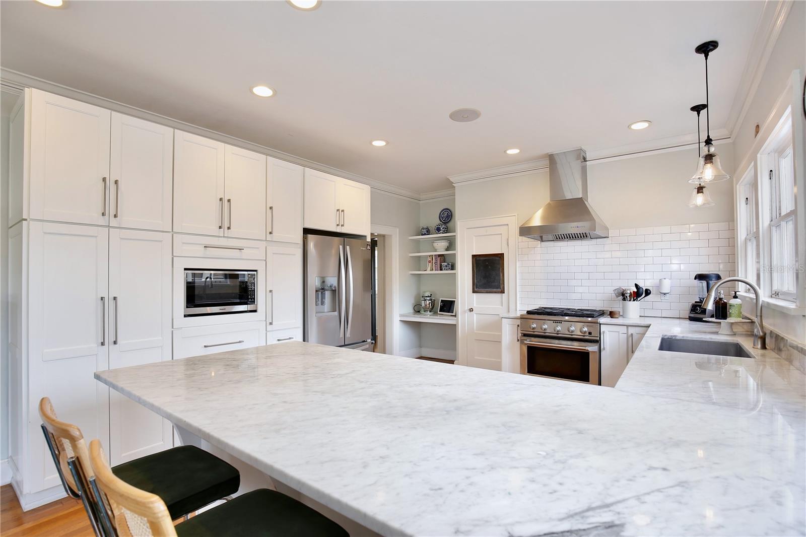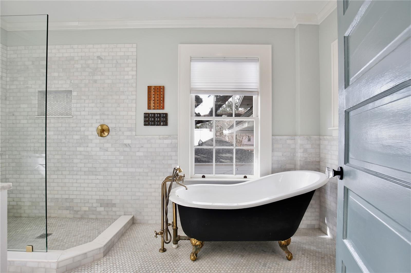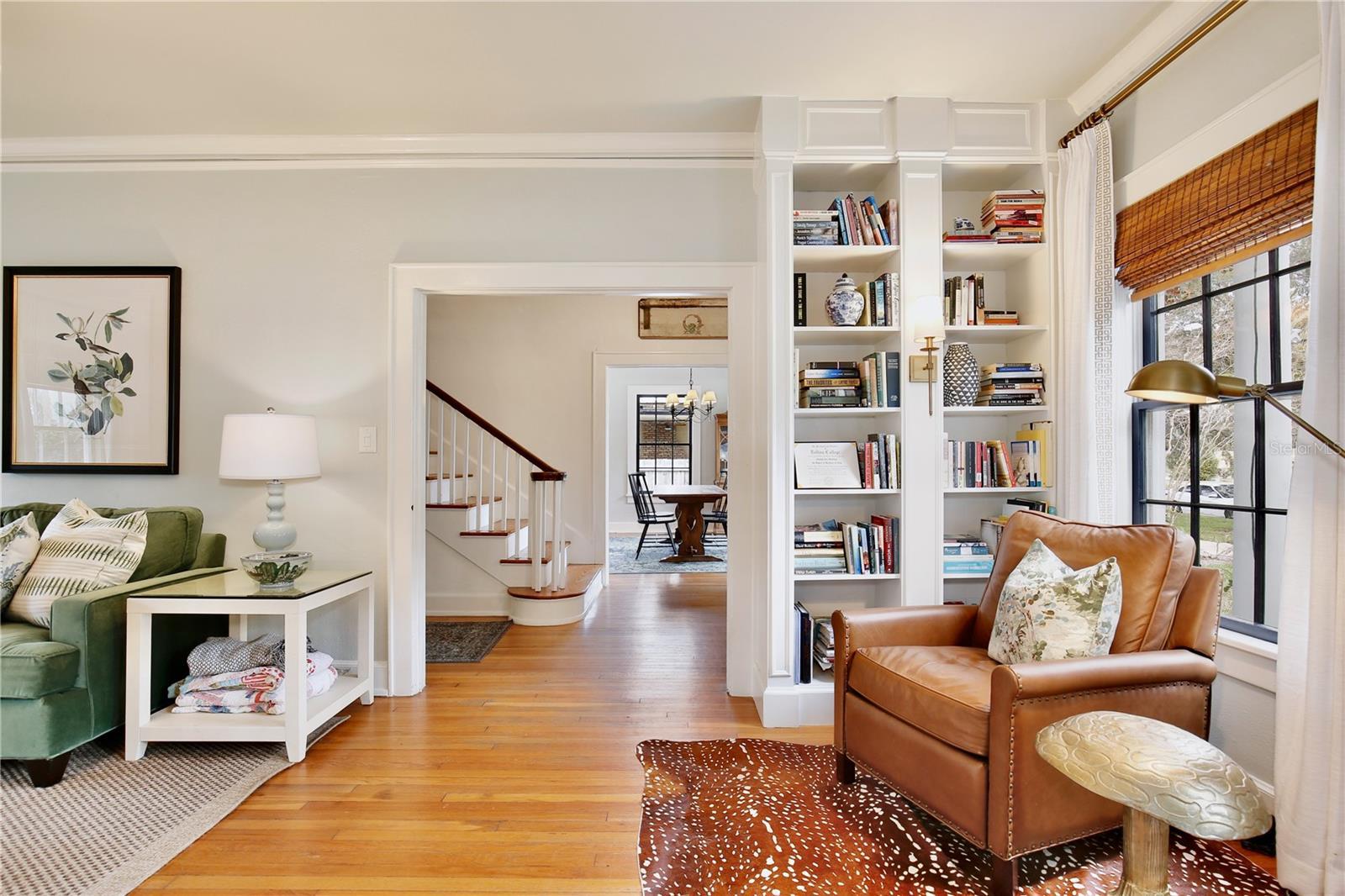 Welcome to 918 S. Palmetto Avenue! This 1921 Colonial Revival home is located on a large corner lot in Historic Downtown Sanford’s Residential Historic District. Featuring 3 bedrooms, 2 1/2 bathrooms + 2 flex rooms, this home also has a 600+ sq. ft., 2-car detached garage (new garage door doors with openers, 2025). This home has been thoughtfully renovated over the last decade, and the end result is a beautiful home that is also COMFORTABLE and FUNCTIONAL for modern day living. As you enter the home's foyer you'll notice the stately staircase, the centerpiece of the traditional Center Hall Colonial floor plan. The dining room and kitchen have been updated to an open floor plan, with a Carrera marble peninsula-style countertop, traditional white cabinetry, stainless steel appliances (natural gas range) and subway tile back splash. This kitchen features 3 pantries, one of which is currently used as a party closet! Around the corner is a nook/bar area, followed by the mud porch, and downstairs powder bath. The large living room features 4 large windows, a decorative brick fireplace, a custom built-in bookcase (2017), custom draperies, and 2 French doors leading to a sunroom/flex room/office. Hardwired ceiling speakers are located throughout the downstairs of the home - so great for entertaining! Beyond the living room is a downstairs sunroom/flex room/office, filled with windows that make it a light and bright space - perfect for an office or den. Upstairs, surrounding a large and open upstairs landing, you'll find the large primary suite, two additional bedrooms, large full bathroom with double sink vanity sink, and upstairs laundry room. A small yet magical room is found at the top of the stairs - a flex room, perfect for a small office, nursery, meditation/yoga retreat, reading nook...the big primary suite features three large double-hung windows, as well as a wall of custom closets installed by Closet by Design (2024). Walking into the classic en suite bathroom is like stepping into a relaxing spa, featuring Carrera marble tile, an antique cast iron claw foot tub, windows, amazing natural light, double sink vanity, and plenty of spaces to store everything neatly. The nearly .25 acre corner lot also features a private wood-fenced (2024) backyard, with a masonry garden wall, original brick paver patio, TREX deck, and a 600 SQ FOOT DETACHED GARAGE. This home is move-in ready: HVAC 2016 and 2021, ROOF 2021, full electrical re-wire 2016, re-plumbed (PEX and CPVC), natural gas tankless water heater, and new natural gas line (2016.) The irrigation system provides reclaimed water. Nearly all of the original double-hung wood windows have been professionally restored. This home was selected as the filming location for two DISNEY commercials and just last month, a feature film, reflecting its timeless appeal and photogenic design. She has been LOVED and is ready for her lucky new stewards! The detached garage also offers opportunities for ADU conversion to become a mother in law suite, pool cabana, guesthouse etc. Don't miss your chance to own a piece of Sanford's past and future in this special home, neighborhood and community.
