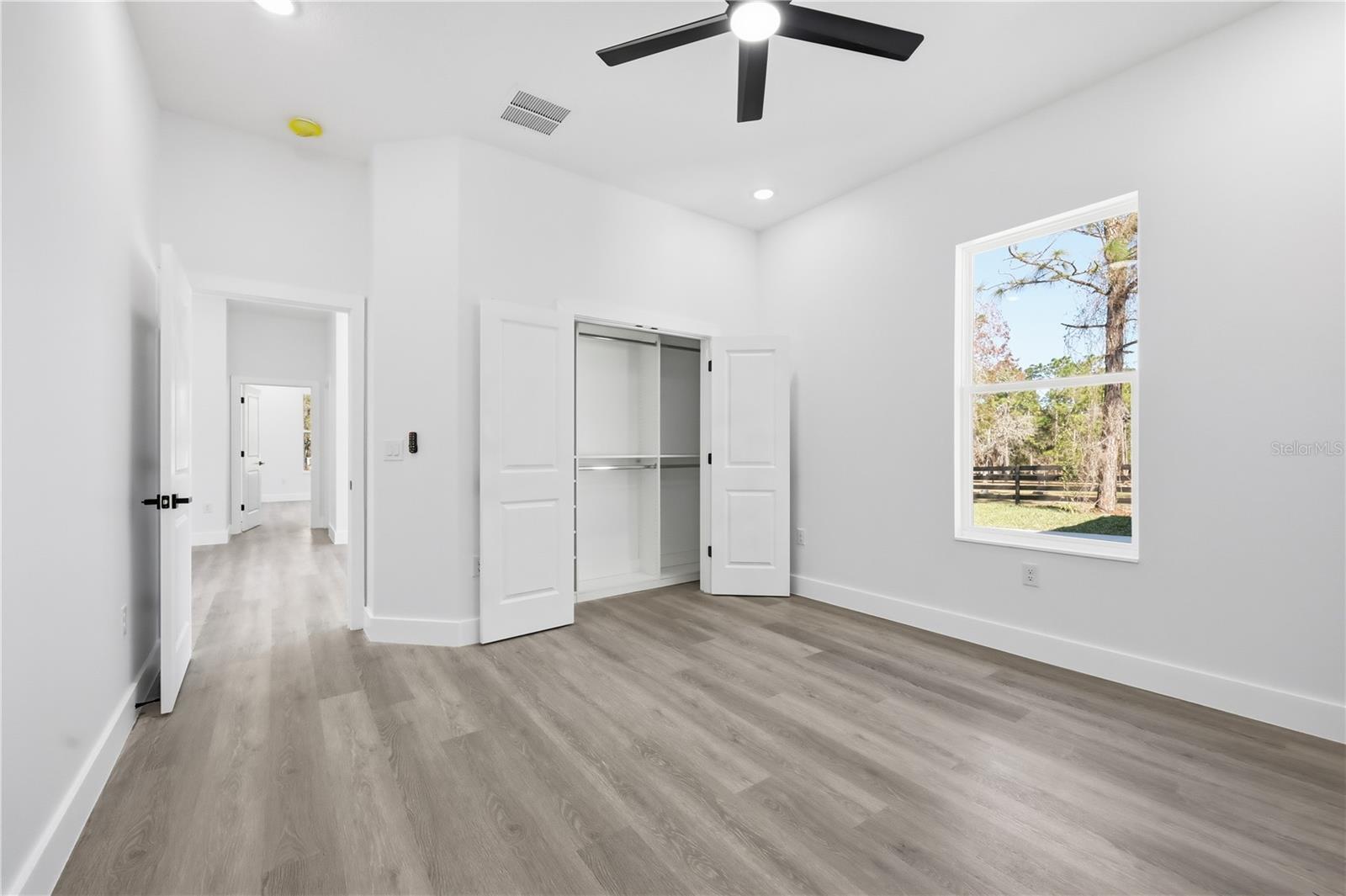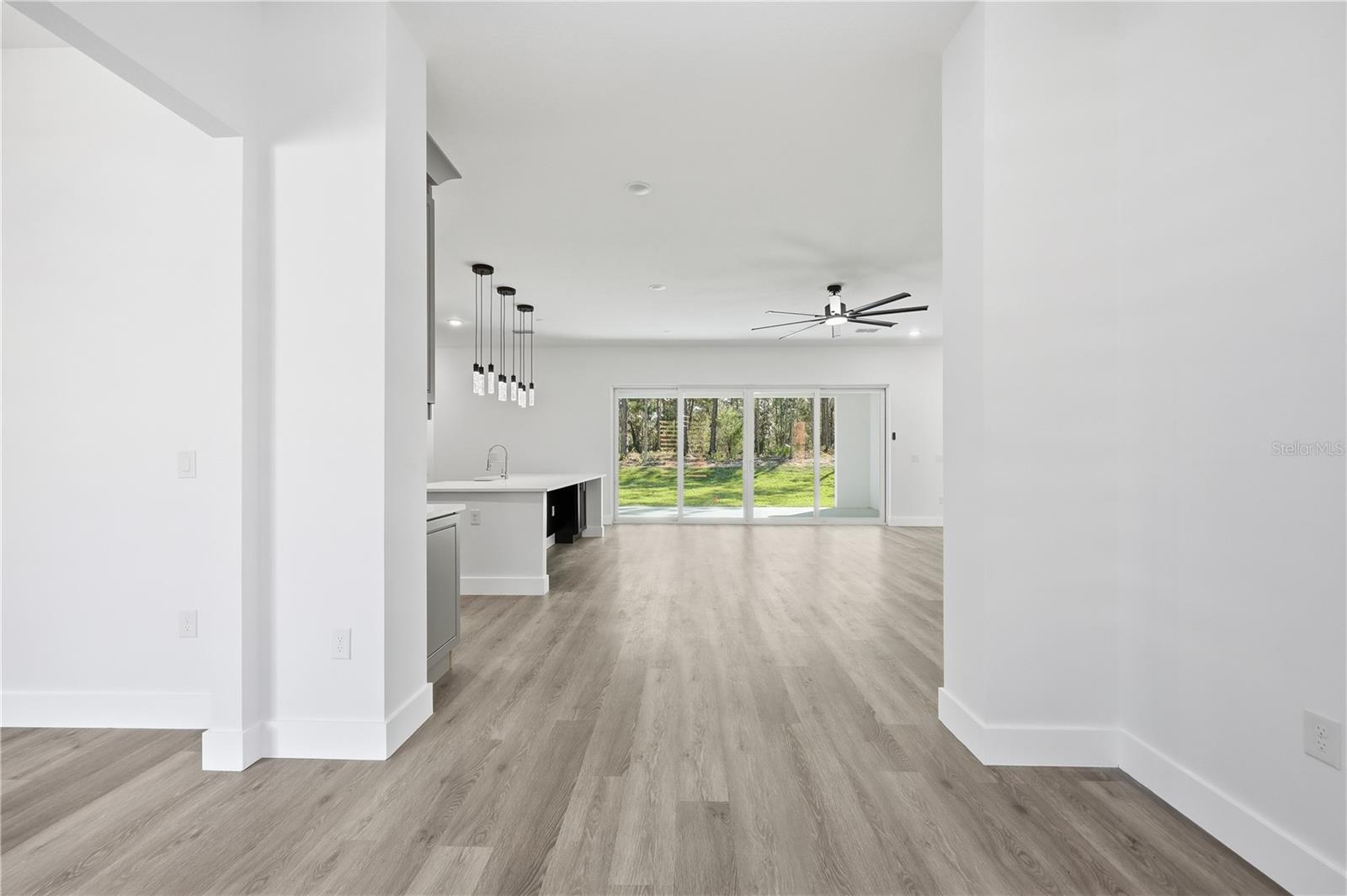 One or more photo(s) has been virtually staged. This stunning new construction 4-bedroom, 3-bath home features a thoughtfully designed open-concept layout that blends comfort with modern elegance. The spacious living area showcases an electric fireplace, creating a warm and inviting atmosphere ideal for both entertaining and everyday living. The luxurious primary suite offers a spa-inspired bathroom with a walk-in glass-enclosed shower, a freestanding soaking tub, and refined finishes. Designed for privacy and flexibility, second bedroom to the right with a full bathroom and tub. and a bonus room/den. To the left, two additional bedrooms share another full bathroom—perfect for guests, there is a bonus space you could use for games, office. A beautiful formal dining area with a large picture window fills the home with natural light and showcases views of the inviting front yard with mature, tall trees. The modern kitchen features quartz countertops, stylish cabinetry, and flows seamlessly into the main living spaces. Additional highlights include an indoor laundry room with an exterior door leading to a detached two-car garage, connected by a covered walkway to keep you protected from the rain. Last but not least, the rear sliding doors take you to an ample lanai, where the built-in summer grill turns weekends into barbecues and every evening into laid-back outdoor escapes. Located in Wildwood, Florida. This home is conveniently close to the World Equestrian Center and The Villages, known for upscale dining, live music, and vibrant social gatherings. Enjoy easy access to major highways for convenient travel to Orlando and Tampa.