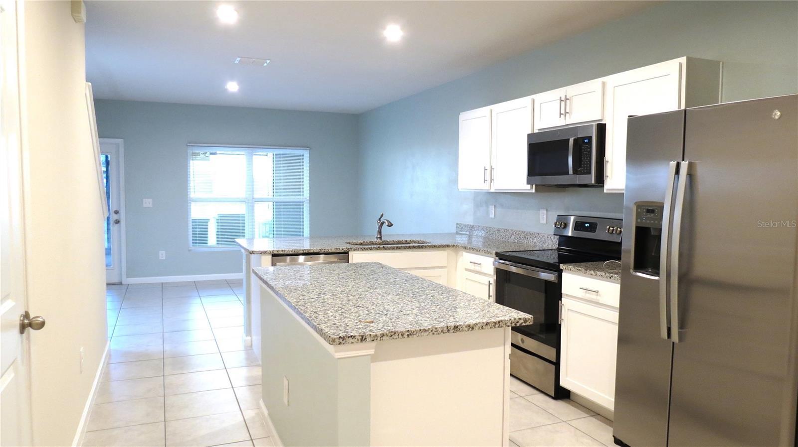 Welcome to this stunning 3-bedroom, 2.5-bath townhome built in 2022, located in the desirable Magnolia Grove community. As an end unit, this home benefits from additional windows that flood the space with natural light, creating a bright and inviting atmosphere throughout. The open-concept floor plan is ideal for both everyday living and entertaining. The kitchen showcases crisp white cabinetry, elegant granite countertops, stainless steel appliances, a built-in microwave, a spacious pantry, and a center island offering extra storage and prep space. The first floor also features ceramic tile flooring, recessed lighting, a convenient half bath, a security system for added peace of mind, and access to a screened lanai—perfect for relaxing or hosting guests. Upstairs, you will find a laundry closet with a stackable washer and dryer for added convenience. The spacious primary suite includes a walk-in closet and an en-suite bathroom with a large double-sink vanity and walk-in shower. Two additional bedrooms and a full bath are located upstairs and thoughtfully separated from the primary bedroom for enhanced privacy. Additional highlights include a one-car garage with epoxy flooring and an automatic garage door opener, ceramic tile throughout the main living areas, and carpeted bedrooms for comfort. Ideally situated in sunny Davenport, this home offers easy access to US-27 and I-4, making travel throughout Central Florida effortless. Walt Disney World is just 20 miles away, and nearby Posner Park provides a wide array of shopping, dining, and entertainment options, including an IMAX movie theater. Don’t miss this exceptional opportunity—schedule your private showing today.