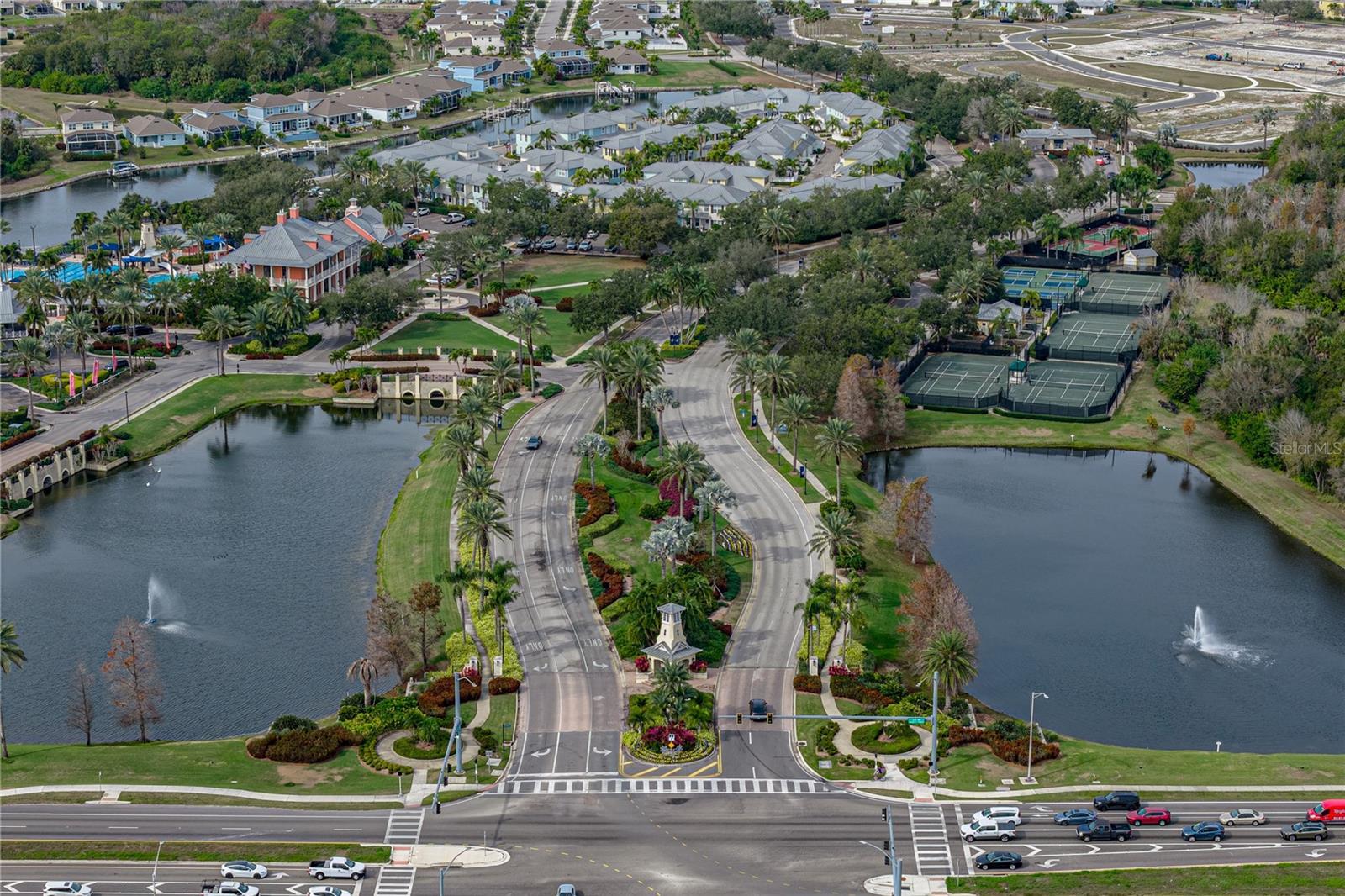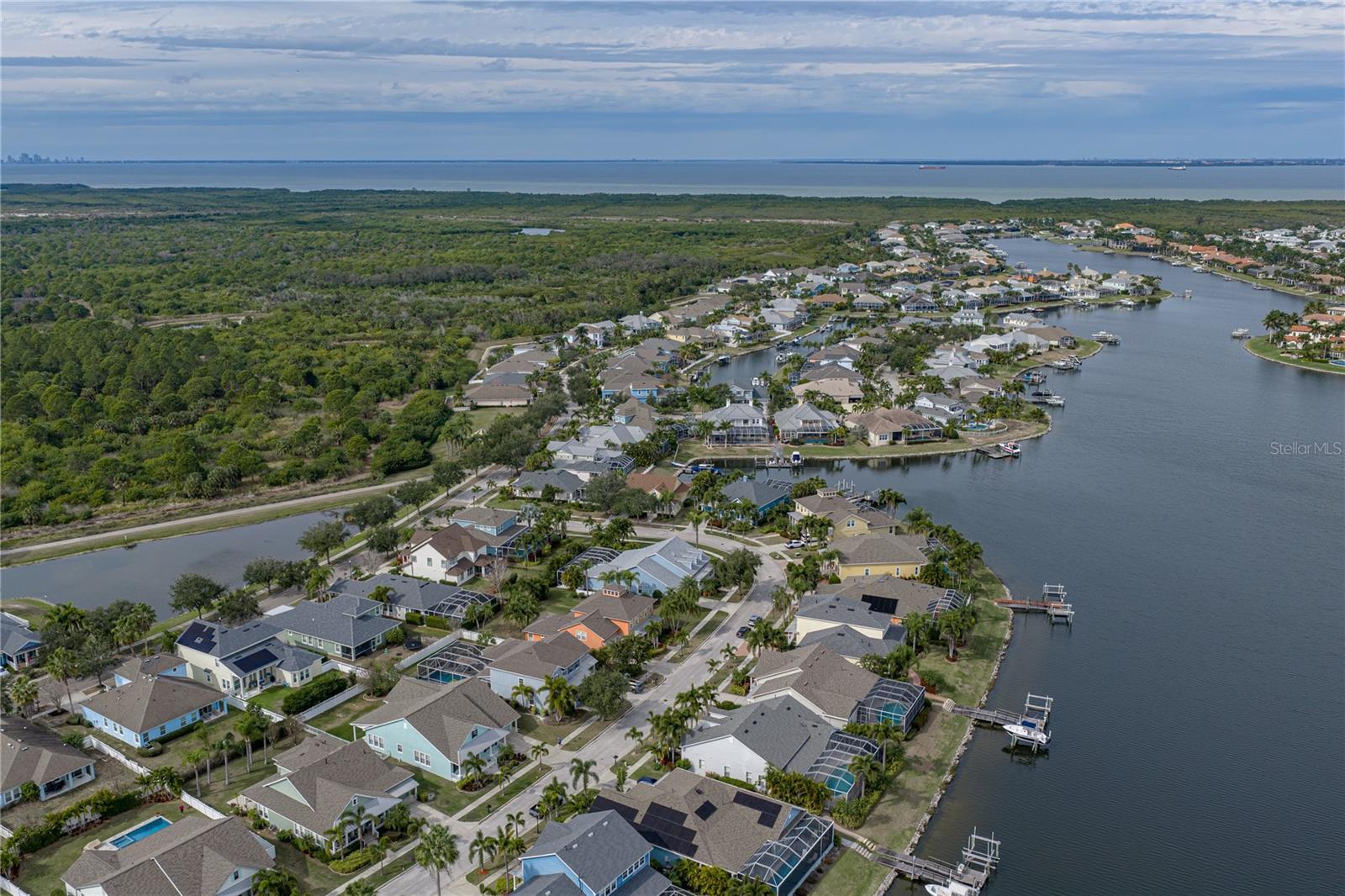Nestled within the sought-after waterfront community of MiraBay, this beautifully crafted single-family residence blends Key West–inspired architecture with lush tropical landscaping to create a private coastal retreat. Set on a large corner interior lot, the property offers added space, privacy, and the rare advantage of its own private irrigation well, keeping the grounds vibrant year-round. Designed for effortless single-level living, the home features four spacious bedrooms and three full bathrooms, thoughtfully arranged to maximize comfort and flow. Sunlight fills the open living areas, highlighting the home’s breezy coastal character and inviting atmosphere. Step outside to your personal oasis: a screen-enclosed saltwater pool with color-changing LED lighting, perfect for evening ambiance or lively weekend gatherings. The expansive deck and lanai area provide generous room for lounging, dining, and entertaining, all while enjoying the serenity of your tropical surroundings. Resort style living here includes an expansive clubhouse with fine and casual dining, heated Olympic pool and waterslide overlooking the waterfront, Har Tru tennis courts, state of the art fitness center, basketball courts, fishing, kayaking and most of all security within this gated community. This MiraBay gem offers the ideal blend of style, comfort, and outdoor living—an exceptional opportunity to experience the relaxed Florida lifestyle in one of Apollo Beach’s premier communities.
