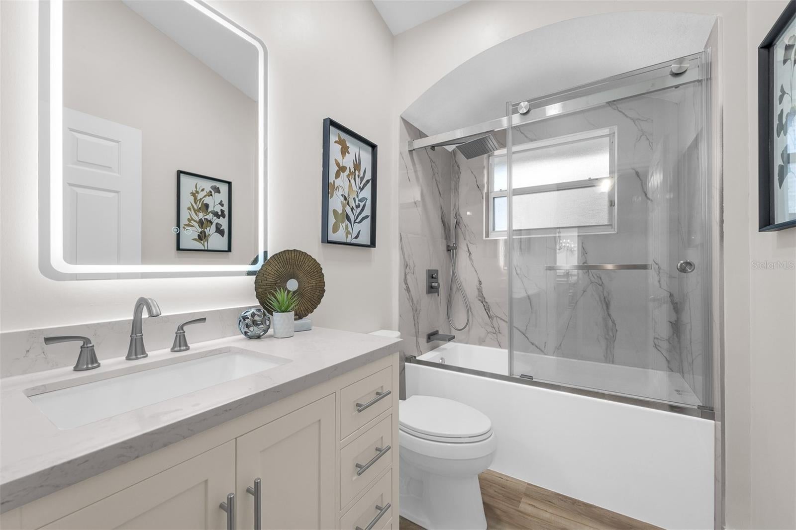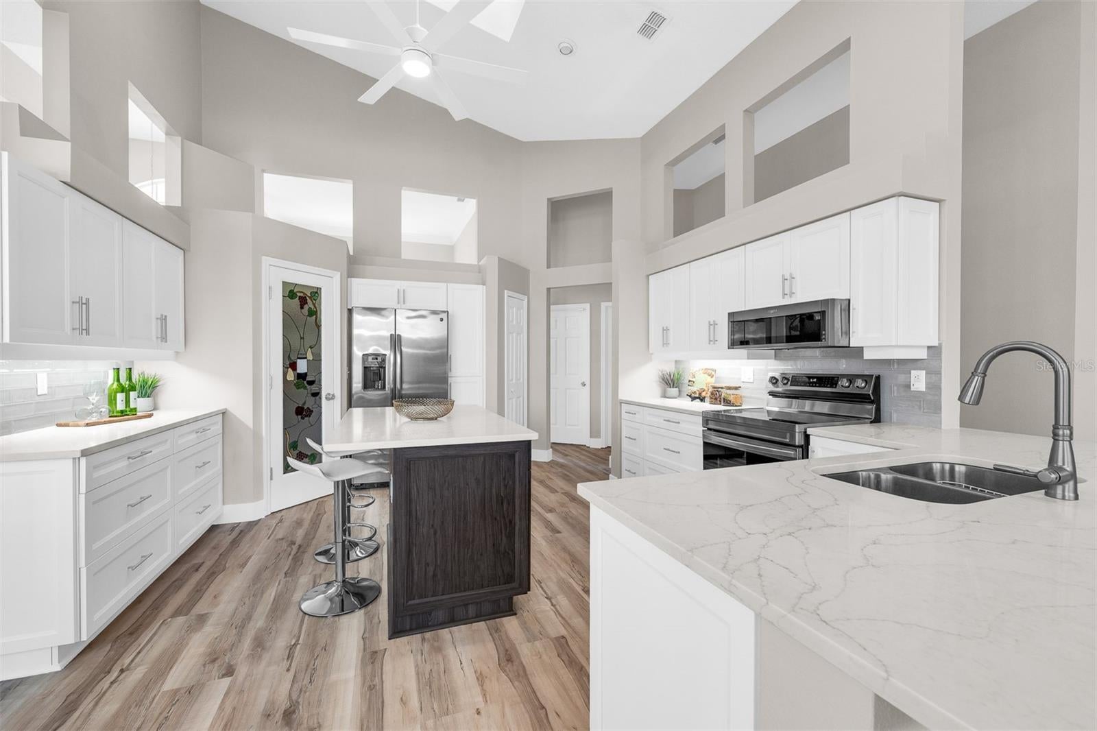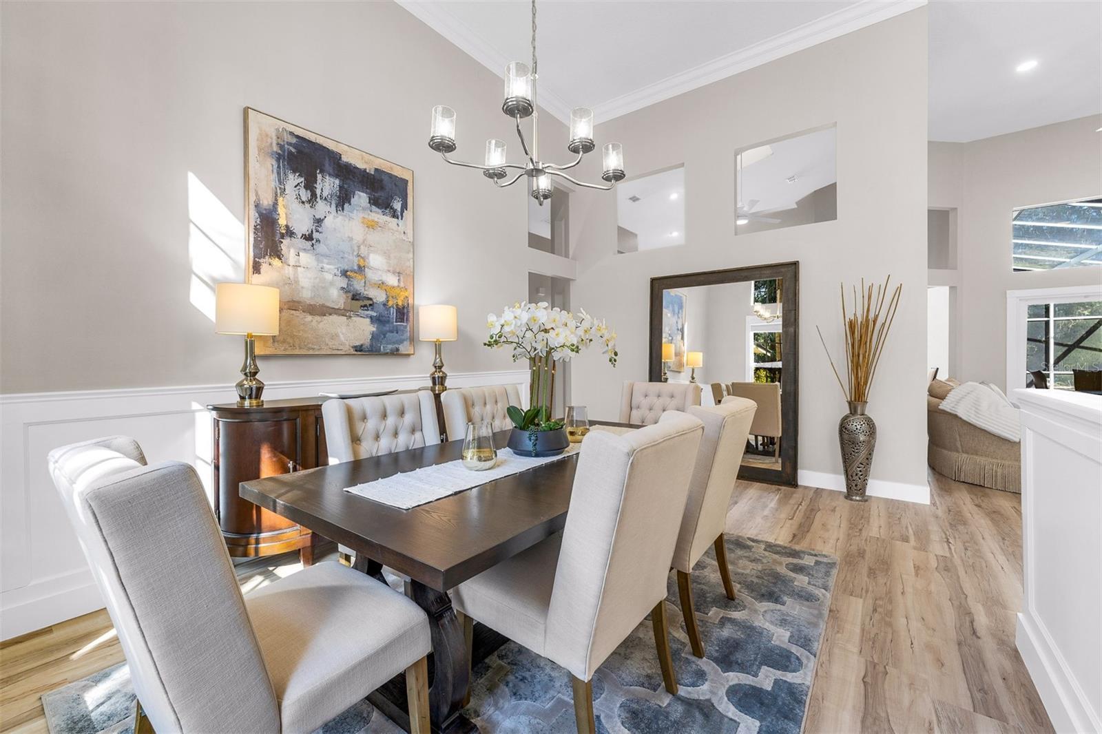 Under contract-accepting backup offers. Welcome to 845 Coach Lamp Court, an extensively renovated HOME W/ POOL tucked away in the highly sought-after 24-hour guard-gated community of Lake Forest, where every detail has been thoughtfully curated to create a home that feels both refined and welcoming. From the moment you arrive, the setting at the end of a quiet cul-de-sac sets the tone for privacy and tranquility, and as you step inside, witness soaring ceilings and abundant natural light immediately draws you in. The home unfolds effortlessly with NEW LUXURY VINYL PLANK FLOORING guiding you through bright, connected living spaces designed for both everyday life and entertaining. NEW LIGHT FIXTURES, FRESH INTERIOR PAINT, NEW CEILING FANS, and updated hardware add a crisp, modern finish throughout. Formal and casual living areas flow naturally, offering flexibility and comfort, while subtle details like MODERN BASEBOARDS throughout the whole house (2025) reinforce the home’s clean cohesive design. The heart of the home is the kitchen, where QUARTZ COUNTERS, modern cabinetry, and a large center island create a space meant for gathering, cooking, and conversation, all seamlessly connected to adjacent living areas filled with light and framed by views of the pool beyond. NEW SMART LIGHTING SYSTEM throughout the bedrooms and bathrooms allows the ambiance to shift effortlessly from day to night. Each of the BATHROOMS HAVE BEEN COMPLETELY RENOVATED, delivering a spa-inspired experience, with the primary suite standing out as a true retreat featuring DUAL QUARTZ COUNTER VANITIES, a FREESTANDING SOAKING TUB, an open glass shower, LUXURY LARGE FORMAT PORCELAIN TILE, and BLUETOOTH ENABLED SMART LIGHTING with SPEAKERS. French doors open to the screened-in pool and outdoor living area and OUTDOOR KITCHEN where Florida living comes to life year-round, whether hosting friends, enjoying quiet evenings poolside, or gathering around the summer kitchen in a private, resort-style setting. Beyond the beauty, the home offers peace of mind with a NEWER ROOF replaced in 2022, epoxy garage flooring (2025), and Google Nest Cameras throughout. Every update has been completed with intention, resulting in a move-in-ready home that tells a story of thoughtful renovation, timeless style, and effortless indoor-outdoor living, all conveniently located near shopping, dining, parks, and major roadways, making 845 Coach Lamp Court a truly special opportunity in Sanford.