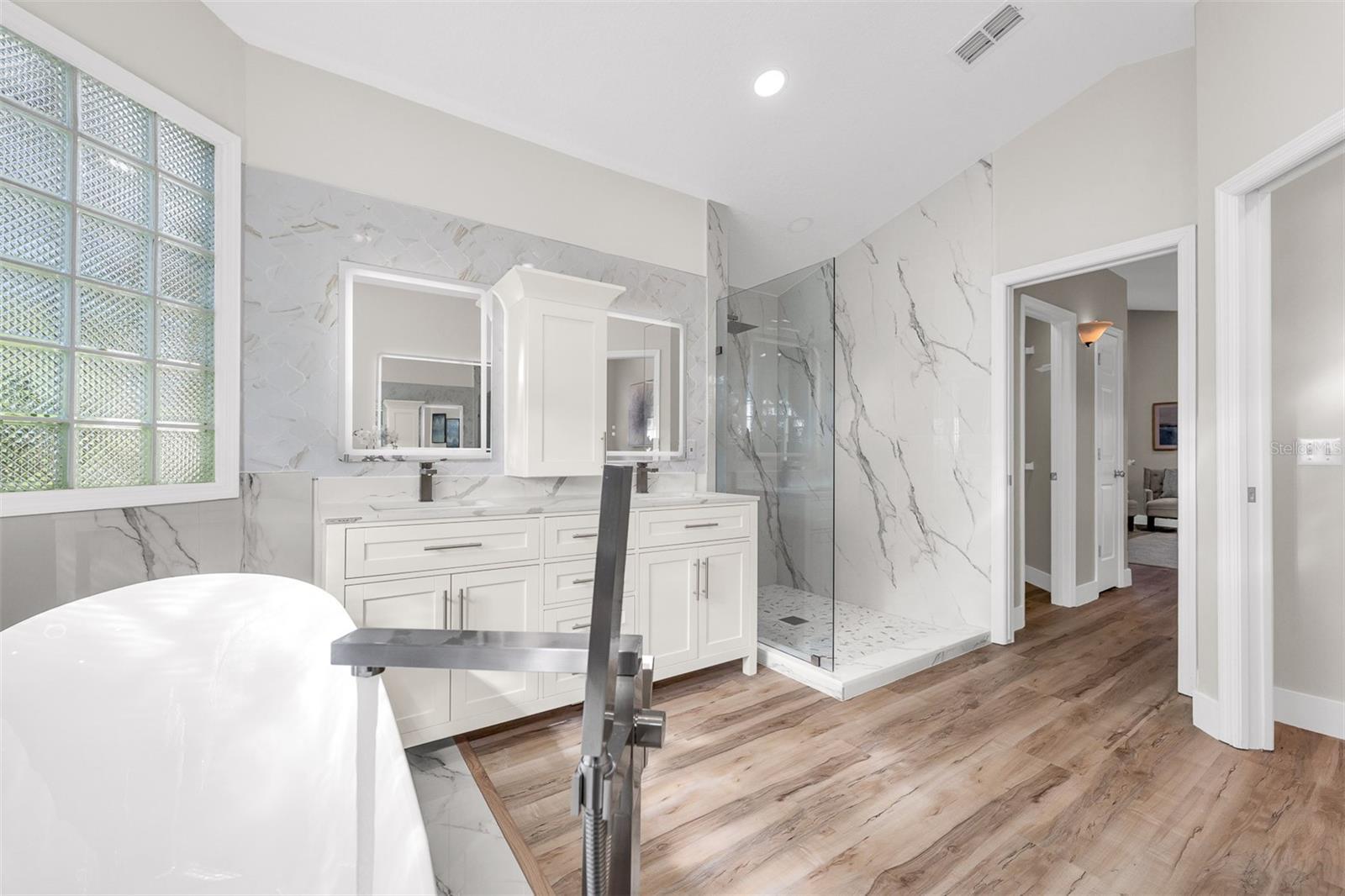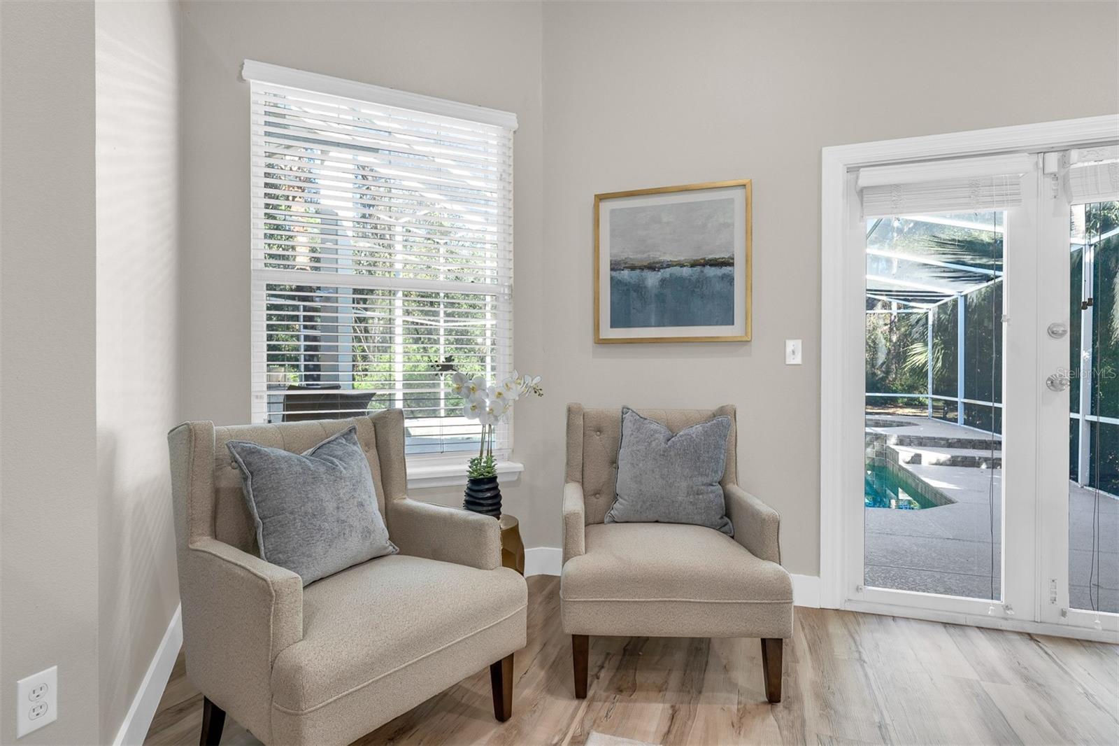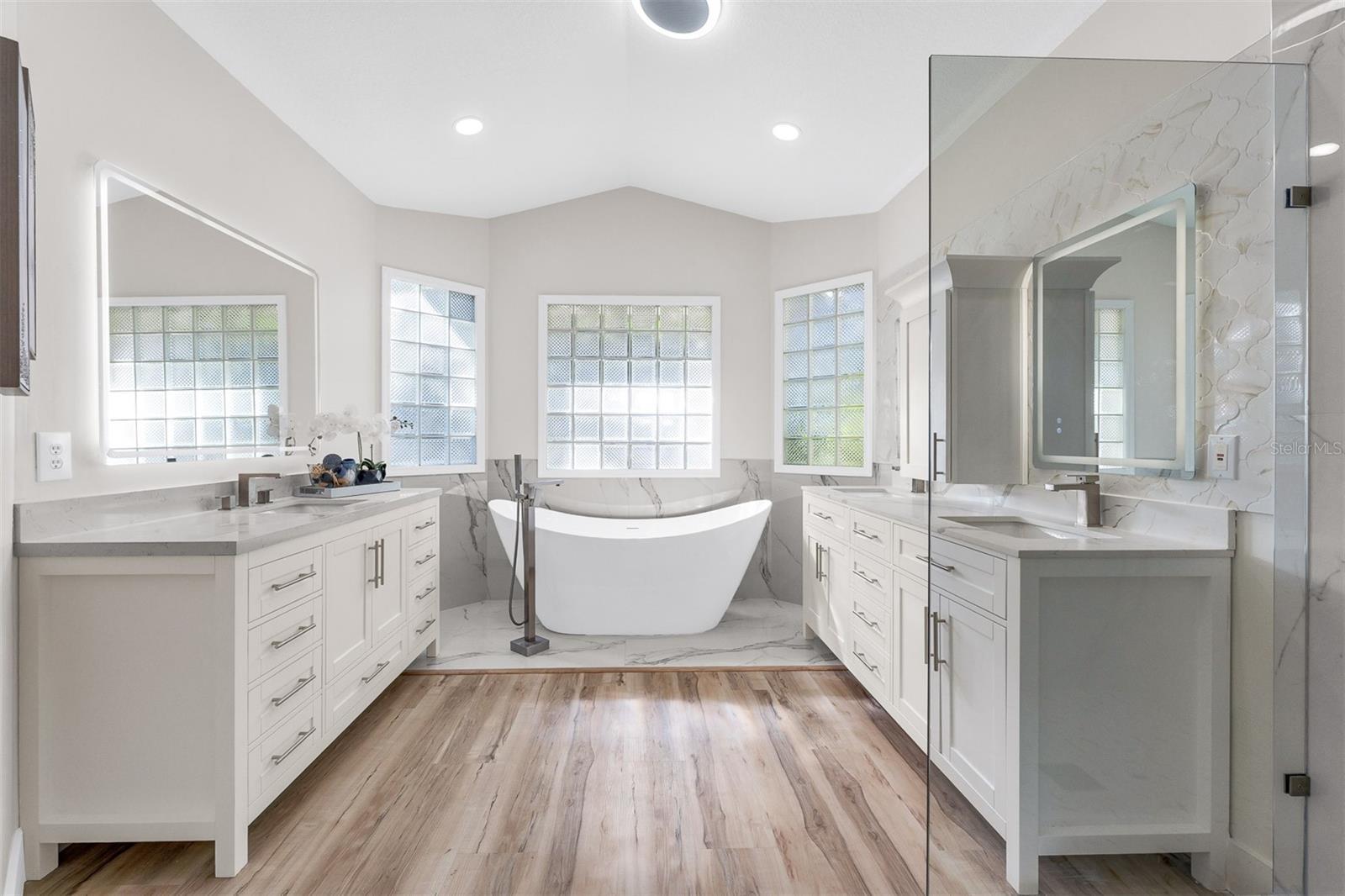 Under contract-accepting backup offers. Welcome to 845 Coach Lamp Court, an extensively renovated HOME W/ POOL tucked away in the highly sought-after 24-hour guard-gated community of Lake Forest, where every detail has been thoughtfully curated to create a home that feels both refined and welcoming. From the moment you arrive, the setting at the end of a quiet cul-de-sac sets the tone for privacy and tranquility, and as you step inside, witness soaring ceilings and abundant natural light immediately draws you in. The home unfolds effortlessly with NEW LUXURY VINYL PLANK FLOORING guiding you through bright, connected living spaces designed for both everyday life and entertaining. NEW LIGHT FIXTURES, FRESH INTERIOR PAINT, NEW CEILING FANS, and updated hardware add a crisp, modern finish throughout. Formal and casual living areas flow naturally, offering flexibility and comfort, while subtle details like MODERN BASEBOARDS throughout the whole house (2025) reinforce the home’s clean cohesive design. The heart of the home is the kitchen, where QUARTZ COUNTERS, modern cabinetry, and a large center island create a space meant for gathering, cooking, and conversation, all seamlessly connected to adjacent living areas filled with light and framed by views of the pool beyond. NEW SMART LIGHTING SYSTEM throughout the bedrooms and bathrooms allows the ambiance to shift effortlessly from day to night. Each of the BATHROOMS HAVE BEEN COMPLETELY RENOVATED, delivering a spa-inspired experience, with the primary suite standing out as a true retreat featuring DUAL QUARTZ COUNTER VANITIES, a FREESTANDING SOAKING TUB, an open glass shower, LUXURY LARGE FORMAT PORCELAIN TILE, and BLUETOOTH ENABLED SMART LIGHTING with SPEAKERS. French doors open to the screened-in pool and outdoor living area and OUTDOOR KITCHEN where Florida living comes to life year-round, whether hosting friends, enjoying quiet evenings poolside, or gathering around the summer kitchen in a private, resort-style setting. Beyond the beauty, the home offers peace of mind with a NEWER ROOF replaced in 2022, epoxy garage flooring (2025), and Google Nest Cameras throughout. Every update has been completed with intention, resulting in a move-in-ready home that tells a story of thoughtful renovation, timeless style, and effortless indoor-outdoor living, all conveniently located near shopping, dining, parks, and major roadways, making 845 Coach Lamp Court a truly special opportunity in Sanford.