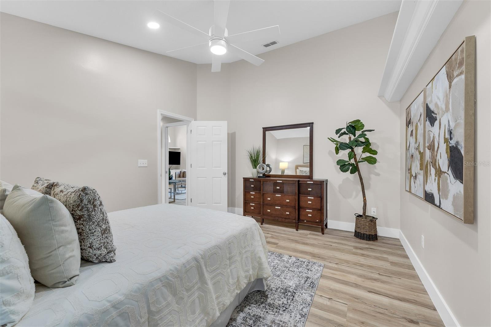 - Built-in Features, Ceiling Fans(s), Crown Molding, Eat-in Kitchen, High Ceilings, Kitchen/Family Room Combo, Primary Bedroom Main Floor, Stone Counters, Thermostat, Vaulted Ceiling(s)