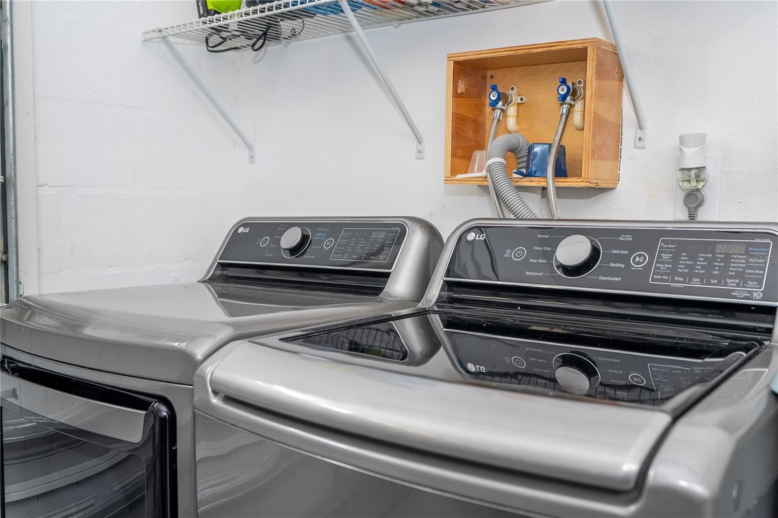- Bar Fridge, Dishwasher, Disposal, Dryer, Microwave, Range, Refrigerator, Washer