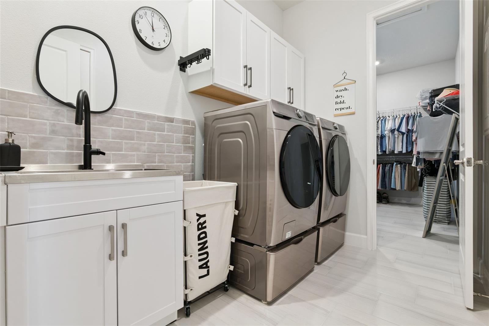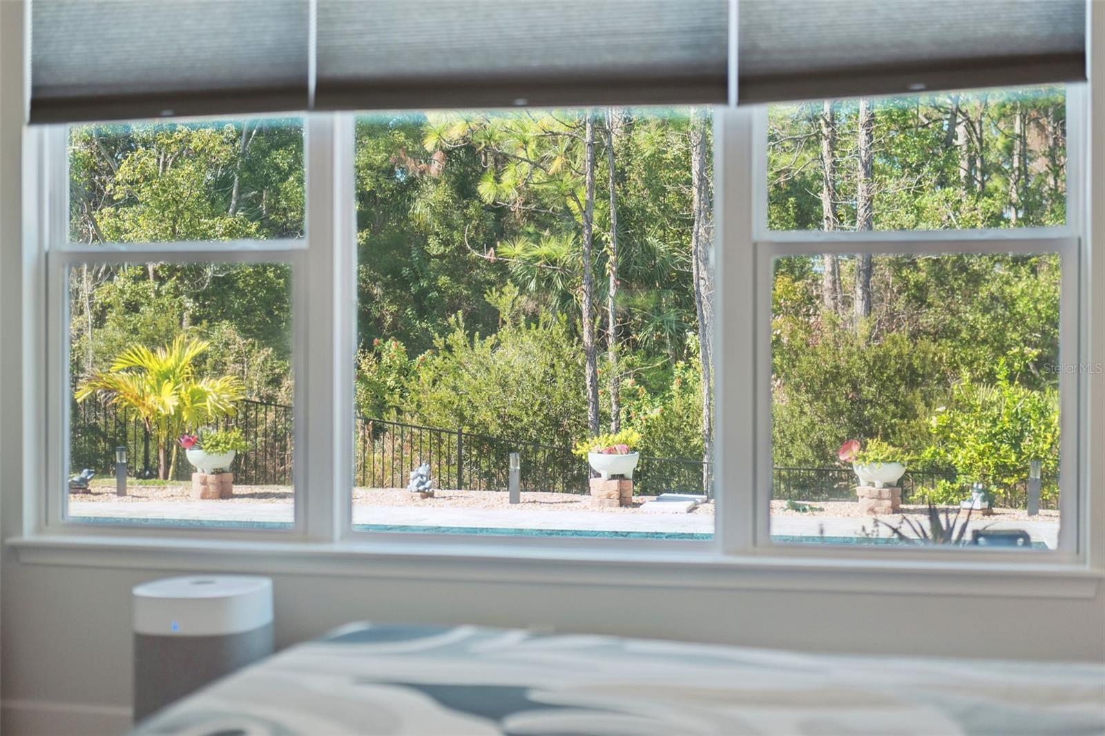 Welcome to this beautifully upgraded 3 bedroom, 2 bath pool home with a dedicated office, ideally located in the highly sought-after Woodhaven community. Thoughtfully designed for modern living and effortless entertaining, this move-in-ready home is filled with high-end finishes, smart upgrades, and exceptional indoor-outdoor living. Stepping inside, you’ll find an open-concept floor plan accented by high coffered ceilings, abundant natural light, and pristine tile flooring throughout the main living areas, with plush carpeting in the bedrooms. The upgraded gourmet kitchen serves as the heart of the home, featuring a touch/touchless faucet with pull-out sprayer, a vacuum switch for the garbage disposal, added pull-out cabinet drawers, and a premium Bertazzoni hood vent, seamlessly blending everyday functionality with sleek, modern design. Just off the kitchen, the tucked-away primary suite offers the ultimate spa-like retreat with an en-suite bathroom showcasing dual sinks, a relaxing walk-in shower, and a spacious walk-in closet. Both bathrooms have been tastefully enhanced, with the primary bath offering LED vanity lighting, improved ventilation, a pop-up electric receptacle, and additional towel storage, while the guest bathroom features LED lighting, glass shower doors, wall shelving, extra towel holders, and a convenient magnetic door stop. Completing the interior is a well-appointed laundry room with a laundry tub, tiled surround, dedicated lighting, and thoughtful finishing touches that add to the home’s overall functionality and appeal. Outside, the immaculately maintained exterior boasts decorative concrete curbing, marble chips, river rock landscaping, and a full gutter and underground drainage system with curbside emitters, providing outstanding curb appeal and peace of mind. The backyard oasis is highlighted by a resort-style heated pool featuring in-ground cleaning pop-ups, ozone and UV sanitation, a prefilter skimmer basket, a large three-cartridge filter, and a heater/chiller for year-round enjoyment. A travertine pool deck, foundation for a future screen enclosure, outdoor shower with tankless water heater, and fully fenced yard with three gates and lush podocarpus hedges create a serene and private retreat. The covered lanai extends the living space outdoors with travertine flooring, two electric roll-down sunscreens, and a ceiling fan with remote-controlled speed and dimmable lighting, making it perfect for relaxing or entertaining in any season. Completing the home is a well-equipped garage with hanging wall cabinets, wall storage panels, and additional exterior lighting. Residents of Woodhaven enjoy a central location with access to a community pool, playground, and recreational amenities, all while being close to top-rated schools, shopping, dining, and everyday conveniences. With its extensive upgrades, resort-style outdoor living, and prime location, this exceptional home presents a rare opportunity. Schedule your showing today and experience the best of Woodhaven living.
