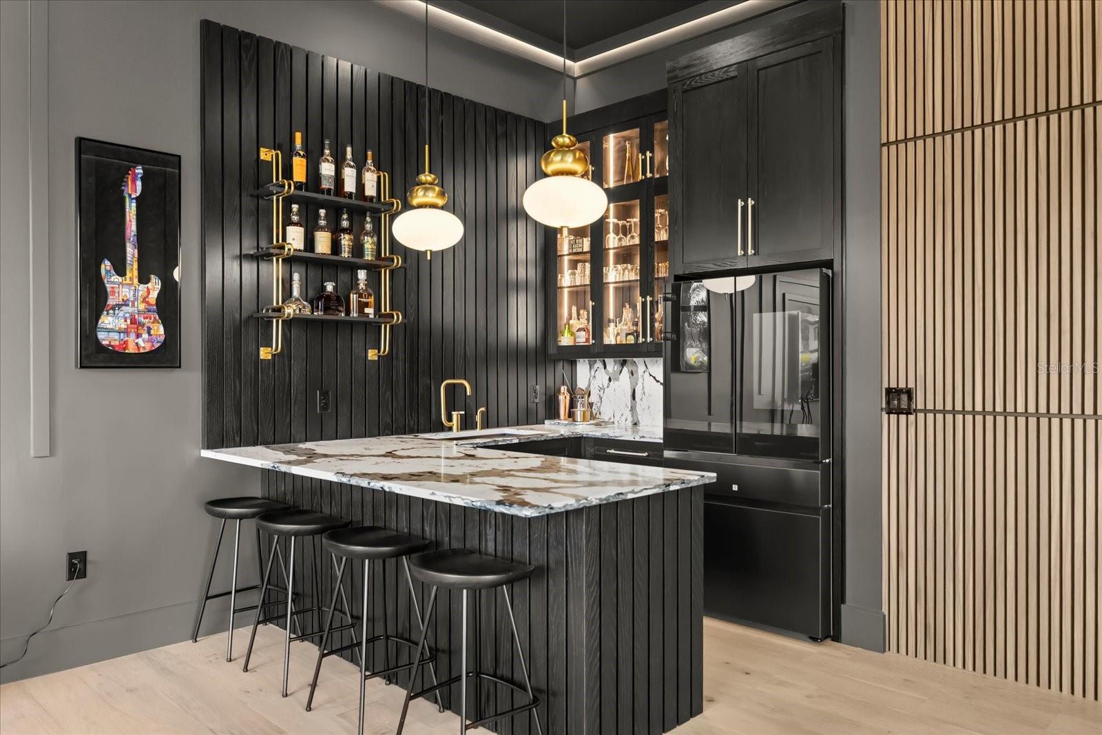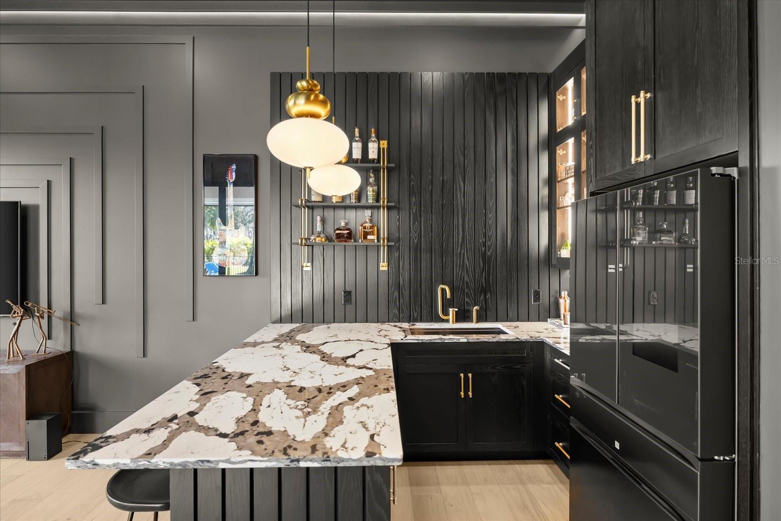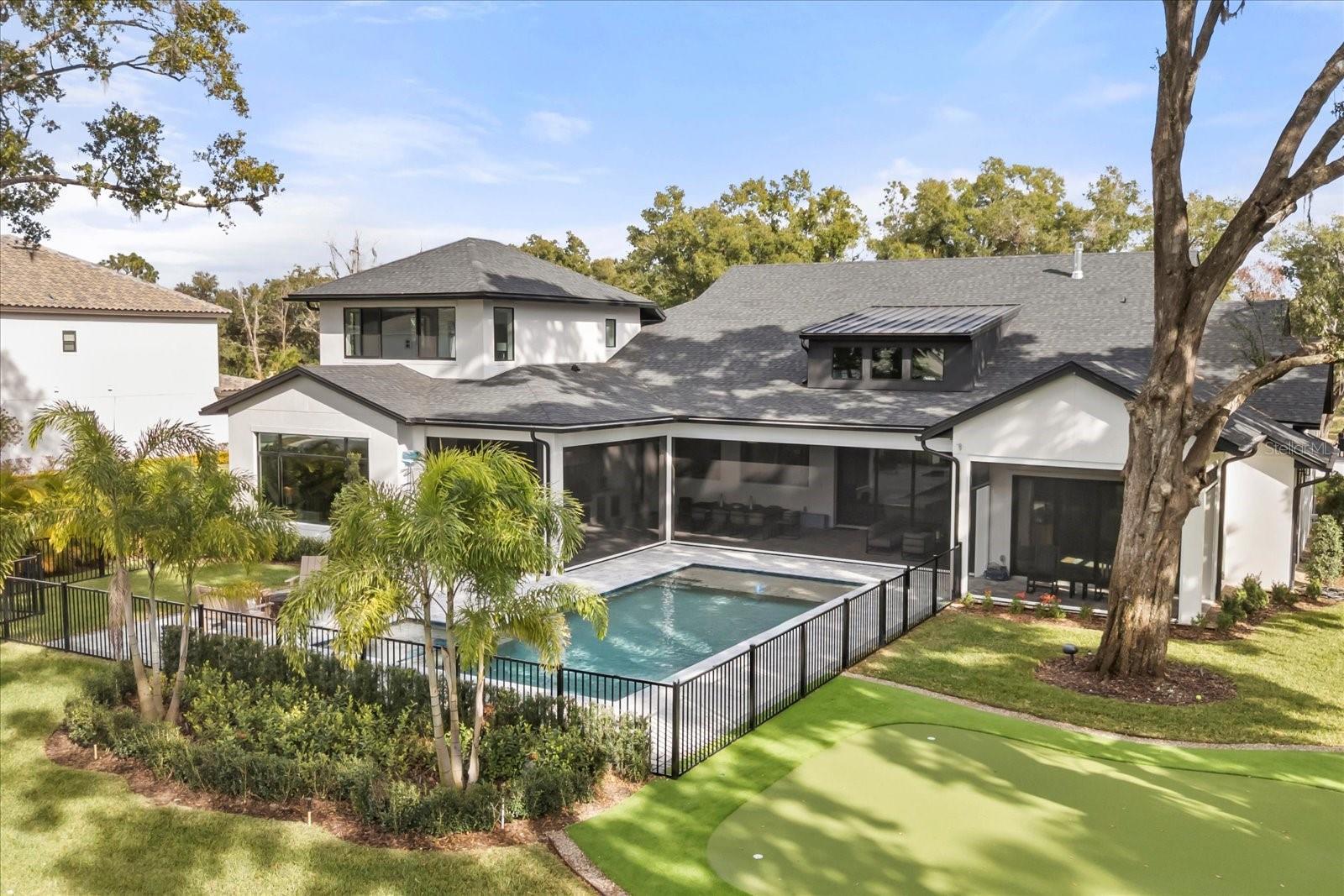 One or more photo(s) has been virtually staged. Welcome to 1206 Sutter Avenue, a truly exceptional estate and the crown jewel of Gotha, Florida—where refined luxury meets modern innovation. This 2025 build offers 5,772 square feet of thoughtfully designed living space, set on an expansive, nearly one-acre lot that provides privacy, presence, and sophistication. Recent enhancements elevate the property even further and include a putting green, two new AC units servicing the garage bays, a whole-home generator, electric sun shades, custom window treatments, a pool safety fence, a new AV system, and a newly added shed (2025)—ensuring comfort, functionality, and peace of mind. Step through grand 8-foot iron entry doors into a striking foyer adorned with elegant checkered marble flooring. The living room impresses with soaring vaulted ceilings, custom wood beams, and a Montigo DelRay 46” gas fireplace, creating a warm yet dramatic setting ideal for both intimate gatherings and grand entertaining. The gourmet kitchen is a true showpiece, designed for the most discerning chef. It features rift white oak cabinetry with inset soft-close doors and drawers, double-thick nosing marble-style quartz countertops, two full-size sinks with Brizio faucets, and a 48” Thermador Pro Grade gas range with a wall-mounted Brizio pot filler. Additional highlights include two Thermador stainless steel dishwashers, a Thermador 30” double oven, and an oversized 66” professional side-by-side refrigerator and freezer. A spacious, custom walk-in pantry completes this exceptional culinary space. The primary suite is a private retreat, offering a spa-inspired ensuite bath with Carrara marble mosaic flooring, a curbless shower with body jets, and beautifully crafted custom vanities. Upstairs, a private guest suite with its own ensuite bath provides comfort and privacy for visitors. A custom home office with built-in bookshelves offers a refined workspace, while the game room is designed for entertainment, featuring built-in speakers, a bar with a Samsung smart refrigerator, and expansive patio sliders that open seamlessly to the outdoor living area. Outside, enjoy a true entertainer’s paradise with a resort-style pool and spa, fully equipped outdoor kitchen, and lush surroundings. The oversized four-car garage, fully fenced yard, and mature oak trees enhance the home’s private, estate-like setting. Equipped with state-of-the-art amenities and meticulously curated finishes throughout, 1206 Sutter Avenue offers a lifestyle of unparalleled elegance, comfort, and distinction. Schedule your private tour today and experience Gotha luxury at its finest.