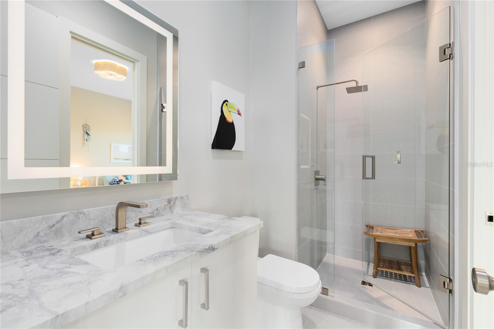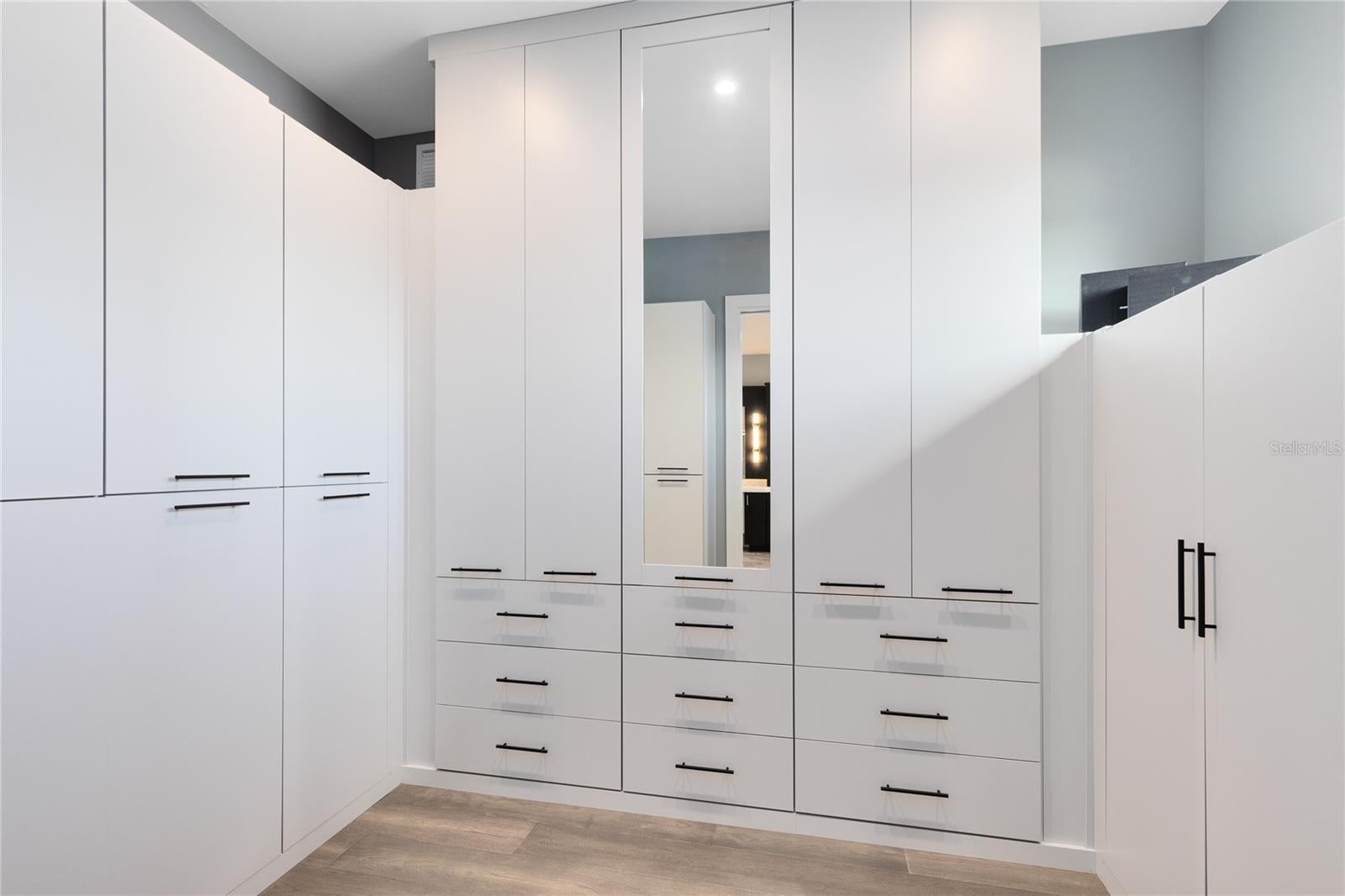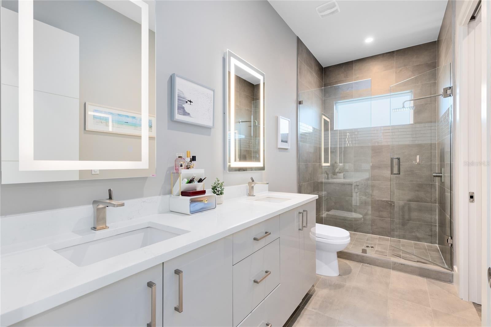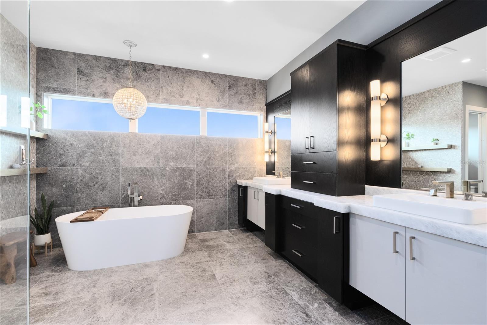 Stunning Custom Modern Estate with Lake Views in Laureate Park. Located on a premier corner cul de sac homesite in the heart of Laureate Park, this custom built modern estate offers nearly 4,500 square feet of refined living with sweeping lake views and unforgettable sunset skies. Clean architectural lines, soaring ceilings, custom tile work, and wide plank flooring create a dramatic first impression, while UV coated windows fill the home with natural light. The open main living areas are anchored by a chef’s kitchen featuring solid wood cabinetry, stone countertops, a hidden Sub Zero refrigerator, built in appliances, an oversized island, and a walk in pantry, ideal for both everyday living and entertaining. Designer chandeliers and lighting are featured throughout the home, along with custom imported European curtain rods that elevate every space. The first floor includes a private office that easily converts to a fifth bedroom, a guest en suite bedroom with full bath, and a dedicated pool bath offering exceptional flexibility. Oversized sliding doors open to an expansive covered lanai with wood paneled ceilings, recessed lighting, and ceiling fans. The private backyard is a true resort style retreat with a heated saltwater pool and spa, expansive paver decking, lush landscaping, tranquil lake views, and unparalleled sunset views. A fully equipped outdoor kitchen with built in grill, vent hood, stone counters, and bar seating completes the space and is enhanced by a whole yard app controlled Thermacell system. Upstairs, a spacious loft opens to a covered balcony overlooking the lake. The primary suite is a private sanctuary with its own balcony and a spa inspired bath featuring a freestanding soaking tub, glass enclosed walk in shower, dual floating vanities, and a custom walk in closet. A dedicated tankless water heater serves the primary suite and kitchen. Additional highlights include generously sized bedrooms with en suite options, Ecobee app controlled thermostats, a whole house water filtration system with drinkable water at every faucet, custom Lutron motorized shades with select blackout features, a professionally wired ceiling sound system, and an oversized three car garage with epoxy flooring. Enjoy the Laureate Park lifestyle with access to resort style pools, the Aquatic Center, LP Fit gym, parks, dog parks, and over 44 miles of trails. Centrally located in Lake Nona near Medical City, Nemours, the VA Hospital, dining, shopping, Orlando International Airport, USTA, and major highways.