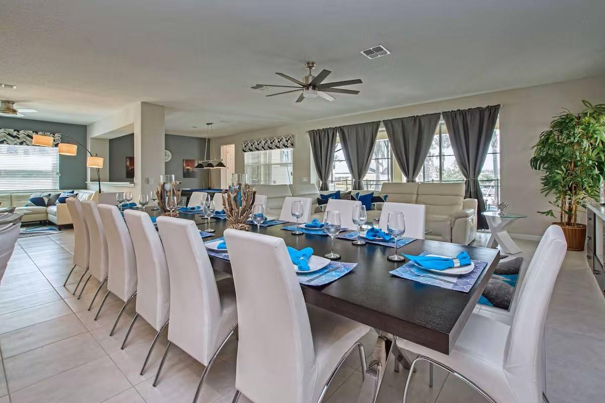 GREAT POOL & SPA VACATION HOME!!! This beautiful Vacation home has 9 Bedrooms, 6.5 Baths, located in the sought after RESORT STYLE community of SOLARA!! Home comes FULLY FURNISHED and decorated! Walking distance to the fabulous Clubhouse with a resort style pool, hot tub, poolside cabanas, water slides, splash pad, restaurant, sports such as Flow-rider Surf Simulator, Beach Volley, Soccer, Basketball. Just minutes away from all major attractions, Walt Disney World, and all its attractions, restaurants, shopping centers, outlets and the main highways!!!