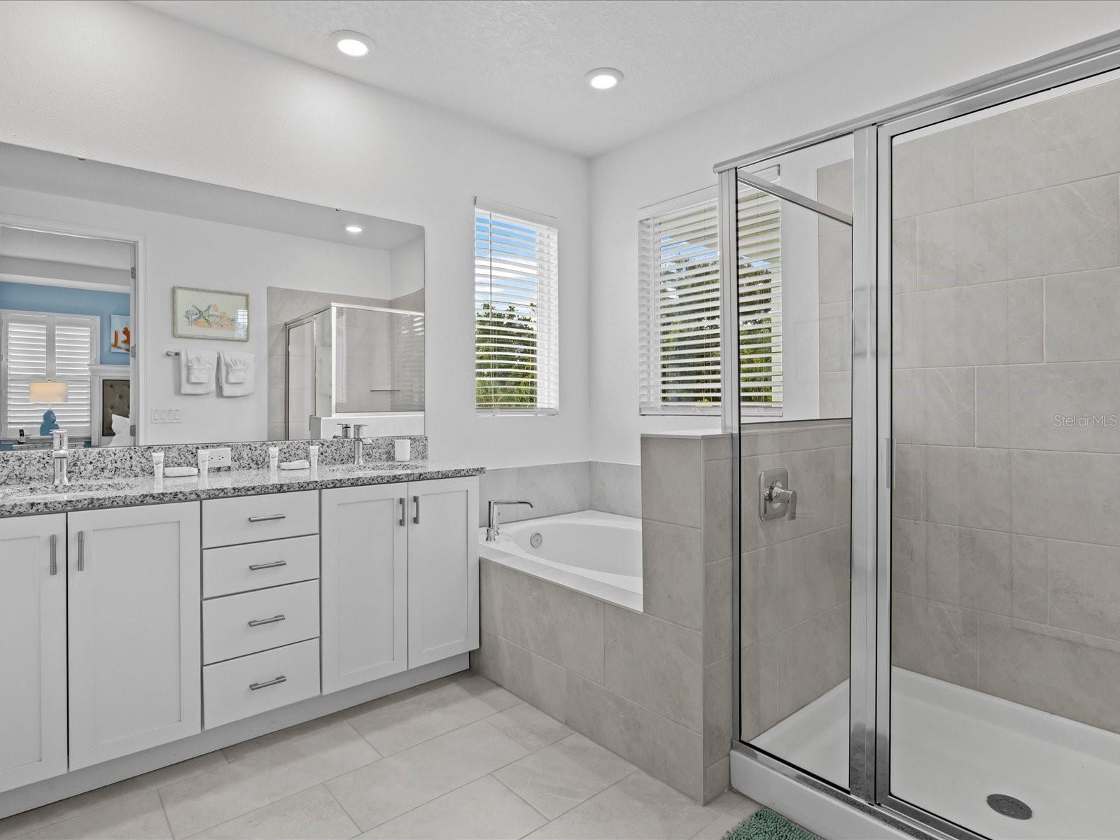- Ceiling Fans(s), Eat-in Kitchen, High Ceilings, In Wall Pest System, Kitchen/Family Room Combo, Living Room/Dining Room Combo, Open Floorplan, Primary Bedroom Main Floor, PrimaryBedroom Upstairs, Solid Wood Cabinets, Stone Counters, Thermostat, Walk-In Closet(s), Window Treatments