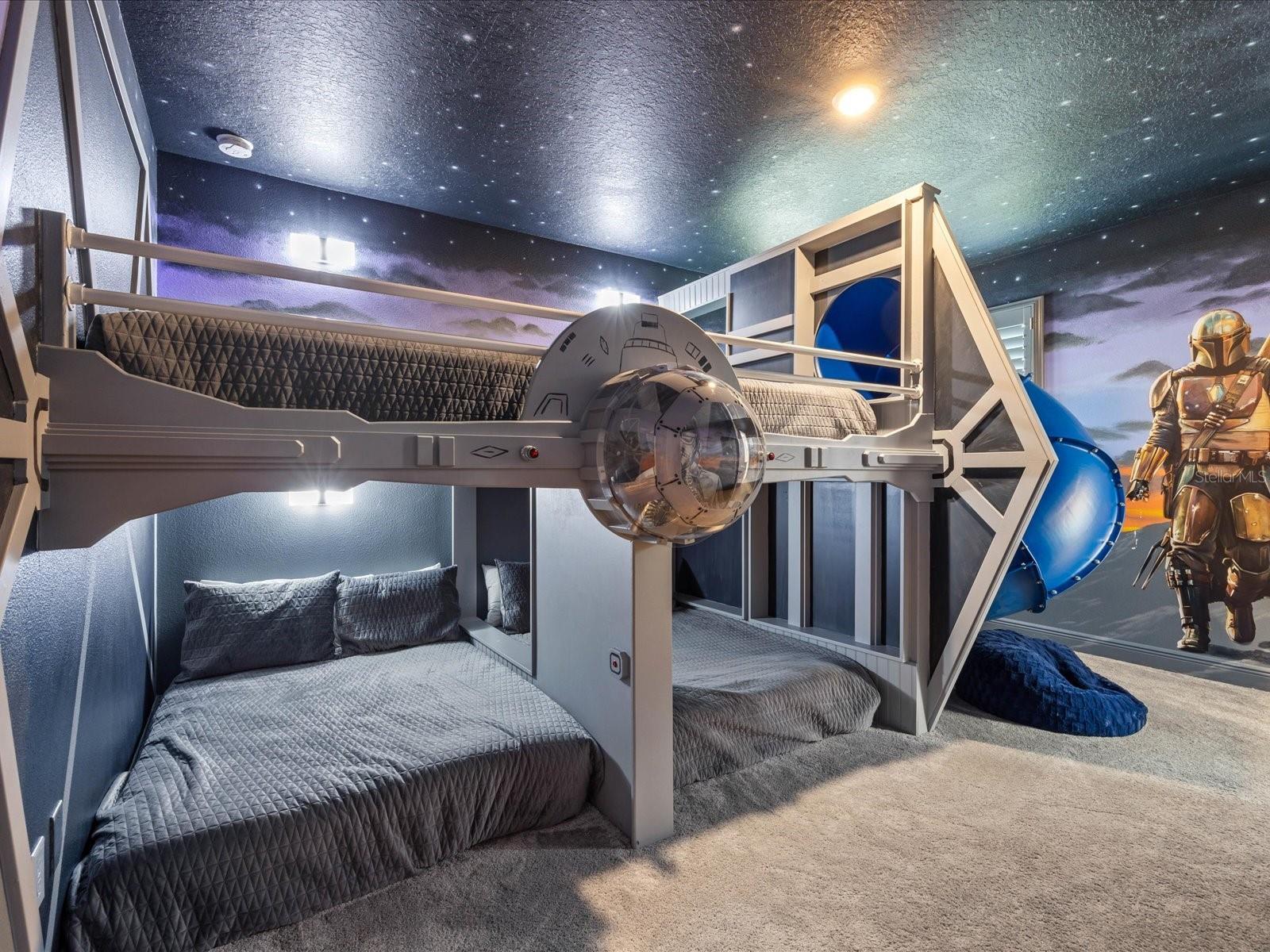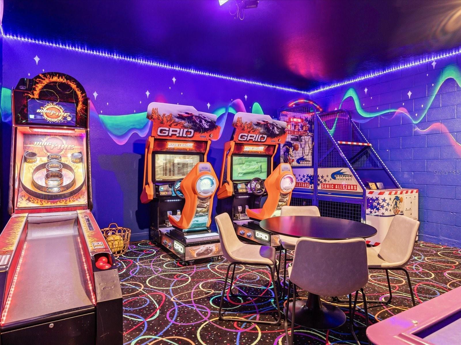 Welcome to 832 Desert Mountain - a line new, contemporary 6 bed, 5.5 bath home complete with REUNION MEMBERSHIP on a PRIVATE CONSERVATION VIEW LOT! The Reunion membership gives full access to the 3 championship golf courses, an amazing waterpark, tennis courts, gym, restaurants, mini golf and more located just 6 miles from Disney! The open floor plan gives beautiful views out to the extended pool deck which has an oversized heated pool with sun shelf and spa, along with a private summer kitchen with shaded lanai for comfortable dining. The additional landscaping has custom up-lighting so you can enjoy relaxed outdoor living around the fire-pit in the evenings. The light, bright kitchen has upgraded counters and tile, & cafe series appliances. The living dining area is spacious and provides multiple areas to sit, relax and eat. This property has been completely furnished by an interior designer with plantation shutters throughout & tasteful decor and design in every area. There are spectacular bespoke themed bunk rooms for the children, with a slide and gaming system, and if that's not enough, the fun just keeps rolling with the custom ARCADE ROOM. There are two primary bedrooms, one on the first floor and the second. They both have double vanities, & large showers. The primary upstairs also has a tub, and a private rear balcony overlooking the beautiful pool deck, providing a quiet area to sit and relax with your morning coffee or a glass of wine in the evening. The loft area has a bespoke gym with a Pelaton bike. This property has great rentals in place which can convey to the new owner - schedule your showing today!