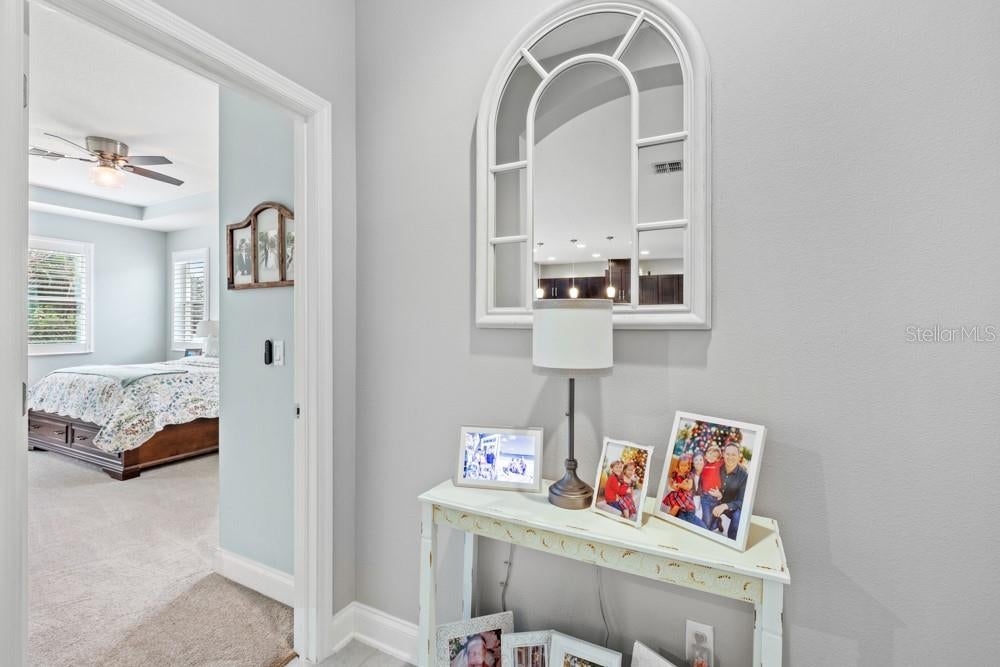 Under contract-accepting backup offers. Set on an oversized corner lot spanning over a quarter acre, this exceptional home offers views of John’s Lake within the gated, resort-style community of Hickory Hammock. Designed for both everyday comfort and effortless entertaining, the open-concept layout includes a private first-floor office with French doors, four bedrooms on the main level, including the secluded primary suite, and a spacious upstairs loft with an additional bedroom and full bath. The heart of the home is the gourmet kitchen, featuring quartz countertops, 42-inch cabinetry, glass backsplash, and an oversized island that anchors the space. Thoughtfully designed for modern living, this home offers a timeless, functional layout ideal for multigenerational households, remote work, or hosting guests. Enjoy the space and flexibility of the oversized lot, or take a short walk to the clubhouse and resort-style amenity center, complete with a community pool, tennis court, parks, and playgrounds. All just a short drive to Winter Garden Village for shopping and dining! Call today to set up a private showing.