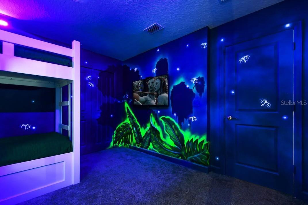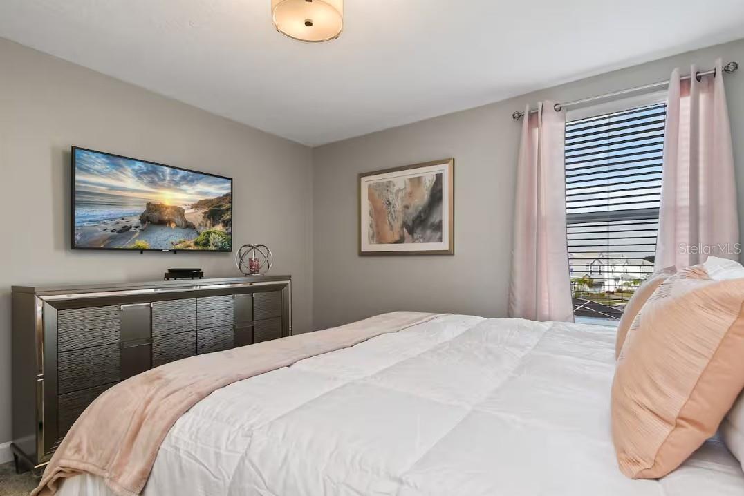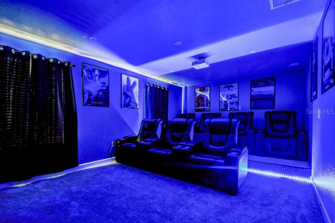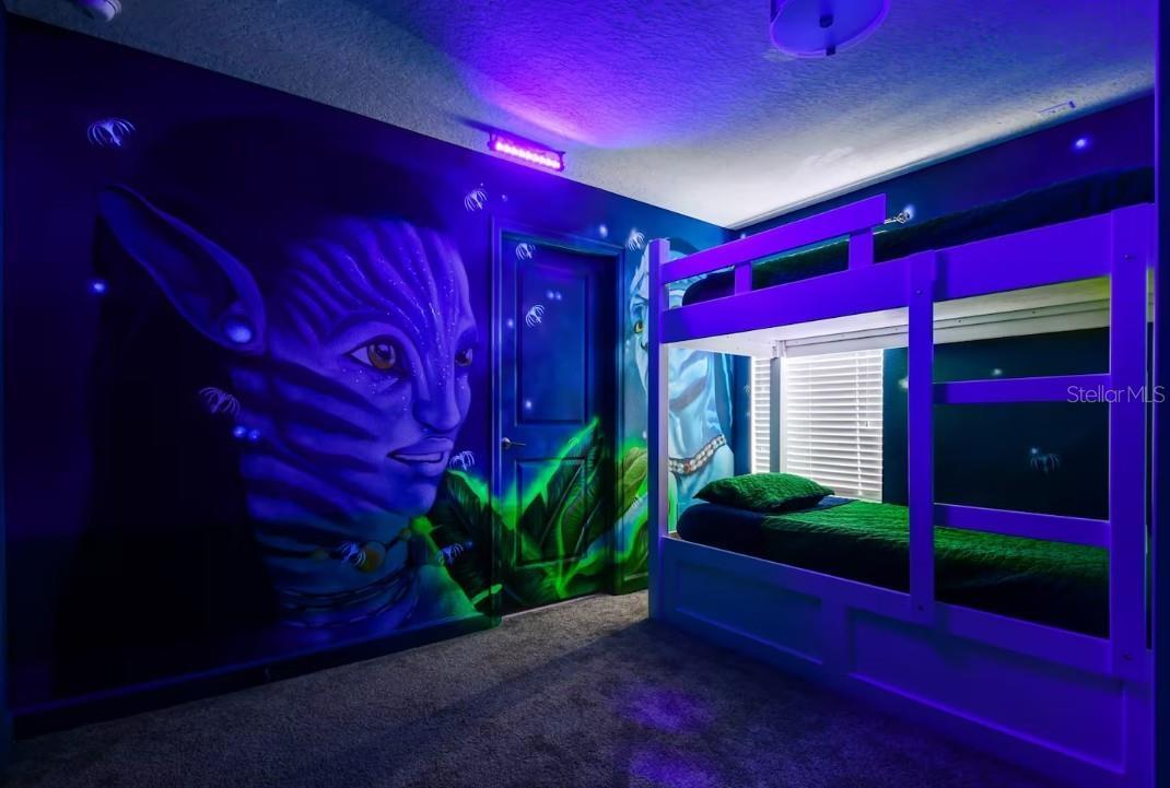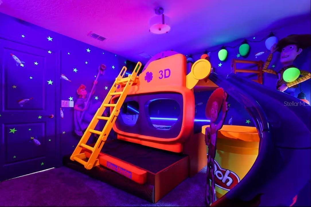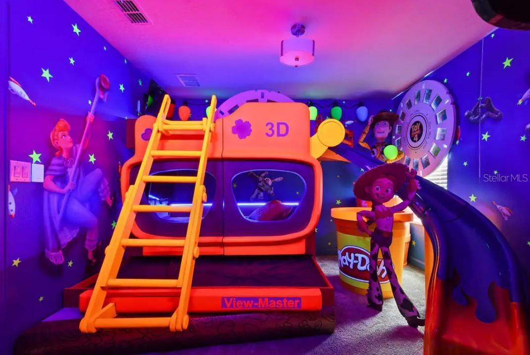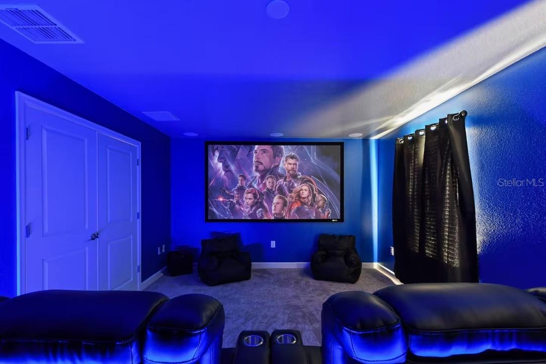 This exceptional Short-Term Rental offers an expansive layout with eight bedrooms and five bathrooms, making it in high demand. Designed for both comfort and functionality, the home features a large open-concept living and dining area that flows seamlessly to the covered patio. The spacious kitchen is well-appointed with generous cabinetry, ample counter space, and everything needed for everyday cooking or entertaining. A standout feature includes two primary suites located on the main floor, while the upper level offers a versatile loft and dedicated media room. Six bedrooms feature king-size beds and mounted TVs, while an additional themed bedroom includes bunk beds, a trundle, and multiple TVs. The inviting cinema room is equipped with power reclining chairs, and the second-floor loft is set up for entertainment with gaming consoles. Outdoor living is equally impressive with a private pool and spa (heat optional) and a beautifully furnished patio offering lounge seating, dining space, and a fire pit—ideal for relaxing or entertaining. Built by Lennar and featuring the “Everything’s Included” package, this highly energy-efficient home includes 42” wood cabinetry, quartz countertops, slate appliances, window blinds, and a state-of-the-art security system. Located in the Champions Gate Resort – Orlando Oasis Club, residents and guests enjoy access to world-class amenities including a lazy river, water slides, swim-up bar, fitness center, theater, game room, tiki bar, cabanas, basketball courts, and seven tennis courts, all included in the HOA. This property presents a rare opportunity to own a proven income-producing home in one of Central Florida’s premier resort communities.