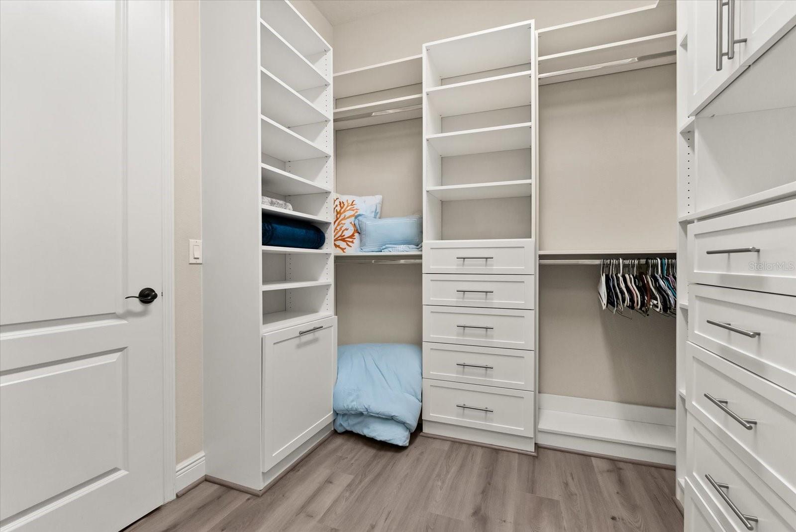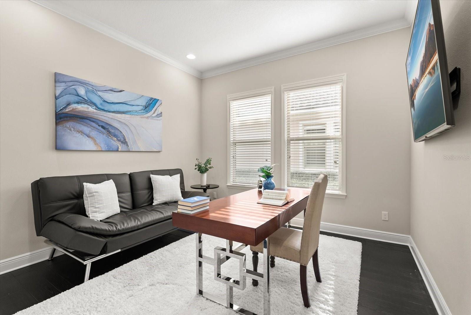 - Crown Molding, Dry Bar, Eat-in Kitchen, High Ceilings, Open Floorplan, Solid Surface Counters, Solid Wood Cabinets, Thermostat, Walk-In Closet(s), Window Treatments