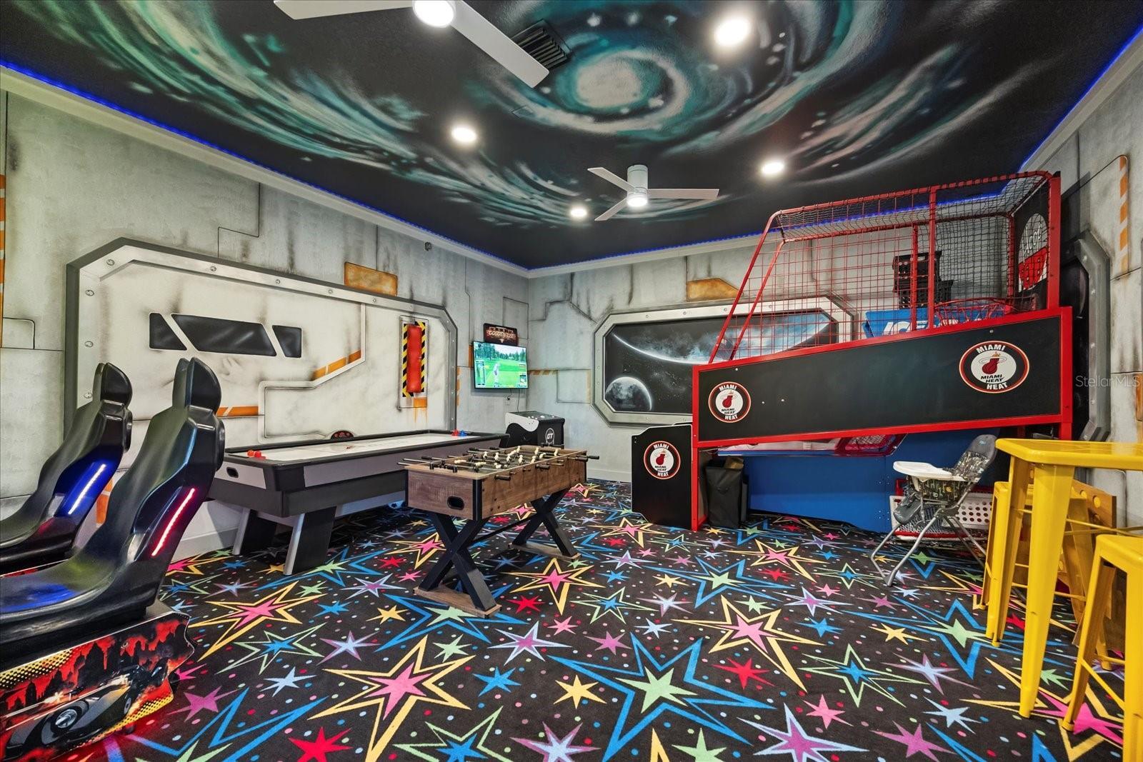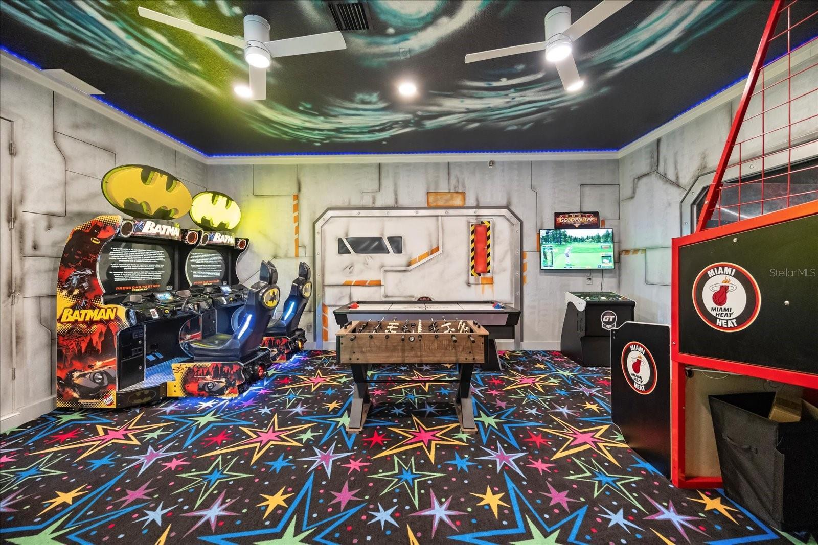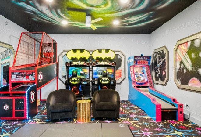 RENTAL STUNNER*** 2025 saw over $275K in bookings. Luxury, Legacy and Lifestyle greet you at the private “Bears Den” gate at Reunion Resort. Once inside you will be met by this stunning 9 bedroom 8 ½ bath Reunion Resort Membership property that is equally inviting and LARGE enough to accommodate families with forever stays or maybe just a long weekend. The home is one of just a few in the exclusive community that is an exclusive corner lot. The home is being offered fully furnished including all GAMING SYSTEMS AND ARCADES. All the upgrades have been completed including theming, design extras, and enhanced gathering spaces. The LARGE open main level of the home entices everyone to discover more of what the property has to offer. Starting in the kitchen area you find dual refrigerators, and dual dishwashers behind a nicely appointed island accompanied by a large pantry. The living room seating can accommodate up to 12 and overlooks the massive back yard, pool, lounge, and exterior kitchen space through a wall of windows that let in the natural Florida Sunshine! Once outside notice the OVERSIZED patio space that not every home can offer. This is a game changer for the perfect pool day. The newly added putting green only enhances the outdoor time experience. This truly makes this home feel like its own resort. The first floor of the home also features a re-imagined garage space that will keep residents and guests alike busy for hours. No quarters needed! Upstairs you will find a custom loft area that is the focal point for families to gather and enjoy a comfortable and relaxing entertaining space. The theater/loft space is enough for 8 and marqueed by an 86-inch television. You will also discover the two additional themed rooms that are classics and translate to multiple generations. A home filled with extras, charm and endless memory making possibilities. HUGE RENTAL AND MEMORY MAKING POTENTIAL. Reunion Resort has everything you want in a community including 3 signature golf courses, world class dining, waterparks, lazy river, water slides, firework viewing areas, tree lined streets, dog park, playground, driving range, golf simulator, member events, in-resort shuttle service, and event space. Live the resort lifestyle like a VIP. NO OTHER RESORT IN THE AREA HAS THIS!!!! Minutes to Disney and close to Beaches, Universal, Legoland and Sea World. Schedule a tour today. 80 million visitors are estimated to visit Orlando in 2026. Current reservations for 2026 are available to convey to new owner when choosing to maintain relationship with current property manager.