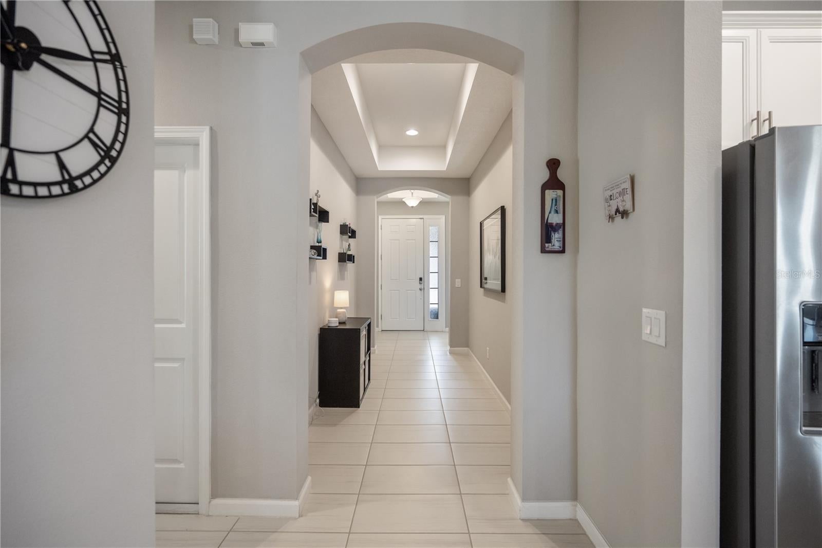 Welcome home to a refined single story residence in the heart of Winter Garden's Horizon West, set on a rare and spacious corner lot with fresh landscaping and NO REAR NEIGHBORS. The inviting front porch leads into a clean, open layout designed for both comfort and function. Four well appointed bedrooms are thoughtfully placed throughout the home, offering privacy and flexibility for family, guests, or a home office. At the center of the home, the chef’s kitchen features a large statement island, ample cabinetry, stainless steel appliances, water purifier, quartz countertops and a seamless flow into the main living space. The living room is defined by an electric fireplace with a custom elegant façade, creating a distinct yet connected gathering area. The primary suite is privately positioned and filled with natural light from a beautiful bay window. The primary suite includes his and her closets with custom built in organizers, dual sinks, and a spacious walk in shower. Sliding glass doors pocket away to create true indoor outdoor living. The backyard offers complete privacy with no rear neighbors and a resort style setting finished with travertine tile throughout the pool area. A modern saltwater pool and oversized hot tub provide the perfect space to relax or entertain, with Disney fireworks visible from the backyard at night. Additional features include PAID OFF SOLAR PANELS and a FULLY PAINTED EXTERIOR (2025). Ideally located approximately ten minutes from Disney and just minutes from Hamlin Town Center, with shopping, dining, Cinépolis movie theater, Publix, PopStroke, and Horizon West Orlando Health Hospital nearby. A newly built home that delivers thoughtful design, modern efficiency, and a lifestyle centered on comfort, privacy, and convenience in one of the area’s most desirable locations.