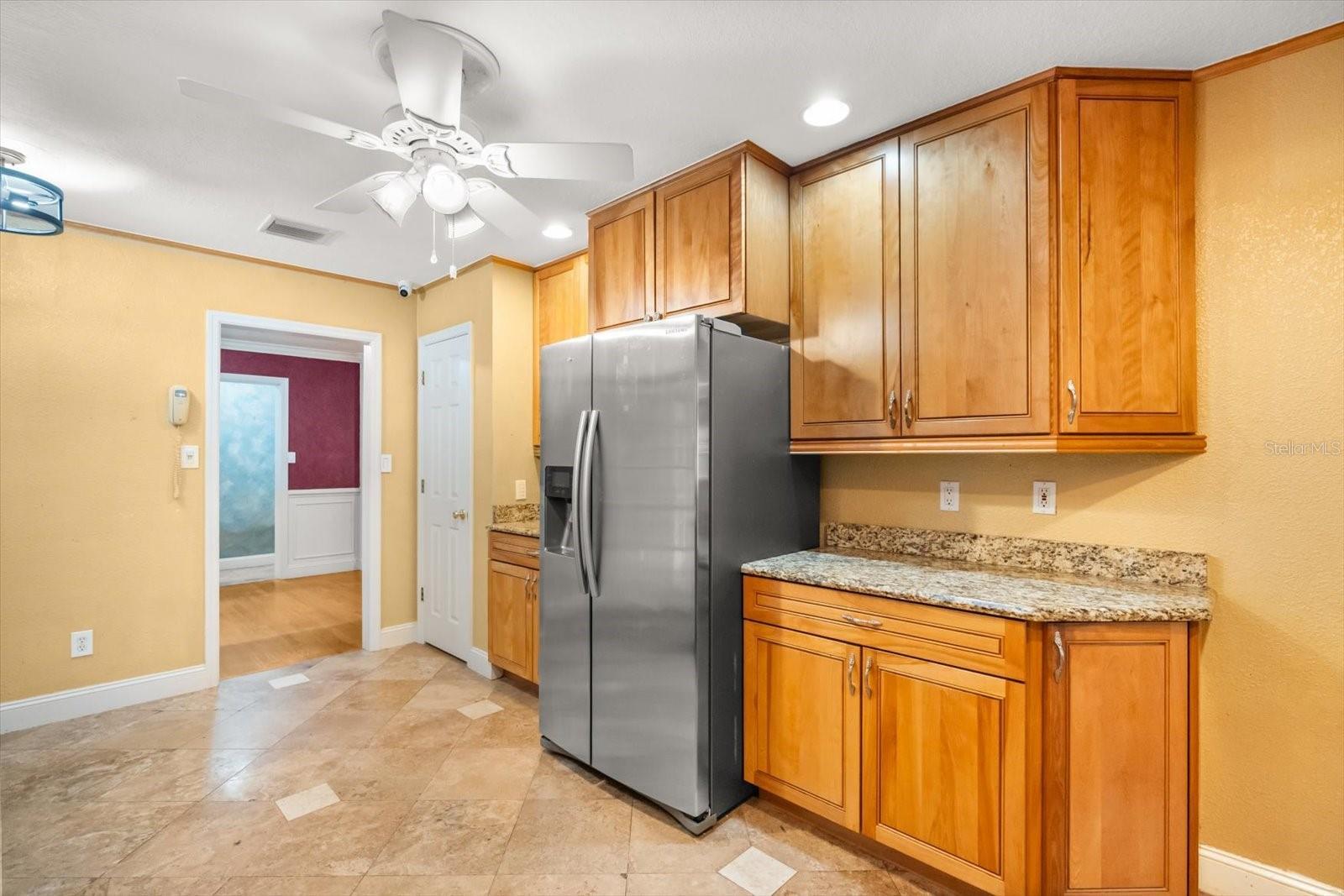 - Ceiling Fans(s), Crown Molding, Eat-in Kitchen, Primary Bedroom Main Floor, Solid Surface Counters