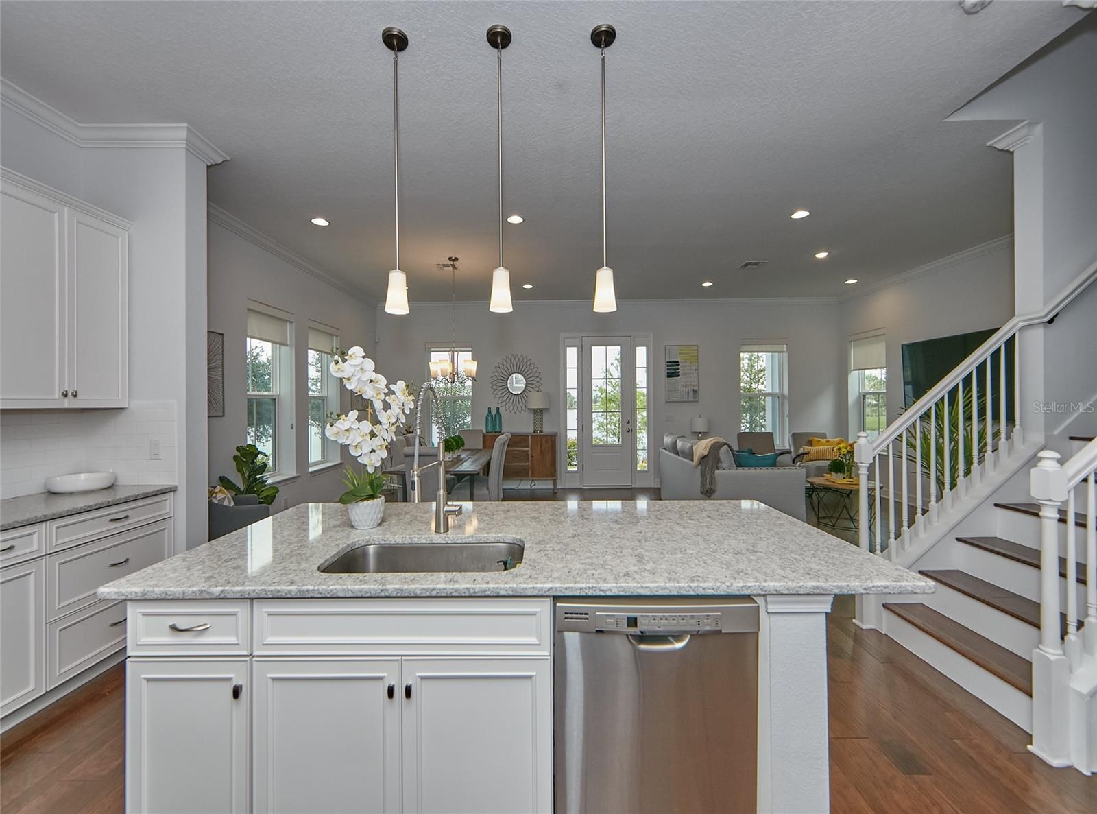 - Ceiling Fans(s), High Ceilings, Kitchen/Family Room Combo, Living Room/Dining Room Combo, Open Floorplan, Solid Surface Counters, Solid Wood Cabinets, Stone Counters, Thermostat, Window Treatments