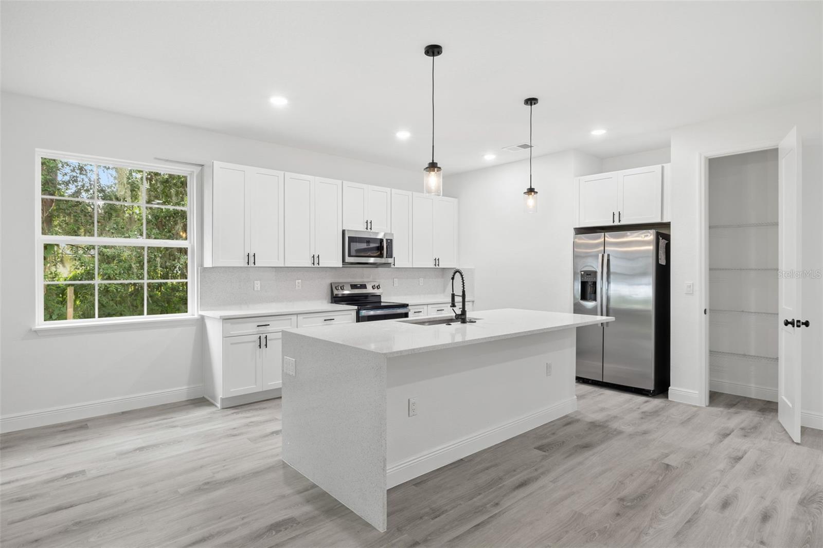 One or more photo(s) has been virtually staged. Brand New Home for Rent in Sanford with Lake Views Be the first to live in this never lived in new construction home, located on a quiet street next to Roseland Park and just minutes from Historic Downtown Sanford. This modern residence offers peaceful lake views, a bright open layout with soaring high ceilings, and stylish luxury vinyl flooring throughout. The kitchen features quartz countertops and backsplash, a waterfall island, stainless steel appliances, and 42 inch cabinets, ideal for everyday living. The split floor plan provides privacy, with a spacious primary suite offering a walk in closet, double vanity, glass shower, and soaking tub. Enjoy a central location close to top rated schools, restaurants, breweries, the Sanford Riverwalk, airport, and major highways, making daily life and commuting easy. A rare opportunity to rent a brand new home in a serene setting with lake views. Schedule your showing today. Home is also available for sale.