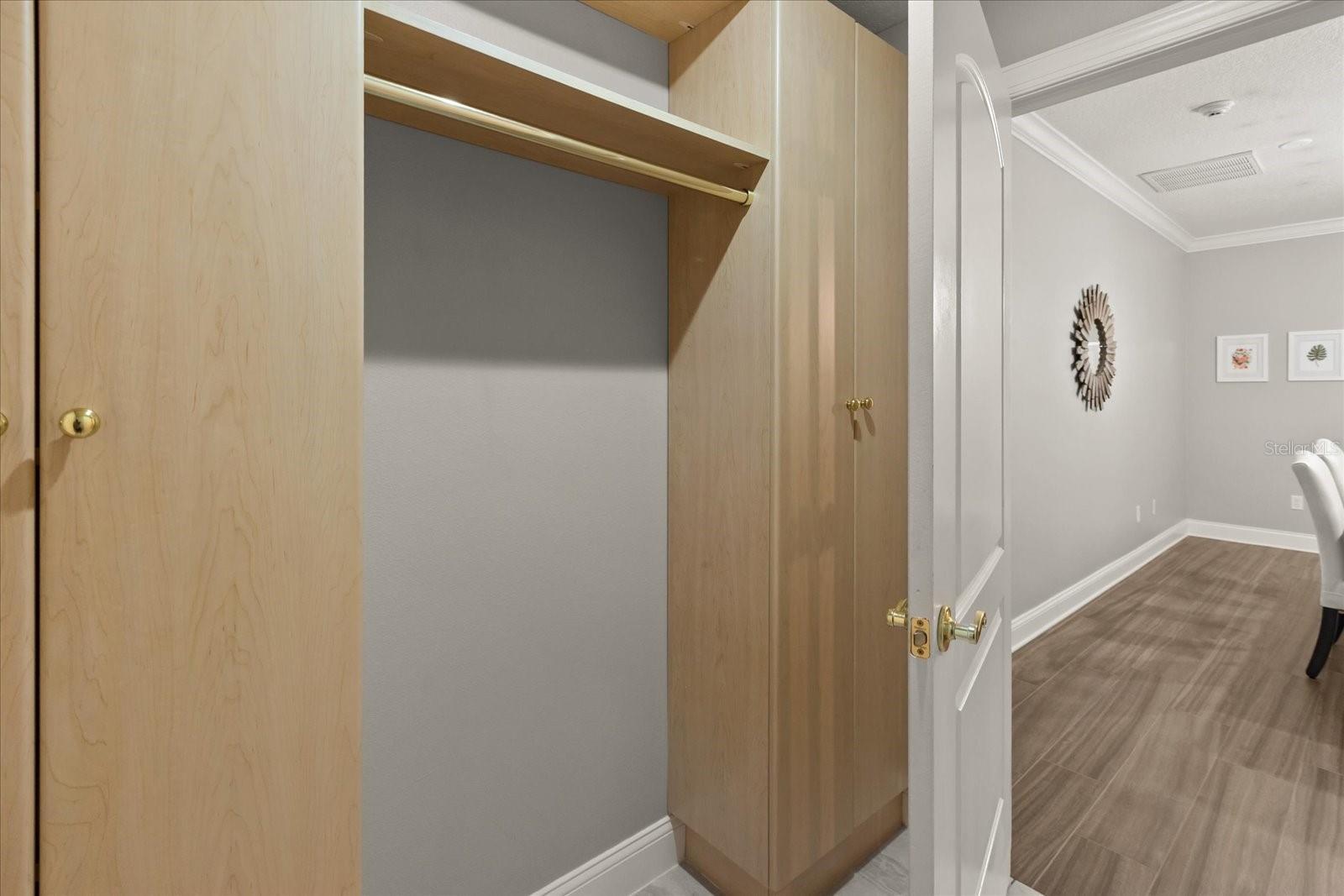 - Built-in Features, Ceiling Fans(s), Crown Molding, Eat-in Kitchen, High Ceilings, Primary Bedroom Main Floor, PrimaryBedroom Upstairs, Solid Wood Cabinets, Stone Counters, Walk-In Closet(s)
