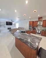 - Built-in Features, Cathedral Ceiling(s), Ceiling Fans(s), Central Vaccum, Crown Molding, Eat-in Kitchen, High Ceilings, Kitchen/Family Room Combo, Living Room/Dining Room Combo, Open Floorplan, Primary Bedroom Main Floor, Solid Wood Cabinets, Split Bedroom, Stone Counters