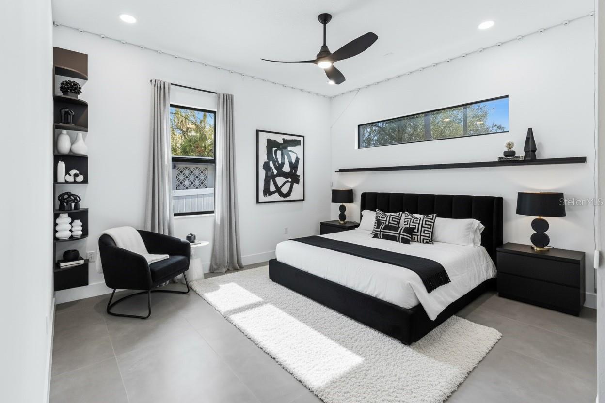 - Ceiling Fans(s), Eat-in Kitchen, High Ceilings, Living Room/Dining Room Combo, Open Floorplan, Smart Home, Split Bedroom, Stone Counters, Thermostat, Walk-In Closet(s), Window Treatments