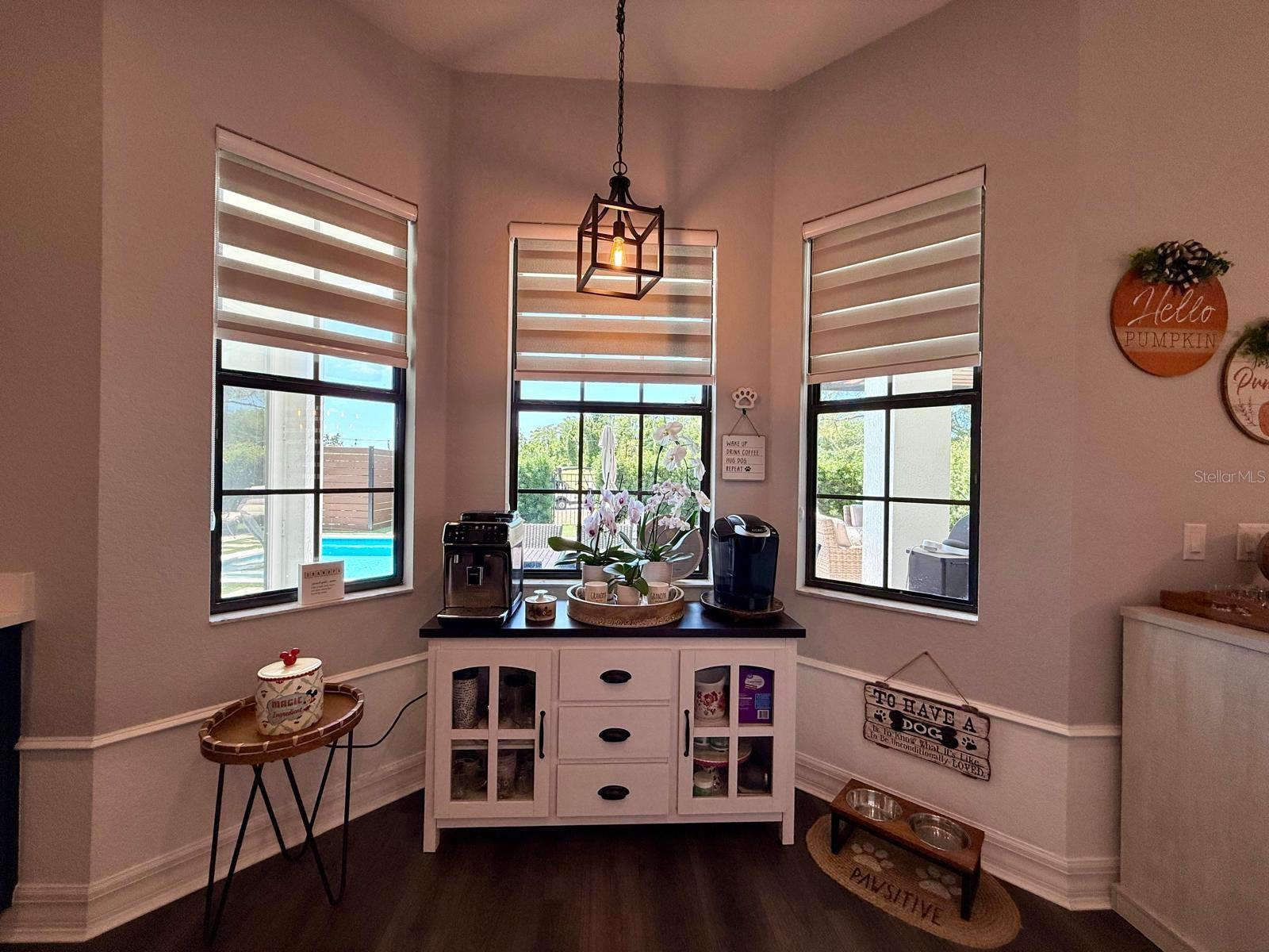 - High Ceilings, Kitchen/Family Room Combo, Living Room/Dining Room Combo, Primary Bedroom Main Floor, Walk-In Closet(s), Window Treatments