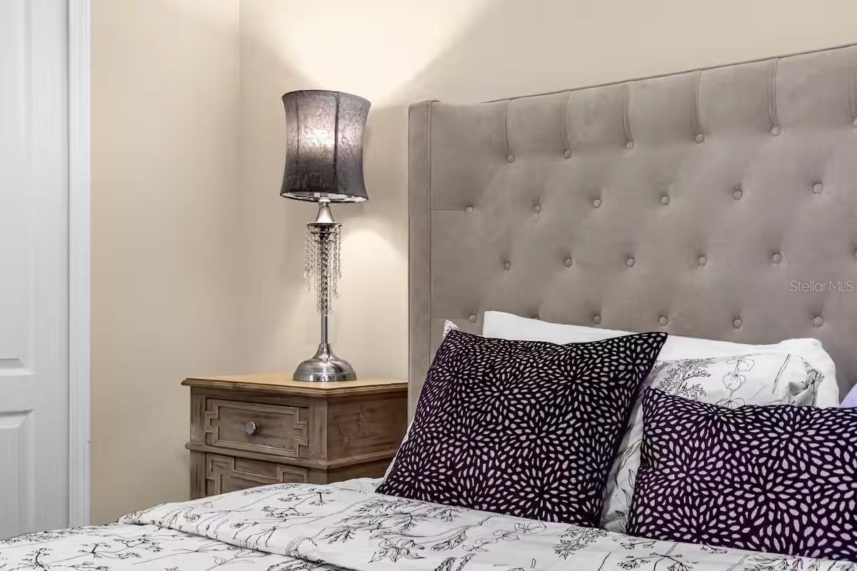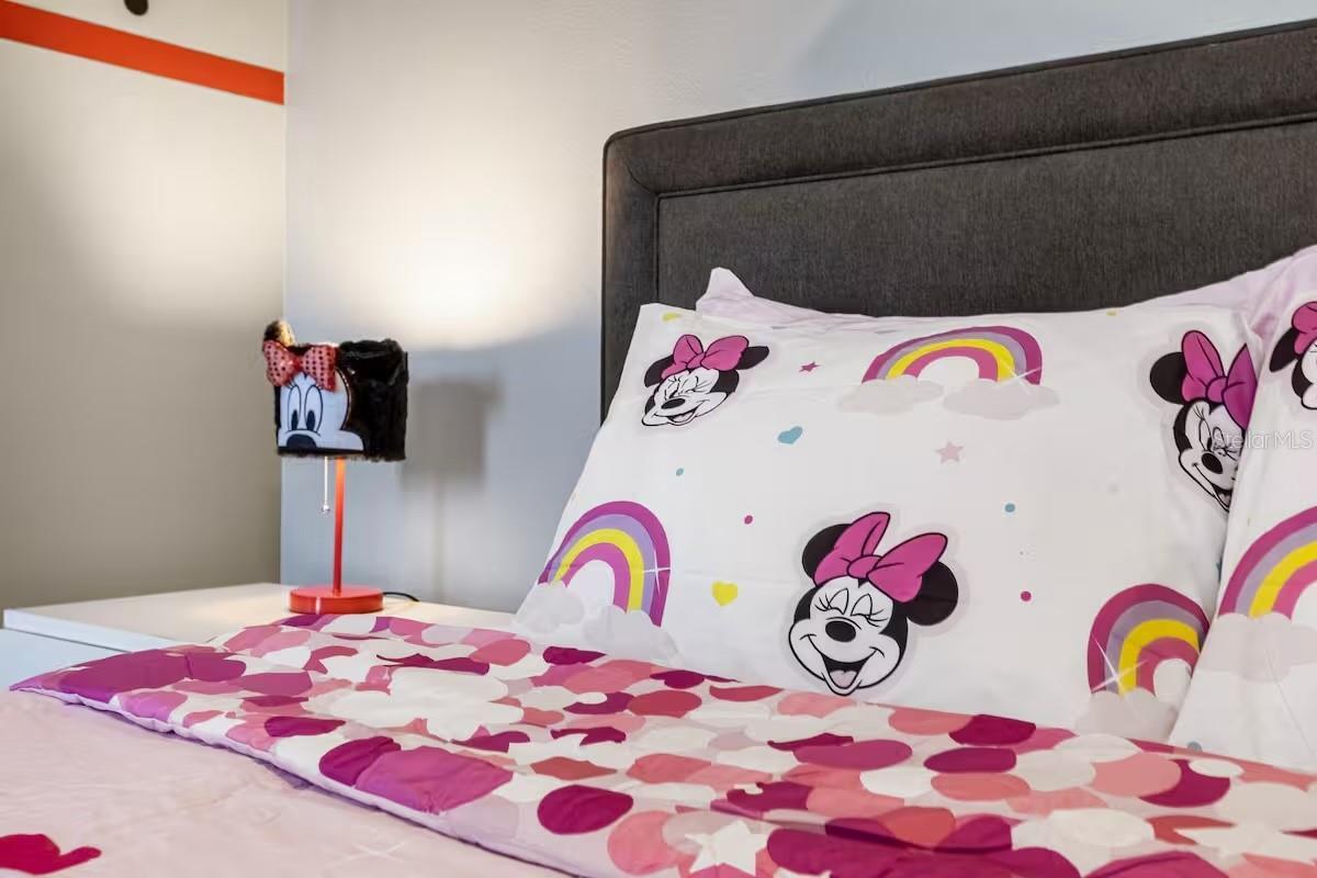 Welcome to your dream rental! This exceptional 5-bedroom, 5 bath home is fully furnished and thoughtfully designed for both comfort and entertaining. Featuring themed bedrooms that add a fun and unique touch, the home also offers two spacious primary suites—one conveniently located downstairs and another upstairs—providing flexibility and privacy for guests or multigenerational living. The open-concept kitchen and family room combo showcases sleek granite countertops, stainless steel appliances, and abundant cabinet space, all flowing effortlessly into a bright and spacious living area with high ceilings and an abundance of natural light. A dedicated game room makes this home ideal for entertaining or enjoying relaxing nights in. Step outside to your large private pool with an attached hot tub, set against the backdrop of no rear neighbors, offering added privacy and tranquility. The covered back patio creates the perfect space for outdoor dining or unwinding after a long day. Located within a resort-style, gated community, residents enjoy an impressive array of amenities including a luxurious community pool, kiddie pool, clubhouse, fitness center, game room, movie theater, sauna, tennis courts, volleyball courts, and more—delivering true resort-style living every day. Ideally situated just minutes from Disney, Universal, and all of Orlando’s world-famous attractions, this home is also a short distance to major roadways, making commuting a breeze. Enjoy easy access to nearby shopping centers, dining, and everyday conveniences. This move-in-ready home offers the perfect blend of luxury, space, location, and lifestyle.