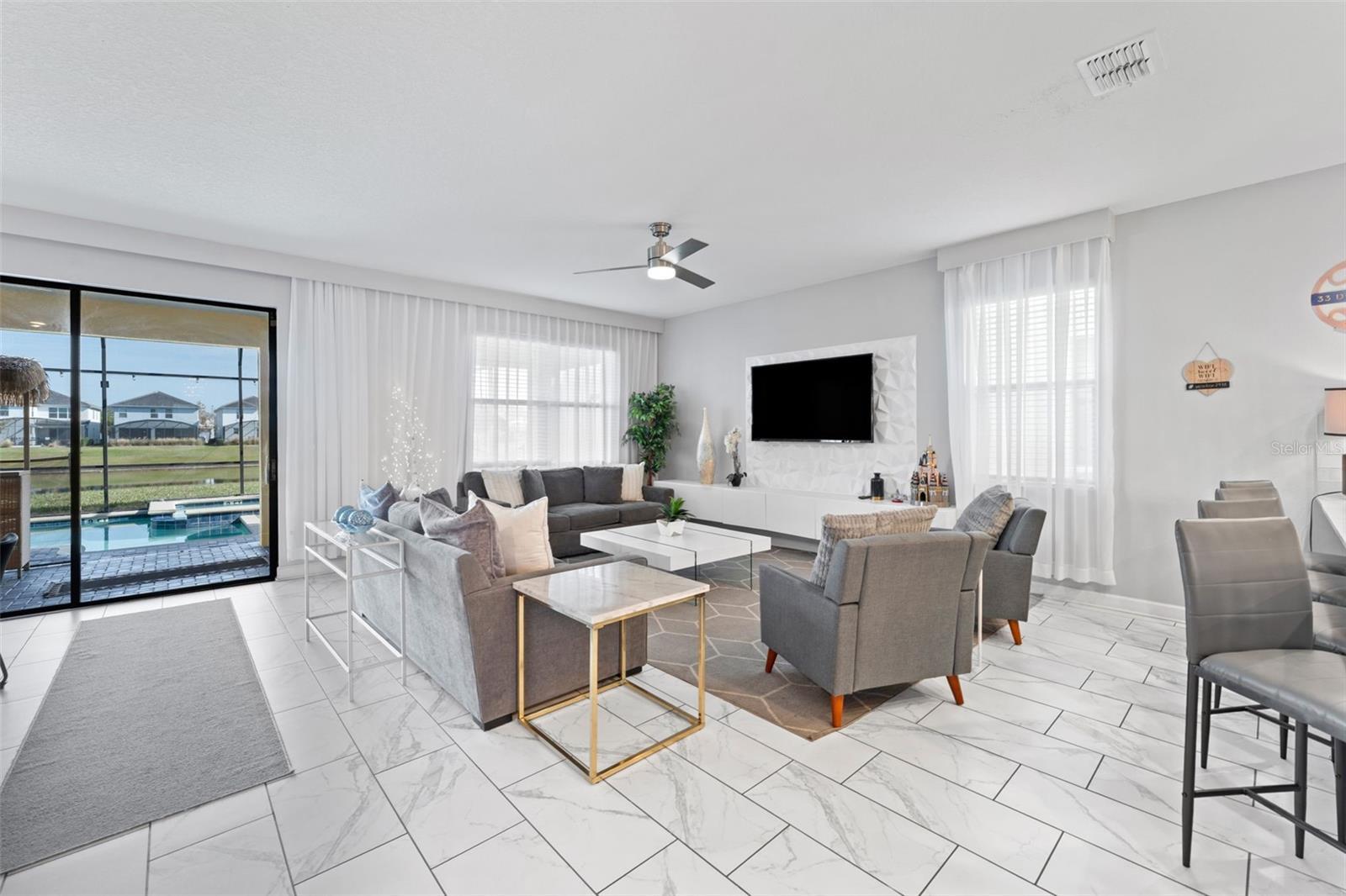 - Ceiling Fans(s), High Ceilings, Living Room/Dining Room Combo, Open Floorplan, Primary Bedroom Main Floor, Smart Home, Stone Counters, Thermostat, Window Treatments