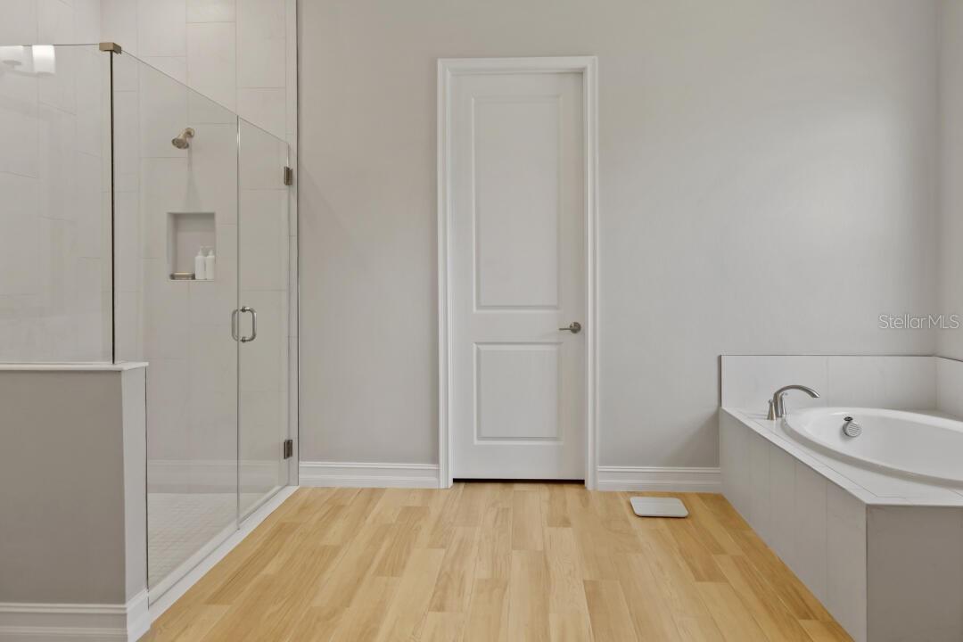 - Ceiling Fans(s), High Ceilings, Kitchen/Family Room Combo, Living Room/Dining Room Combo, Open Floorplan, Primary Bedroom Main Floor, Smart Home, Solid Surface Counters, Solid Wood Cabinets, Split Bedroom, Stone Counters, Thermostat, Tray Ceiling(s), Walk-In Closet(s), Window Treatments