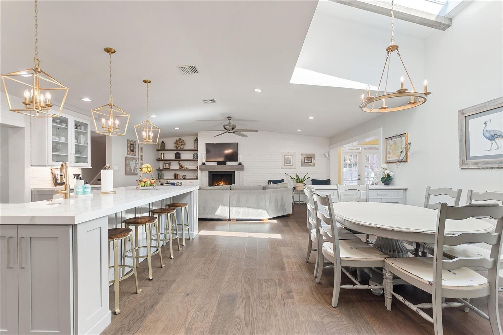 Located in one of Winter Park’s most desirable and picturesque neighborhoods, Timberlane Shores, this stunning five-bedroom residence has been recently renovated in an elegant, European style blending timeless character with modern luxury. Situated on over one-third of an acre, the property is accented by majestic oak trees and lush Florida-native landscaping, creating a private and serene setting where peacocks often roam freely through your yard. The heart of the home is the beautifully designed chef’s kitchen, featuring quartz countertops, a gas range with custom hood, double built-in convection ovens, stainless steel appliances, a wine refrigerator, and a well-appointed butler’s pantry—perfect for entertaining. The light-filled family room is open to the kitchen and showcases a wood-burning fireplace, custom built-ins, and an original brick accent wall that adds warmth and architectural charm. Engineered hardwood flooring and preserved original terrazzo floors run throughout the home, enhancing its quality designer choices but also an inviting feel. The flexible floor plan offers five spacious bedrooms, three full bathrooms, and two half baths, providing ample space for both everyday living and hosting guests. Expect to be impressed by the elegant owner's suite with a sizable walk-in closet and stunning ensuite bathroom featuring dual vanities, beautiful cabinetry with lots of storage and a generously sized soaking tub. Outdoor living is equally impressive, with a resort-style pool complete with a sun shelf, an outdoor kitchen with a built-in grill, and a large deck featuring built-in seating and a fire pit—ideal for gatherings or relaxing evenings under the stars. Zoned for Winter Park’s top-rated schools, this exceptional home is just a five-minute drive to Park Avenue’s renowned shopping and dining, and walking distance to Baldwin Park’s vibrant downtown, offering shops, restaurants, and a Publix. This is a rare opportunity to own a thoughtfully renovated home in one of Winter Park’s most beautiful and sought-after settings. Experience the rare combination of European-inspired luxury, resort-style outdoor living, and an unparalleled Winter Park location. Be sure to watch the video tour and virtual property walkthrough in the attachments. Better yet, schedule a private showing today and discover a home that truly defines elevated Florida living.