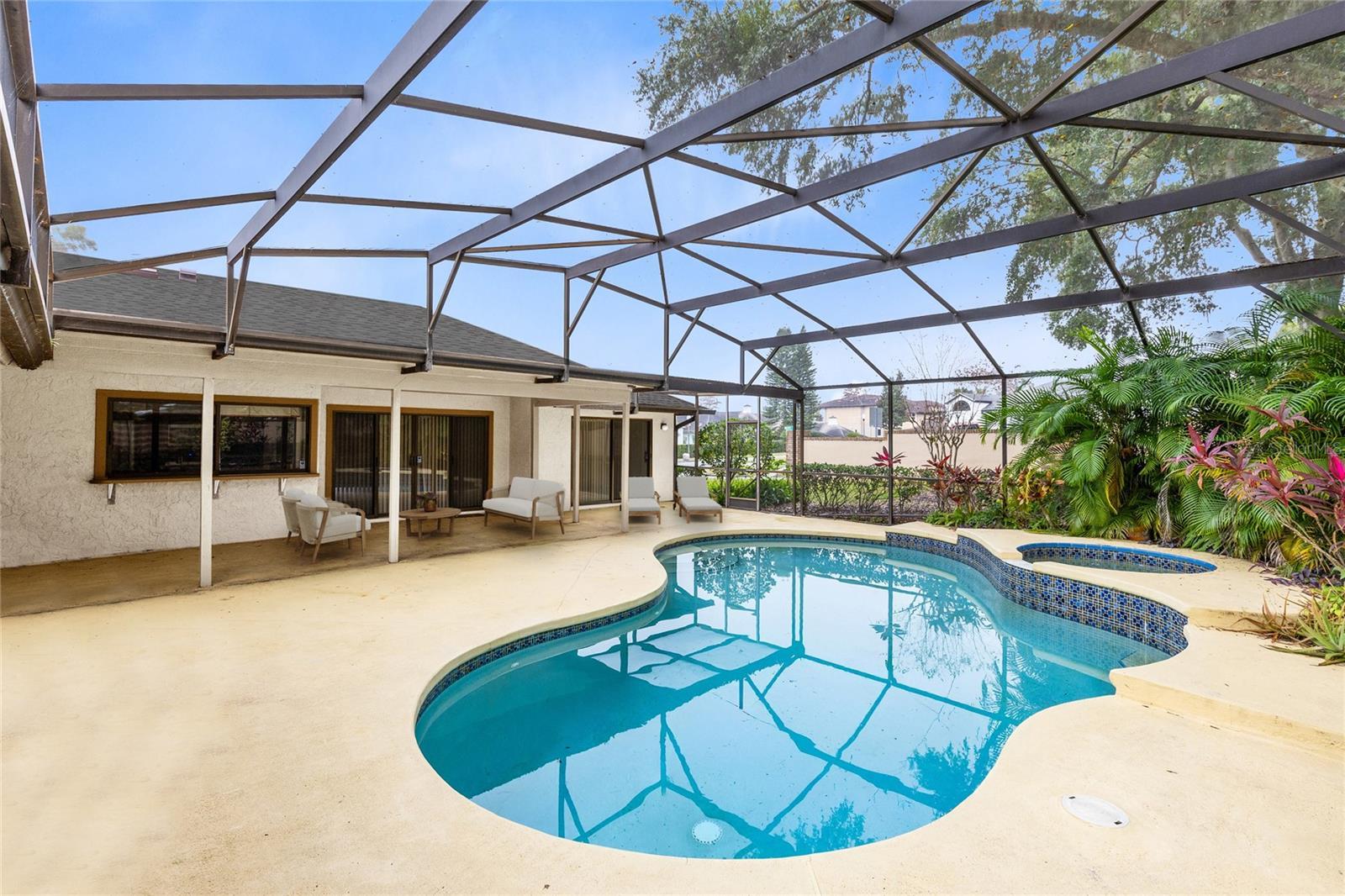 One or more photo(s) has been virtually staged. Welcome to North Bay — one of Orlando’s most sought-after communities — perfectly positioned in Dr. Phillips between Bay Hill Golf Course and the scenic Butler Chain of Lakes. This single-story pool & spa home sits on an oversized 0.35-acre corner lot and offers a rare opportunity to purchase a home that’s already partially updated and move-in ready, with additional upside for a buyer who wants to take it to the next level. Inside, you’ll love the soaring ceilings, bright open feel, and flexible floor plan designed for both everyday living and entertaining. Formal living and dining areas welcome you in with beautiful pool views, while the spacious family room features pocket sliding doors that open to the backyard for effortless indoor/outdoor living. The kitchen is a standout with solid wood cabinetry, original granite countertops in excellent condition, abundant prep and storage space, and newer stainless steel appliances. A charming eat-in area overlooks the pool through a glass half-wall, giving the home an open and airy flow. The primary suite is generously sized with walk-in closets and dual vanities. The home features new luxury vinyl plank flooring in key areas. The remaining bathrooms are original, providing a great opportunity to customize and add value over time. Step outside to your own private Florida oasis — a sparkling pool, spa, and large covered patio with plenty of space to relax or host year-round. Conveniently located minutes from Restaurant Row, The Grove, top-rated schools, shopping, championship golf, and world-class entertainment.