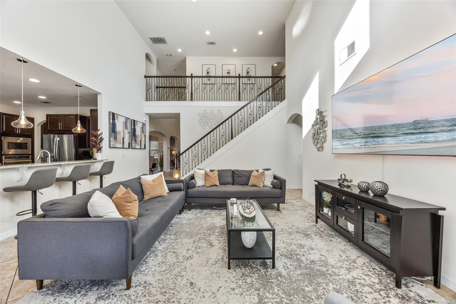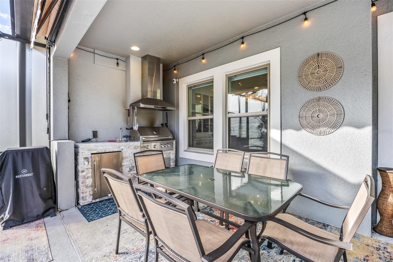 Under contract-accepting backup offers. Live the Orlando life in this expansive 5 bedroom 3.5 bath home just minutes from Lake Nona, and world class attractions. Offering 4,214 sq ft thoughtfully designed living space, this home features a chef's kitchen with gas range, granite countertops, stainless steel appliances, and a walk in pantry. The open living area with sliding glass doors flows seamlessly to a private pool and outside kitchen, ideal for entertaining. Additional highlights include a theatre room, formal dining room, separate sitting room, tile and wood flooring throughout the first floor. An additional family space on the second floor. The community offers a pool, and a playground. What more could a family want?