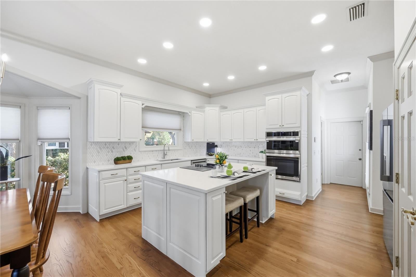 Completely re-imagined, this home offers a rare opportunity to experience turnkey luxury living on the 11th fairway of the renowned Bay Hill Championship Golf Course, with panoramic water views and stunning glimpses of the 11th, 12th, 13th, and 14th holes. Nestled in the highly desirable Bay Hill neighborhood, this home has been carefully updated and elevated to a luxury residence, where every detail has been thoughtfully considered, perfectly blending modern finishes with timeless elegance. The gourmet kitchen has been fully redesigned with quartz countertops, a beautiful designer backsplash, brand-new appliances, and an open layout that flows seamlessly into the newly opened-up family and living room areas—ideal for entertaining or everyday living. Throughout the home, all-new flooring—including travertine, marble, and refinished oak—blends sophistication with comfort. New designer light fixtures and fans throughout. Fresh interior and exterior paint complete the turnkey presentation. Inside, the home showcases 11-foot ceilings, wainscoting, crown molding, and custom architectural details, creating a seamless flow between grand entertaining spaces and cozy, intimate areas. The family room features a marble-hearth fireplace, and French doors open to the pool area from the living and family rooms, while transom windows fill the home with natural light. The primary suite offers a serene and spacious retreat, with new marble floors, a large sitting area, and huge picture windows offering beautiful fairway views, perfect for relaxing or working from home. The primary bathroom features durable travertine flooring, dual sinks, a soaking bathtub, a separate shower, and a large walk-in closet, completing this refined and functional suite. Two additional bedrooms share a Jack-and-Jill bathroom, while the remaining bedroom has its own en-suite bath. Step outside to your screened-in oasis with a nearly 41-foot lap pool, huge covered patio, and a new outdoor bar area ideal for entertaining or enjoying the Arnold Palmer Invitational poolside, framed by stunning sunset views. The oversized two-car garage has a new floor coating and a rear-entry golf cart door for direct course access. Life in Bay Hill offers more than a home—it’s a true community experience. Residents may join the Arnold Palmer Country Club, featuring world-class golf, tennis, pickleball, a marina on the Butler Chain of Lakes, fitness center, heated pool, and three dining venues, including the newly renovated Bay Window. Just minutes away are Sand Lake’s Restaurant Row, Disney, Universal Studios, major thoroughfares, and top-rated schools. This home is fully updated, turnkey, and ready—where the championship golf course lifestyle meets the elegance of an elevated luxury residence, with every detail thoughtfully crafted for upscale golf living. Now available!