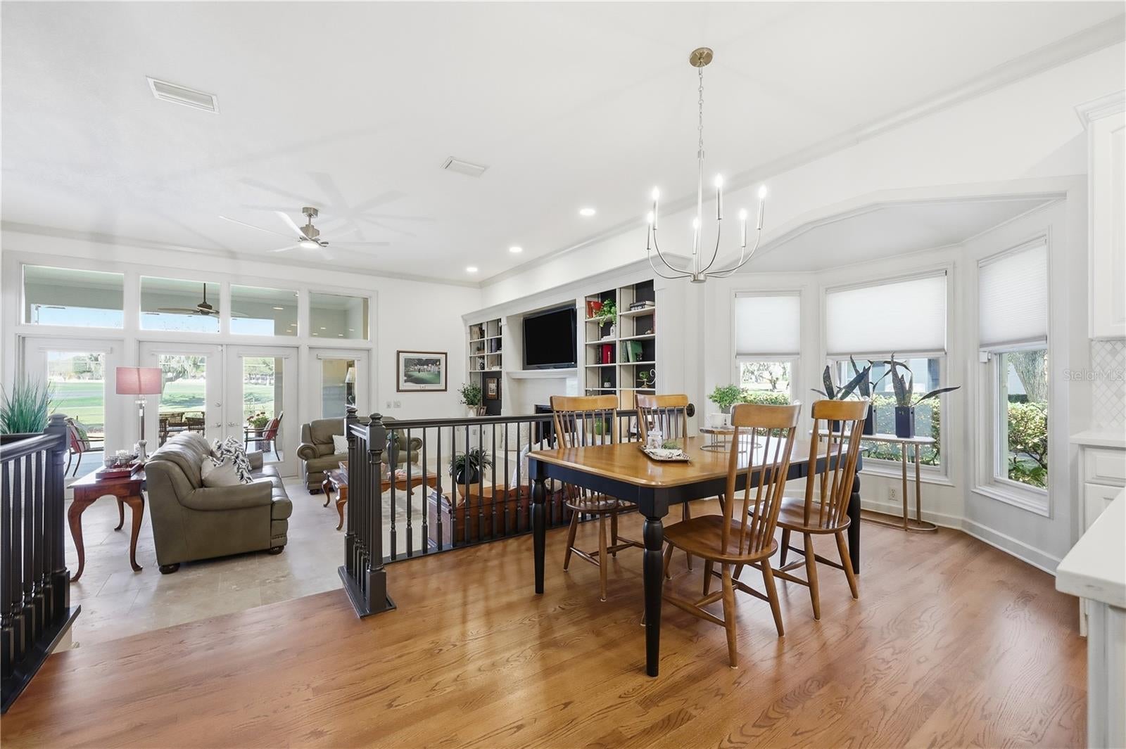 - Built-in Features, Ceiling Fans(s), Central Vaccum, Chair Rail, Crown Molding, Eat-in Kitchen, High Ceilings, Kitchen/Family Room Combo, Open Floorplan, Primary Bedroom Main Floor, Solid Surface Counters, Solid Wood Cabinets, Stone Counters, Walk-In Closet(s), Window Treatments