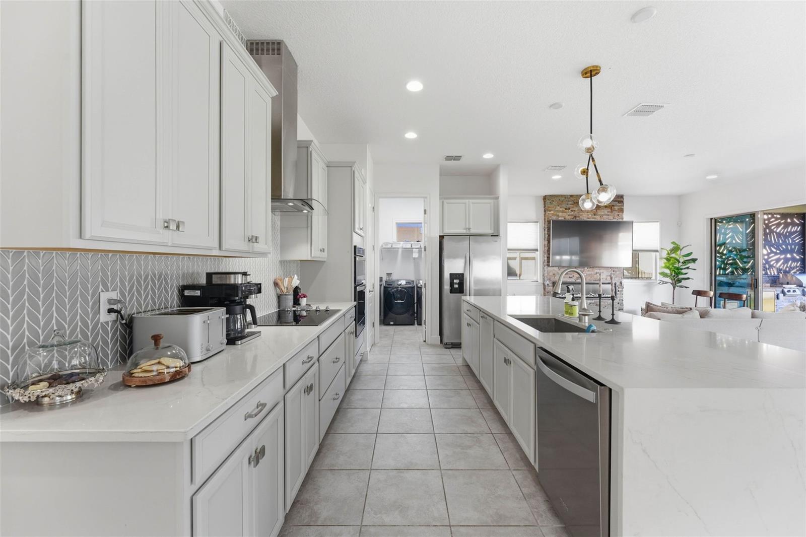 - Built-In Oven, Dishwasher, Disposal, Dryer, Microwave, Refrigerator, Washer, Water Filtration System