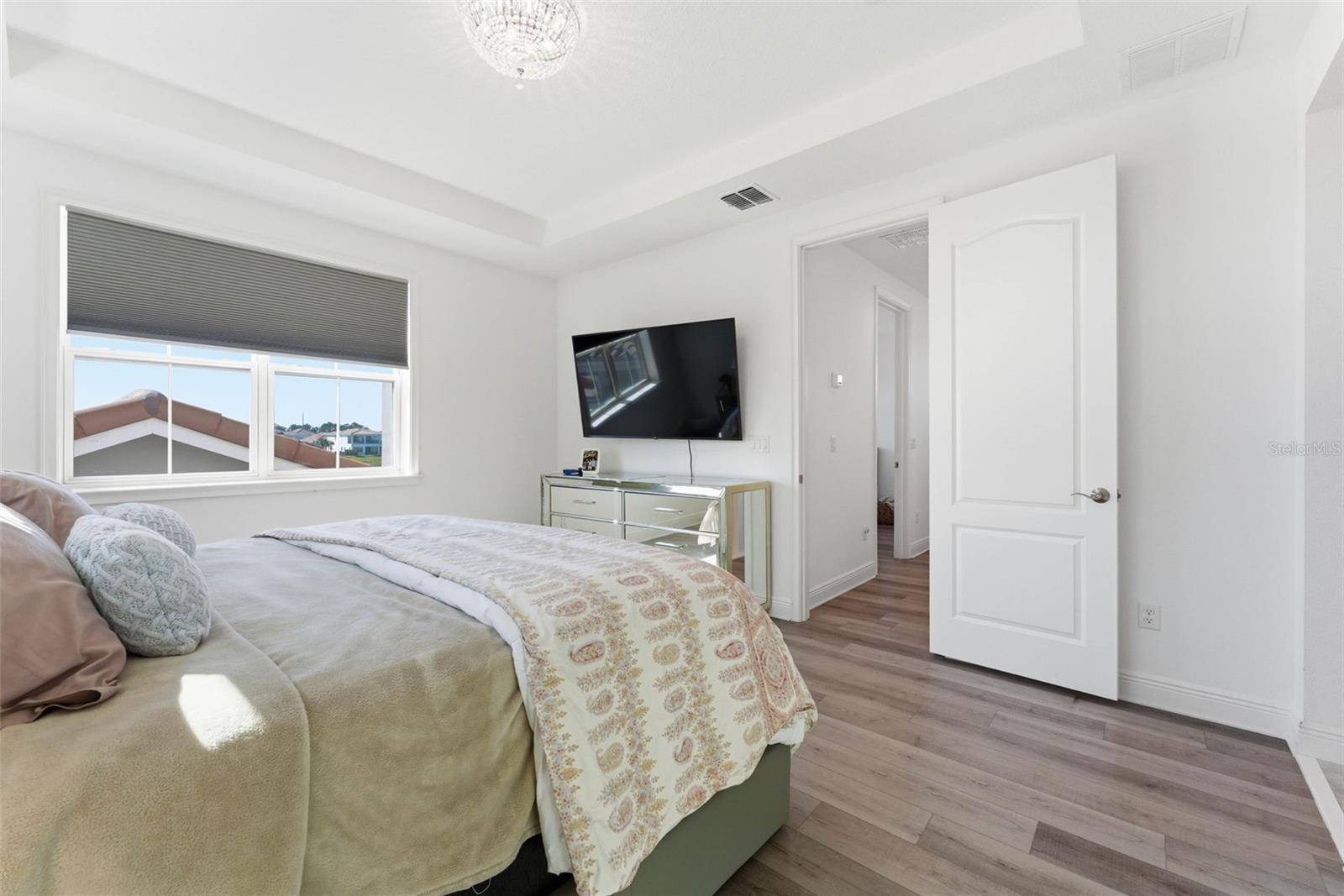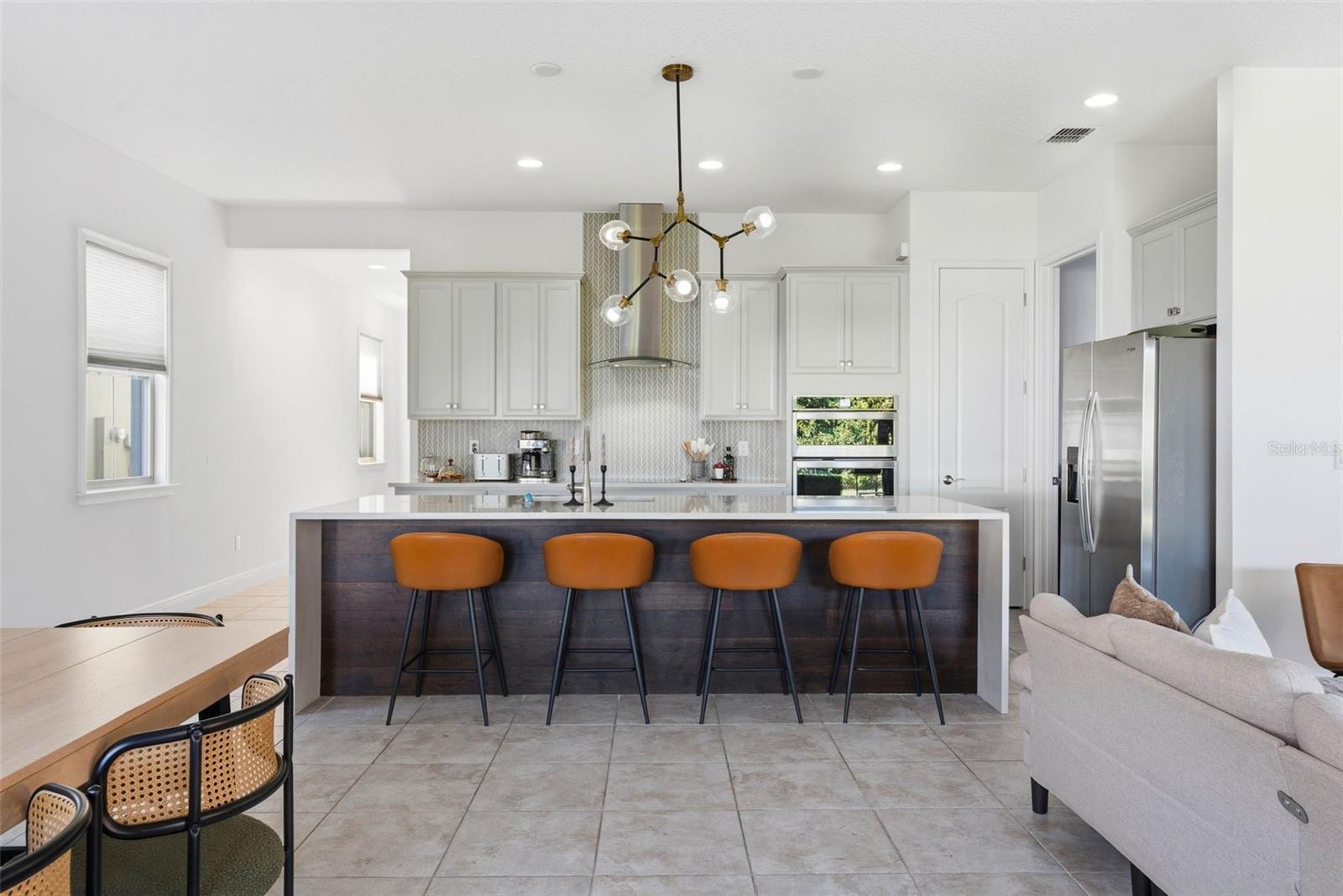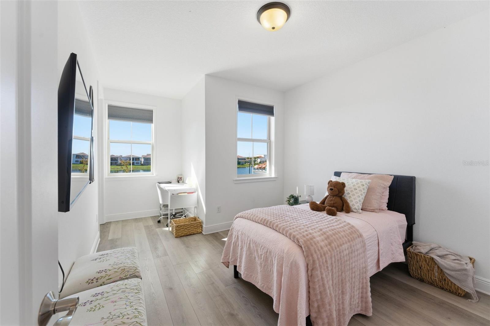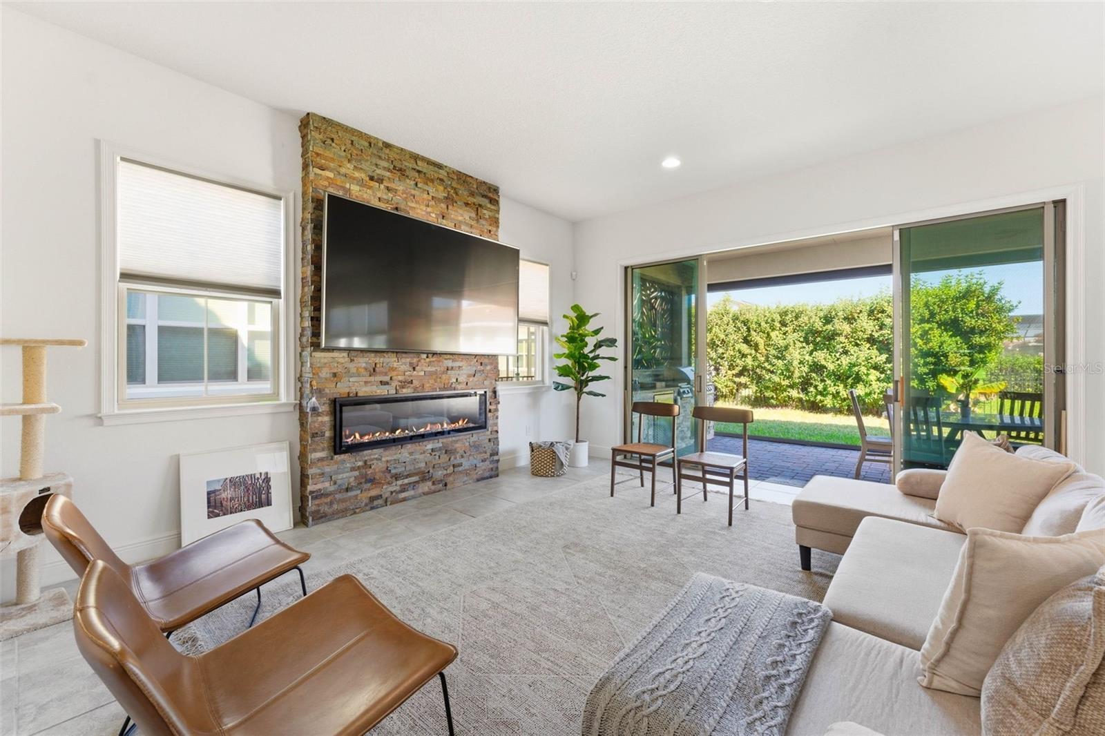 Beautiful home located in the highly desirable Eagle Creek community, featuring 3 bedrooms and 3 bathrooms, filled with upgrades and designed for comfort and sophistication. On the first floor, there is a bedroom with a walk-in closet, ideal for guests or a home office. Upstairs, you’ll find 2 Bedrooms. The primary suite, offering a large and spacious bathroom along with a generous walk-in closet, creating a true retreat. Also on the second floor is another suite, complete with its own walk-in closet and a beautiful water view. The home features carpet only in the closets. The living room showcases ceramic tile flooring, while the second-floor bedrooms include modern vinyl flooring, combining style and easy maintenance. The open and spacious living area is highlighted by a decorative stone accent wall with a built-in fireplace, creating a modern and inviting atmosphere. The gourmet kitchen is a true showstopper, featuring a large quartz island with a waterfall-edge countertop, adding elegance and sophistication to the space. The kitchen also includes a beautiful backsplash, upgraded cabinetry, and built-in microwave and ovens, making it perfect for entertaining. The outdoor area is ideal for relaxation and gatherings, offering a covered patio with motorized screens, a summer kitchen, a heated jacuzzi, and a pleasant garden area. The laundry room is conveniently located near the kitchen and comes equipped with sink, cabinets, and modern Samsung washer and dryer. A spacious garage completes this exceptional home. Located in Lake Nona area, Eagle Creek community, this gated neighborhood offers resort-style amenities, a championship golf course, clubhouse, and an exceptional lifestyle—perfect for families seeking comfort, security, and quality living.