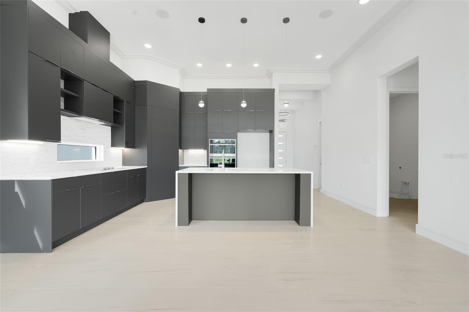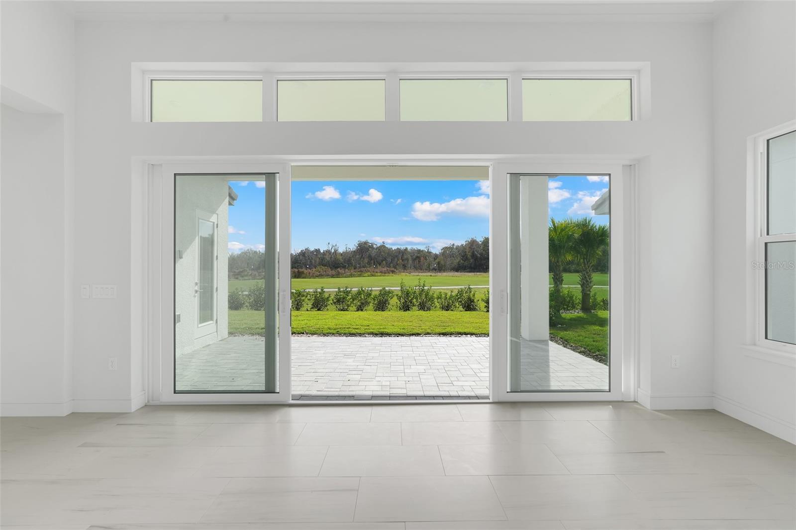 Beautiful inventory Marbella home! This 4 BR/3 BA single story contemporary home is just the right size. No stairs, no trouble! This Marbella is located directly on the 11th hole of Providence Golf Club with plenty of room for a pool. Huge lanai with prewire/preplumb for a summer kitchen and expansive PGT sliding glass doors that bring the oustide in - perfect for entertaining!