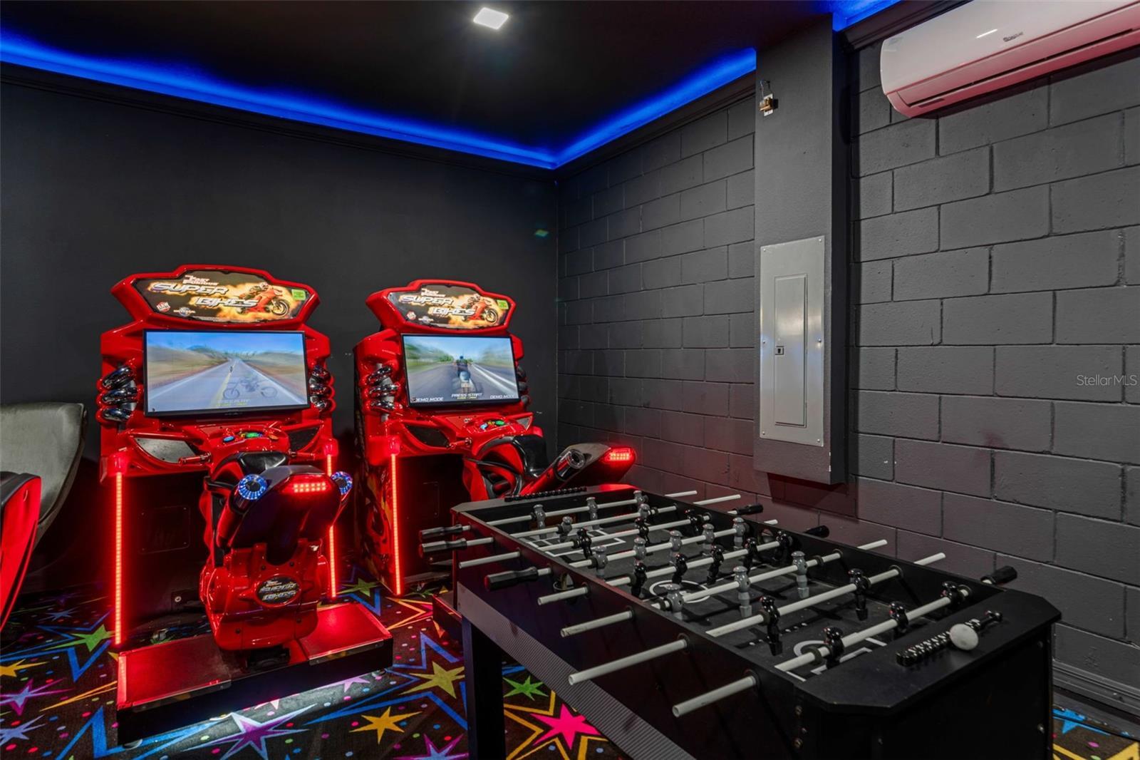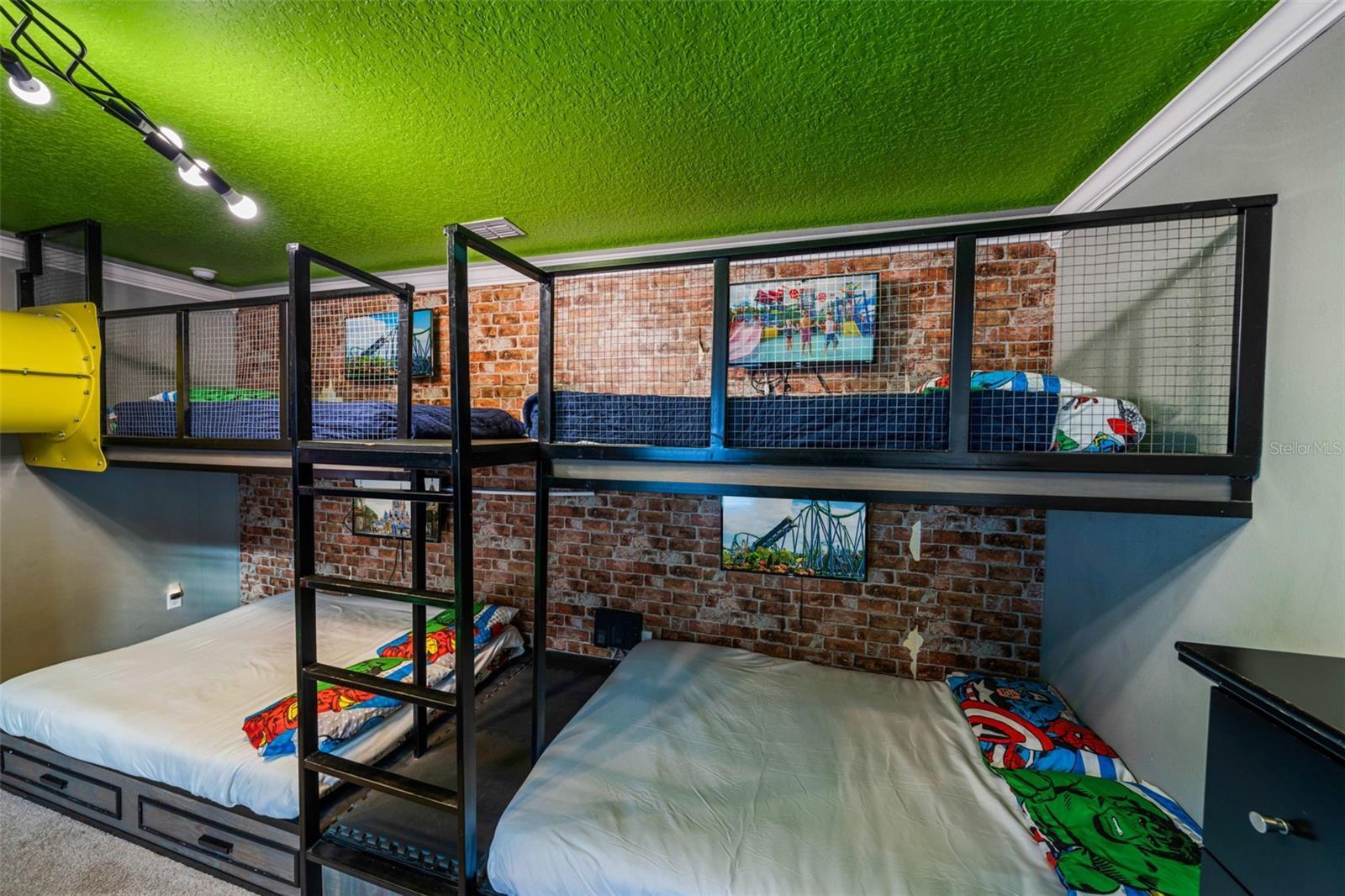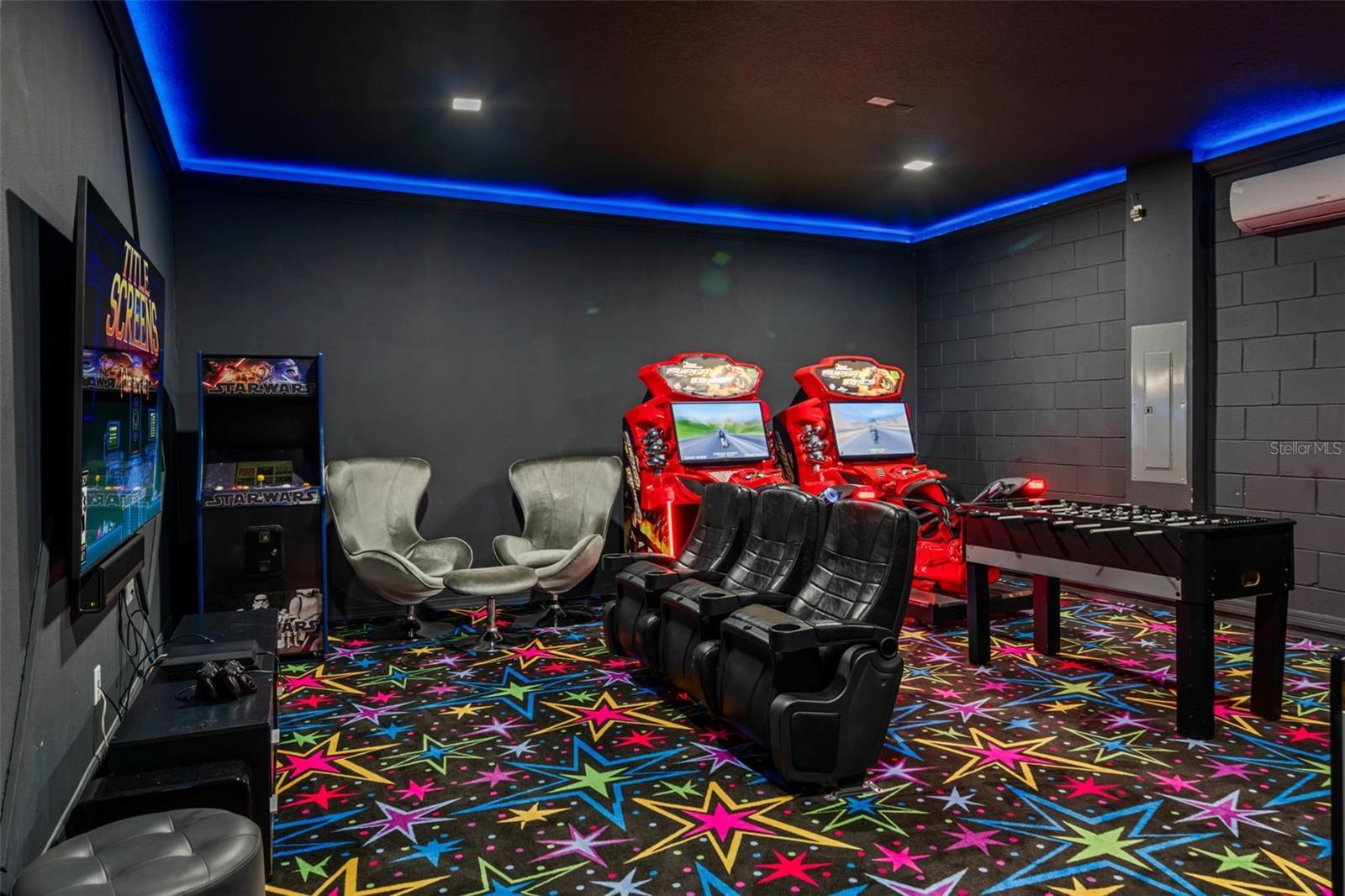 TURNKEY 7-BEDROOM SOLARA RESORT HOME – FULLY FURNISHED Welcome to this stunning 7-bedroom, fully furnished home located in the sought-after Solara Resort community. Designed with both comfort and style in mind, this modern and spacious property offers the perfect blend of relaxation, entertainment, and investment opportunity. The bright, open-concept living area brings together the kitchen, dining, and family room, creating an ideal space for gathering with family and friends. Large sliding doors open to the private screened lanai and pool area, filling the home with natural light and enhancing indoor-outdoor living. The kitchen features stainless steel appliances, granite countertops, bar seating, and ample cabinetry—perfect for casual meals or hosting. The thoughtful layout makes entertaining easy and enjoyable. Two generously sized primary bedrooms are located on the first floor, offering convenience and privacy. Step outside to the spacious lanai with outdoor dining for six, sun loungers, and a charming tiki-style bar. The private pool includes a safety fence, spill-over spa, and a pool bathroom with direct outdoor access—ideal for enjoying Florida’s sunshine year-round. The first floor also includes a themed game room complete with air hockey, foosball, arcade games, and comfortable seating, providing fun for all ages. Upstairs, you’ll find an incredible Superhero-themed bedroom featuring custom twin-over-full bunk beds, multiple TVs, a foam pit, and a slide—truly a guest favorite. An additional upstairs loft offers a pool table, TV, and cozy seating, creating another inviting space to unwind. This home is move-in or rental ready, making it an excellent primary residence, vacation home, or income-producing property. Don’t miss this opportunity to own a beautifully maintained Solara Resort home with exceptional features and strong appeal. Schedule your showing today.