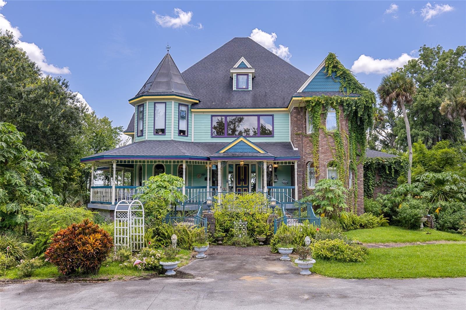 Stunning three-story Victorian lakefront estate on 6.24 private acres! This extraordinary custom-built Victorian home on the shores of Lake Marion is a rare gem offering over 8,000 square feet of luxurious living space. On a secluded 6.24-acre lot, this one-of-a-kind property provides a blend of elegance, privacy and lakefront serenity. From the moment you enter, you're greeted by a grand two-story foyer featuring twin sweeping staircases, a dramatic entrance that sets the tone for the entire home. Designed with meticulous attention to detail, this five-bedroom, 6.5-bath residence features extensive crown and dentil molding, high tray ceilings and custom-built cabinetry throughout. Each of the five spacious bedrooms includes its own private en-suite bath, ensuring comfort and privacy for family and guests. The main-floor primary suite is a retreat, complete with a fireplace, luxurious soaking tub, dual vanities and a spacious walk-in shower. The main level also boasts a formal dining room with butler’s pantry, a bright eat-in kitchen that opens to the great room and a cozy fireplace framed by elegant built-ins, ideal for entertaining or enjoying quiet evenings at home. Enjoy panoramic lake views from the glass-enclosed office or relax on the wrap-around porch while watching wildlife and taking in peaceful scenery. The fully finished lower level includes a soundproof music room, and multiple additional spaces ideal for a home theater, office or extra bedrooms. Additional features include an extended brick-paved driveway with ample parking. Expansive backyard ideal for outdoor activities. Incredible privacy and tranquility. New air conditioner in 2021, new roof in 2020, boat dock in 2021, 7-zone new irrigation system in 2023, 3-zone landscape lighting installed in 2023, can be remotely controlled, new propane gas generator, Smart home control system and two outdoor 220-volt power outlets for RVs. This lakefront estate is one of a kind, schedule your private tour today and experience the unmatched charm and elegance of this spectacular home! Parcel 28-27-30-000000-042090 (1.15 acres), 28-27-30-000000-042100 (1.62 acres), 28-27-30-000000-042140 (2.37 acres), 28-27-30-30-000000-042130 (1.10 acres).