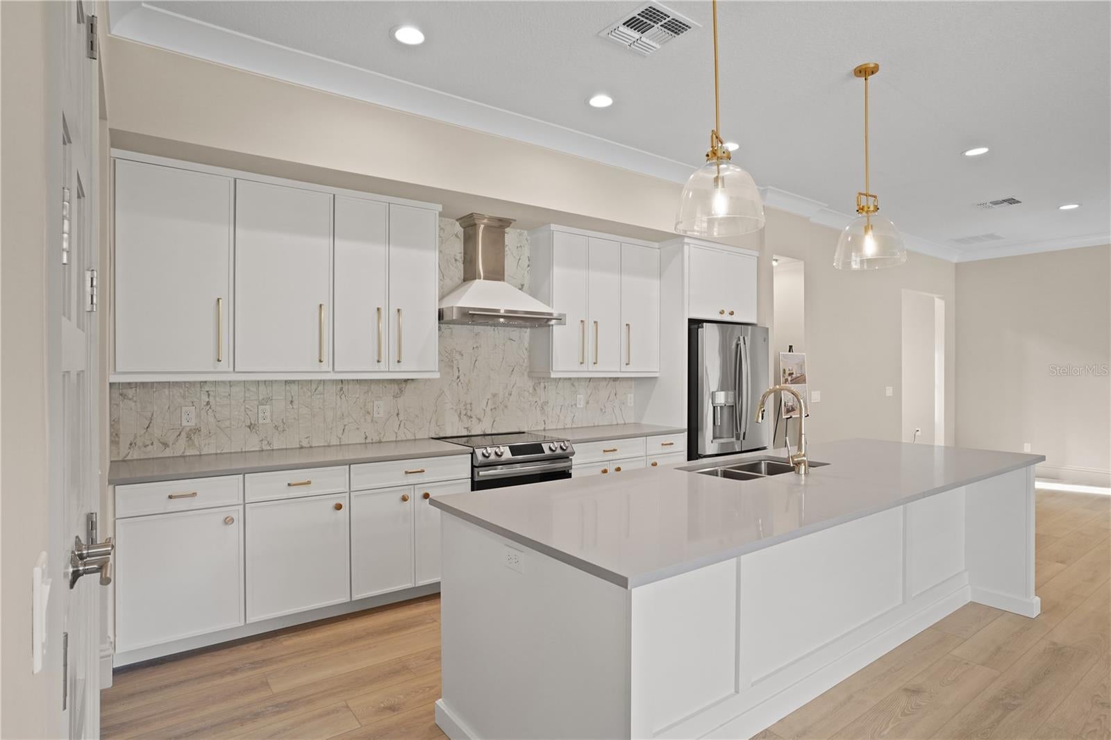 One or more photo(s) has been virtually staged. Don't miss 539 Sanctuary Golf Place! Welcome to The Sienna Plan - Brand-new 5-bedroom 4 bathroom custom home in the gated Sanctuary Golf Estates, blending privacy, elegance, and modern functionality. This custom-built masterpiece by Beck Custom Homes features 5 bedrooms, 4 bathrooms, and 3,274 square feet of living space. This home balances thoughtful luxury with everyday comfort. The open-concept layout features designer finishes, custom paint tones, and a chef’s kitchen with premium stainless steel appliances, brushed gold fixtures, a large island, and an oversized walk-in pantry. The flexible layout includes a first-floor primary suite with a spa-like bath and a custom 17x6 walk-in closet. Two additional downstairs bedrooms share a Jack-and-Jill bath, while two upstairs bedrooms and a large bonus room enjoy a dual-vanity bath. A downstairs office/den offers work-from-home ease or an additional bedroom. California Closet built-ins are featured in all bedrooms for streamlined organization. The expansive back patio and landscaped yard with no rear neighbors offer privacy and ROOM TO DESIGN YOUR DREAM POOL. Built for efficiency and longevity, upgrades include enhanced insulation, radiant barrier roof decking, long-life tile roof, gutters, and paver drive. An oversized 3-car garage with volume ceilings, a full utility room, and abundant storage complete the interior. Located across from undeveloped conservation land, the home feels like a private retreat and back up to the former Errol Golf Course. Sanctuary Golf Estates includes a park and playground and sits minutes from the 429 Expressway and the best of Apopka and Orlando.