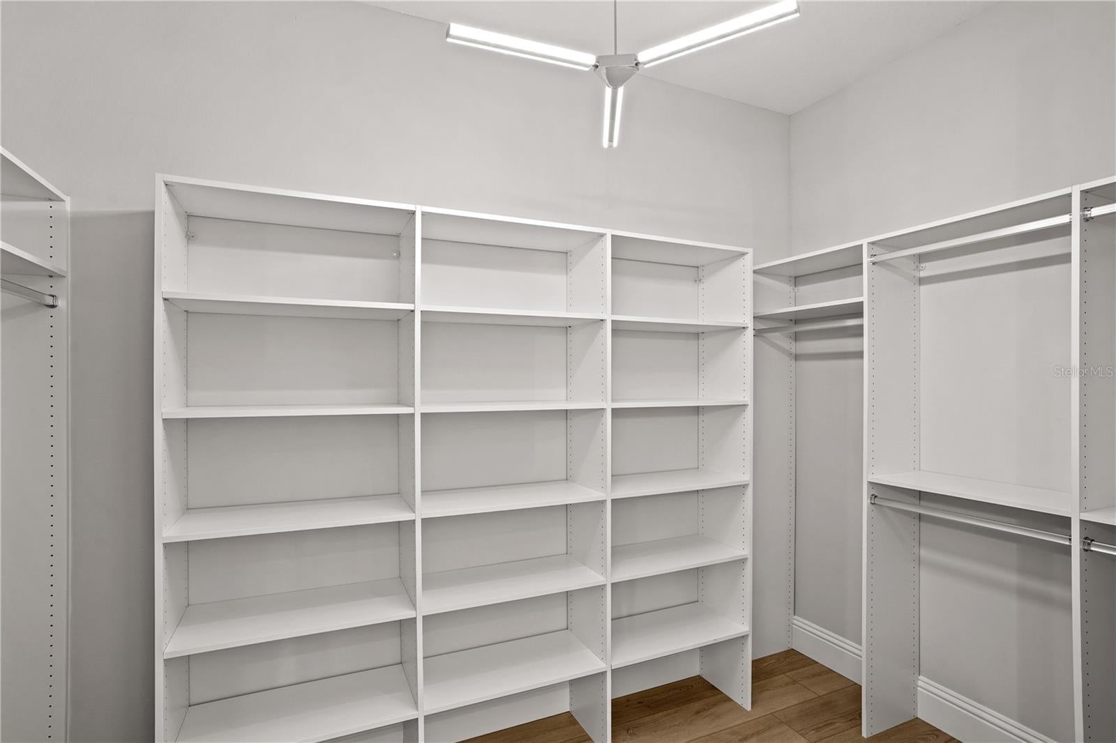 - Ceiling Fans(s), Crown Molding, High Ceilings, Kitchen/Family Room Combo, Living Room/Dining Room Combo, Open Floorplan, Primary Bedroom Main Floor, Solid Surface Counters, Thermostat, Walk-In Closet(s)