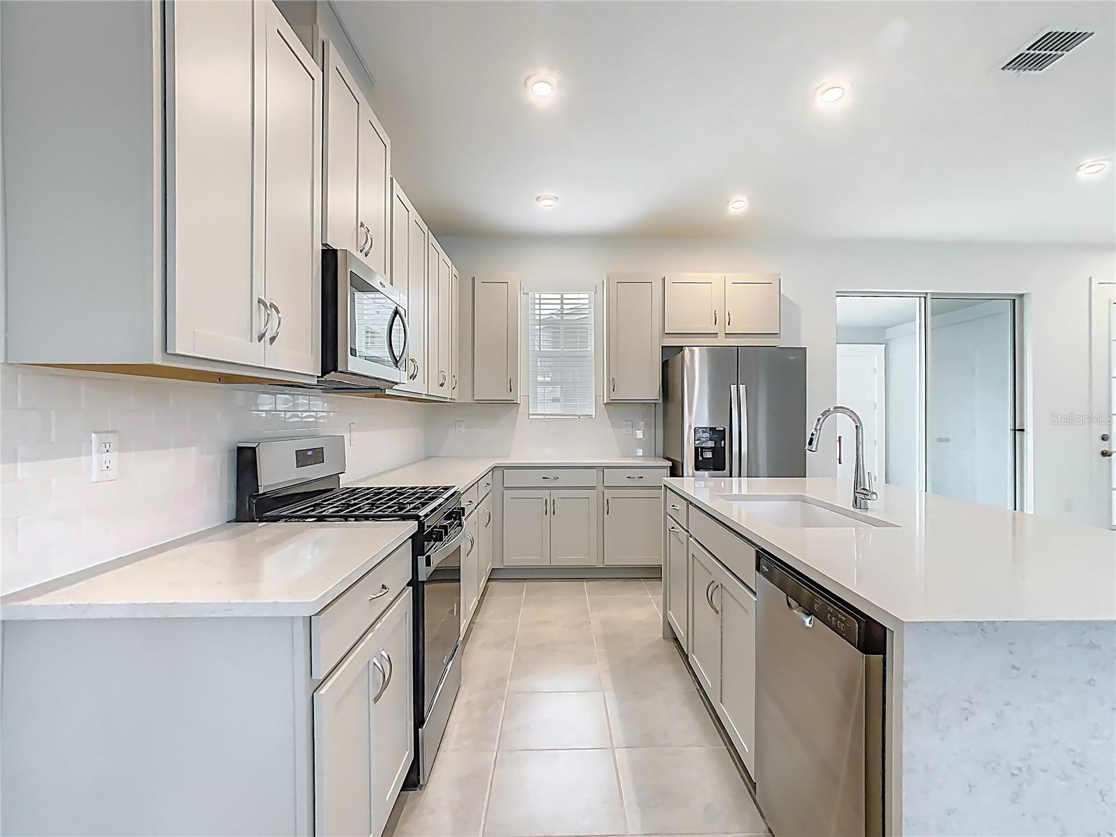New Luxury Townhome in Celebration with All porcelain tiled floors. Island Village new construction The Amelia is a two-story home featuring 3 bedrooms, 2.5 bathrooms, 1,652 square feet, and a detached two-car garage. Upon entering, you’re welcomed by a warm and inviting foyer that opens to a spacious kitchen, great room, and cozy breakfast nook in an open-concept layout. The kitchen features a spacious island with a breakfast bar for casual dining and a gas service for the range or cooktop. Upstairs, the owner’s suite offers dual walk-in closets and a dual-sink vanity, while two additional bedrooms share a convenient Jack-and-Jill bathroom. The Amelia also includes a large lanai, partially covered for outdoor enjoyment. This home has been upgraded with 42" solid wood kitchen cabinets, porcelain tile floors throughout all walking and bedroom areas downstairs and upstairs, additional cabinetry in the laundry room, and designer stair rails with upgraded luxury laminated planks for the stair steps. This home is brand new! Be the first one to enjoy this beutiful home and all the amenities that the Celebration community has for your enjoyment.