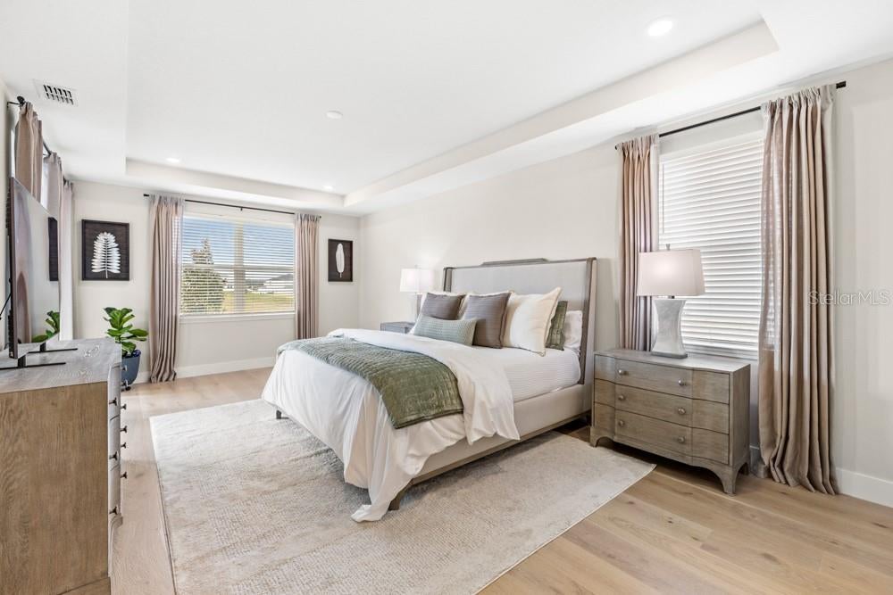 One or more photo(s) has been virtually staged. Welcome to 5148 Foothills Preserve Loop. This is an exceptional home built in 2025, and known as the Easley model by Pulte. This single-story residence offers over 2,700 square feet, including 3 bedrooms, 3 full bathrooms, a dedicated office, and a 3-car garage. The home sits on an expansive 80-foot-wide homesite with no direct rear neighbors, providing rare privacy and beautiful sunset views behind the home. From the moment you enter, tall ceilings, 8-foot doors, and upgraded 5-inch baseboards create a clean, elevated aesthetic throughout. The open-concept gathering and great room is the true centerpiece of the home. An oversized pocket sliding glass door opens seamlessly to the covered lanai. The gathering room is pre-wired for seven speakers, making it ideal for a surround-sound setup. The kitchen is both functional and thoughtfully upgraded, featuring quartz countertops, an upgraded backsplash, extended wood cabinetry, a natural gas cooktop and professional grade KitchenAid appliances. Adjacent living spaces showcase 9-inch wide, long-plank white oak hardwood flooring, something you will not find in any other home in the community! The primary suite serves as a retreat, featuring an upgraded structural option with the sliding glass door, pre-wiring for five speakers, and an upgraded super shower with three shower heads. Additional flex spaces, including the dedicated office, are pre-wired for audio and offer versatility for working from home or creating additional living areas. Past the main living area is the laundry room, which has been upgraded with completed cabinetry and a deep utility sink for added convenience. The outdoor lanai is already roughed in for a future outdoor kitchen with gas and plumbing connections. Additional upgrades include EV charger rough-in in the garage, upgraded irrigation heads, three security camera drops, a wireless access point (WAP) drop, and a large network panel designed for easy expansion of security, audio, and networking systems. All of these features without compromising on location! Foothills Preserve is a gated community with amenities including a community pool and a playground, and it is all just minutes from Downtown Mount Dora. Located off of Stoneybrook Hills Parkway, there is a Publix located minutes from the entrance of the community. Living in this community, you will also enjoy quick access to the 429 Expressway, putting Downtown Orlando, Disney, and Orlando International Airport within a 45-minute drive. Why wait to build? This turnkey home is ready for you. Call today to schedule a private tour.