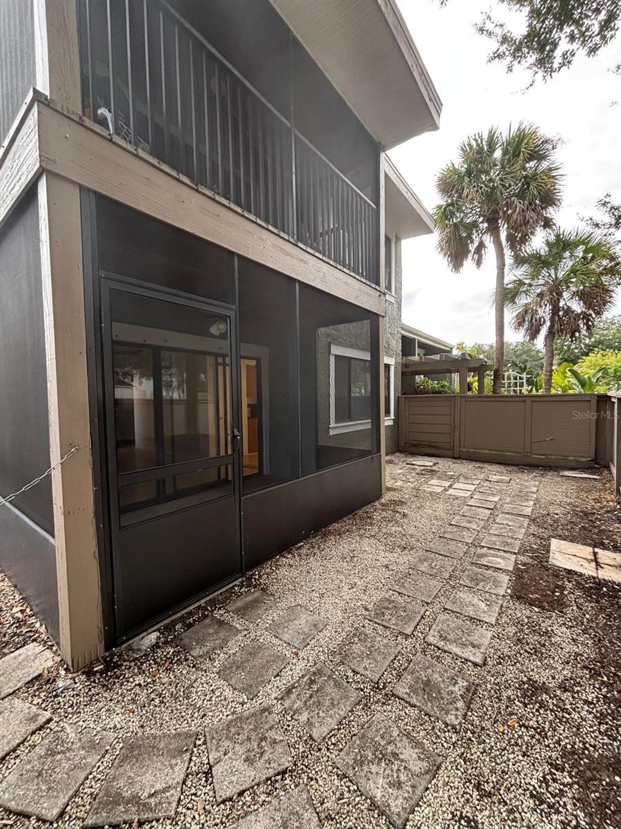 First floor condo in the beautiful Windhover Condos. With your front door right in the front of the parking lot it provides easy access to the unit with an additional storage closet with washer and dryer. As you walk inside, you'll find the primary bedroom at the front of the home with the full bathroom in the hallway. Make your way back into the spacious living room overlooking the exterior screened in porch with your private fenced in garden space. The condo circles into the galley kitchen with additional eating space with a big window. Location is everything being close proximity to City Walk, Hard Rock, theme parks, outlet mall and the best shopping and dining. This property es ready to move in