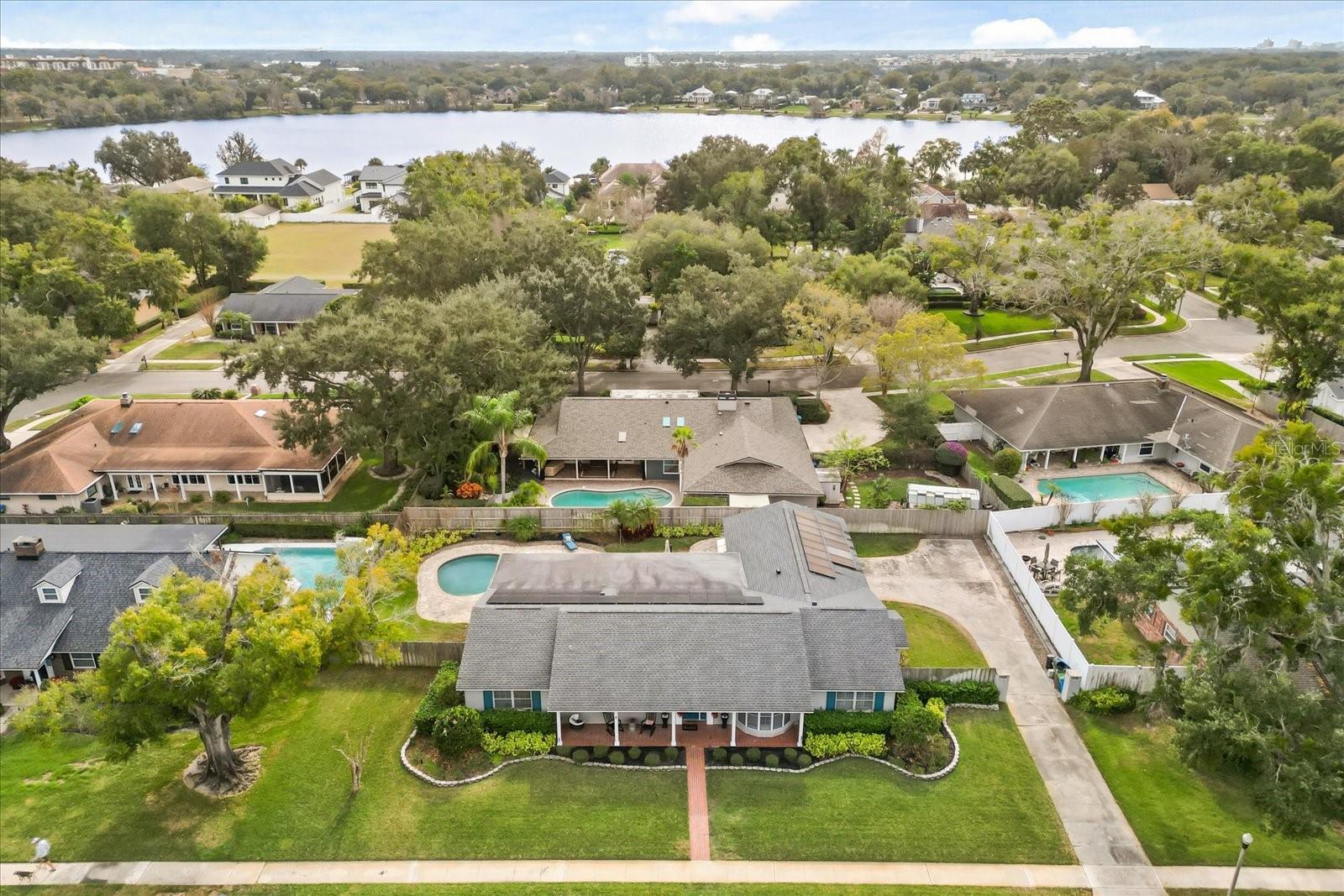 Welcome home to one of the established Maitland neighborhoods in a pristine location close to everything, Maitland Groves. A lovely brick walkway invites you up to a charming entrance with a bricked front porch. A four- or five-bedroom, four-bath home features nearly 3,000 square feet with a generous flex space, checks all the boxes. The spaces have been opened with living spilling into dining and a bay window adding charm to an ideal gathering room to entertain in. Custom tile throughout for seamless design with an abundance of light making the spaces inviting and easy to relax in. Kitchen is updated with custom 42-inch wood cabinets, custom moldings, stainless appliances with new dishwasher, gas range and oven, granite counters with counter seating, and unbelievable storage and cabinet space. Florida room spans the back of the house with a bricked floor, a wet bar and a dedicated office/bedroom. Updated primary bedroom with a large walk-in closet. Main bath with dual sinks and new rainfall shower heads, tower storage cabinets, seamless glass with walk-in shower, stone floor and custom tile. Outside patio enjoys a paver deck with large Florida pool and plenty of green space with room to grow. Other updates include roof (2021), solar energy system so energy bills are low, recently painted in select areas, wood laminate floors in all bedrooms, renovated second and third baths, spacious indoor laundry and mudroom for organization, fenced yard, recessed lighting in living spaces, re-plumbed, plantation shutters, 2021 pool pump, pool converted to saltwater system and new garage door. If you need space, this has it. Terrific schools, close to Interstate 4, downtown Maitland which is home to Lake Lily with a weekly farmers market, independently owned Enzian Theatre, world-class restaurants and fantastic community parks home to many community events.