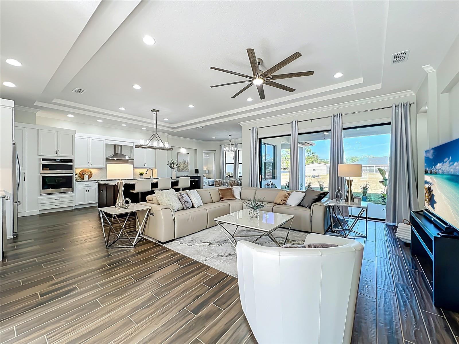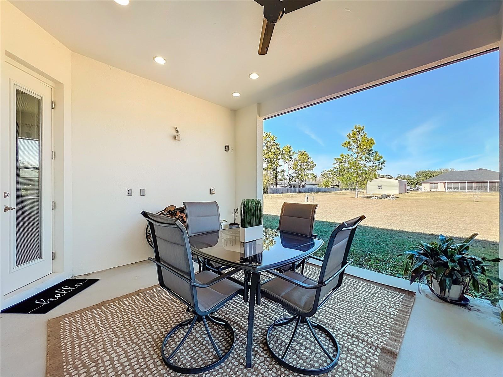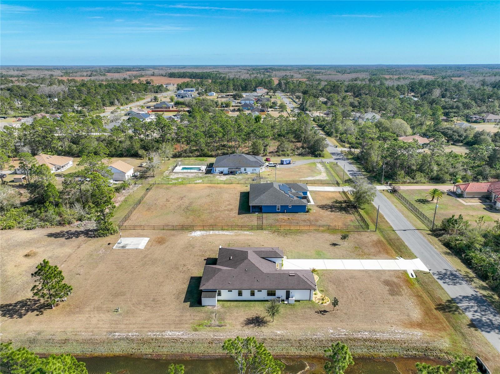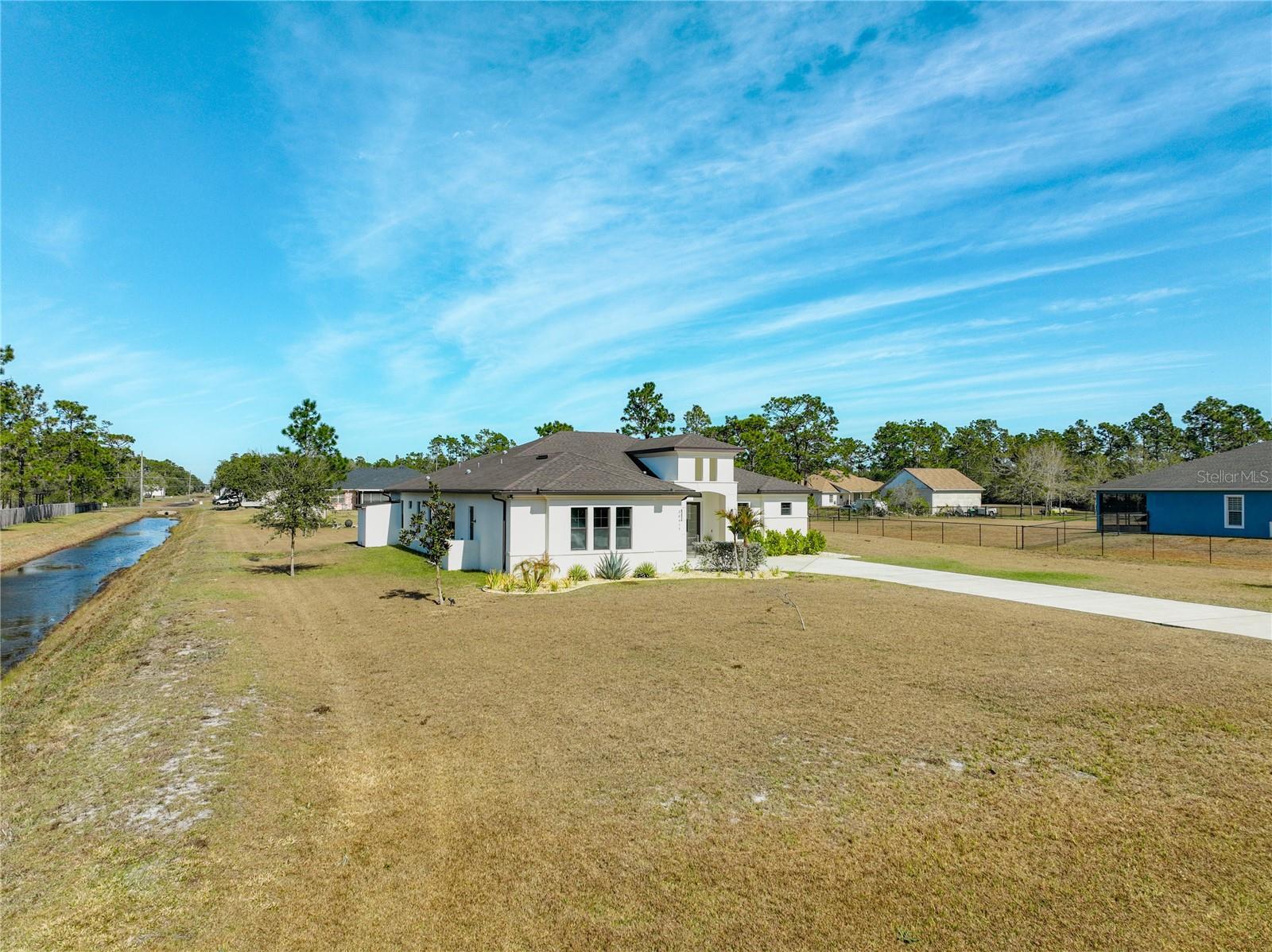 This stunning luxury residence built just five years ago and thoughtfully designed for modern living. This beautiful maintained 4 bedroom, 3 bath home with a 2 car garage sits on an expansive 1.24 acre lot, offering privacy and space. Inside you'll find granite countertops in the kitchen and quartz counter tops in all 3 bathrooms, complemented by modernized light fixtures and high ceilings throughout the home creating a sleek and modern feel. The open kitchen concept layout features a built in wine cooler, a pot filler over stove and a walk-in pantry that flows effortlessly into the iving areas, perfect for everyday living and entertaining. The spacious primary suite offers a large walk-in closet while the home also includes a large walk-in laundry room with built-in cabinetry, adding convenienece and ample storage. Abundant natural light fills the home through oversized windows and additional windows to include inside the closets, bathrooms and garage. The home is also equipped with a whole house water softener system, enduring quality water throughout. The owners have added a 22 X 25 Feet concrete slab in the backyard ready for your desired shed. Designed for both indoor and outdoor living, the property features an Extra large covered lanai and tremendous amount of backyard space, ideal for a pool,entertaining or relaxing. Storage is abundant, with reinforced attic storage above the garage engineered to support additional weight as well as additional supportive attic storage above the primary bedroom, providing safe and practical space for all of your seasonal items. Located in the sought-after Wedgefield community, this home offers a quiet and peaceful setting where homes are spaced apart, providing privacy and a serene lifestyle. Yet it remains convenienelty close to major highways with easy access to Orlando's theme parks, shopping, dining and entertainment.