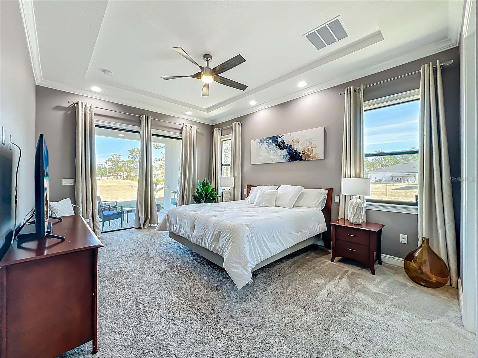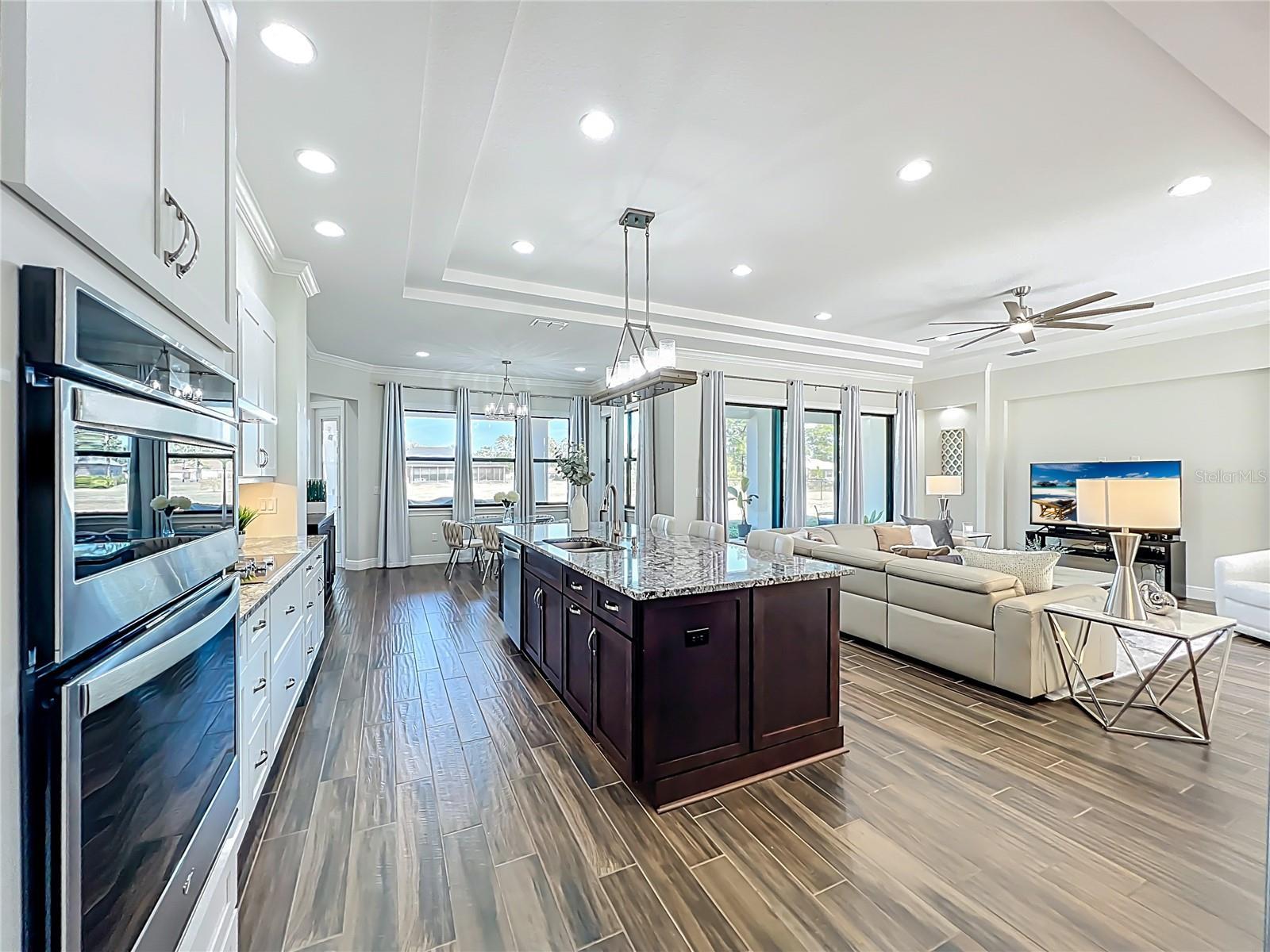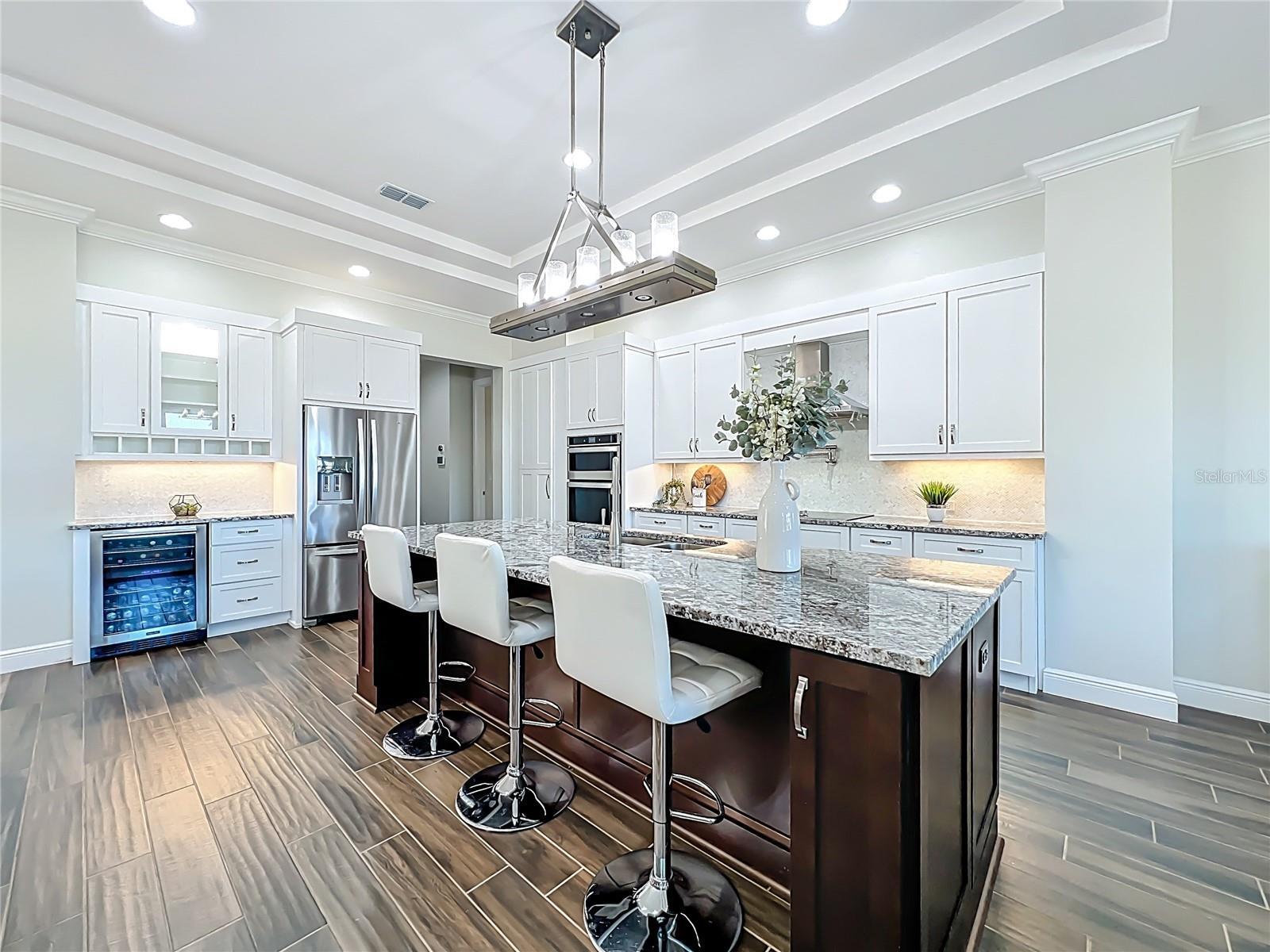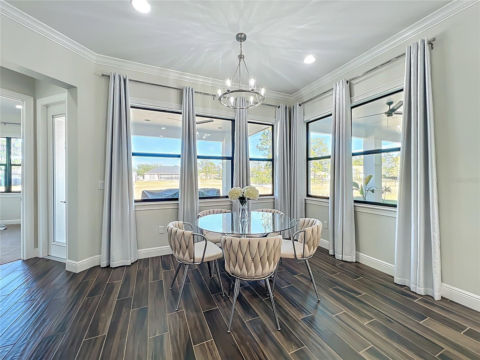 This stunning luxury residence built just five years ago and thoughtfully designed for modern living. This beautiful maintained 4 bedroom, 3 bath home with a 2 car garage sits on an expansive 1.24 acre lot, offering privacy and space. Inside you'll find granite countertops in the kitchen and quartz counter tops in all 3 bathrooms, complemented by modernized light fixtures and high ceilings throughout the home creating a sleek and modern feel. The open kitchen concept layout features a built in wine cooler, a pot filler over stove and a walk-in pantry that flows effortlessly into the iving areas, perfect for everyday living and entertaining. The spacious primary suite offers a large walk-in closet while the home also includes a large walk-in laundry room with built-in cabinetry, adding convenienece and ample storage. Abundant natural light fills the home through oversized windows and additional windows to include inside the closets, bathrooms and garage. The home is also equipped with a whole house water softener system, enduring quality water throughout. The owners have added a 22 X 25 Feet concrete slab in the backyard ready for your desired shed. Designed for both indoor and outdoor living, the property features an Extra large covered lanai and tremendous amount of backyard space, ideal for a pool,entertaining or relaxing. Storage is abundant, with reinforced attic storage above the garage engineered to support additional weight as well as additional supportive attic storage above the primary bedroom, providing safe and practical space for all of your seasonal items. Located in the sought-after Wedgefield community, this home offers a quiet and peaceful setting where homes are spaced apart, providing privacy and a serene lifestyle. Yet it remains convenienelty close to major highways with easy access to Orlando's theme parks, shopping, dining and entertainment.