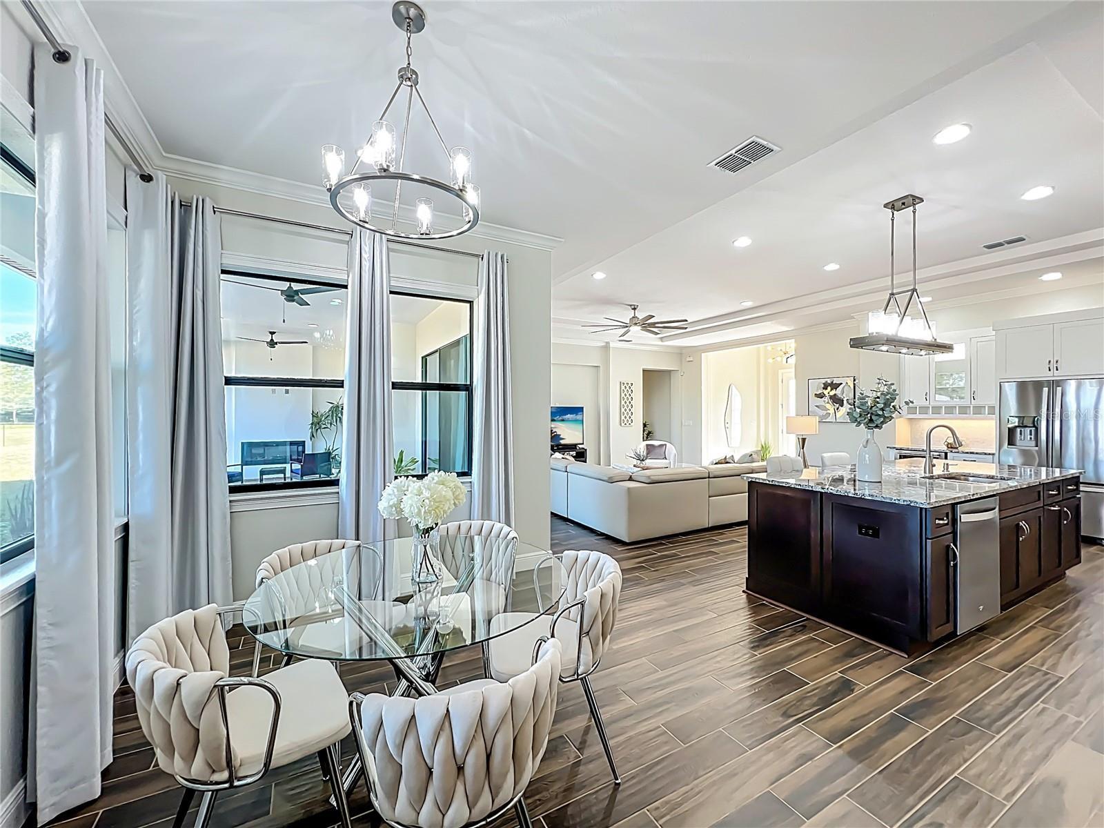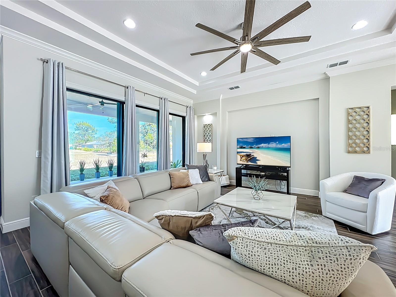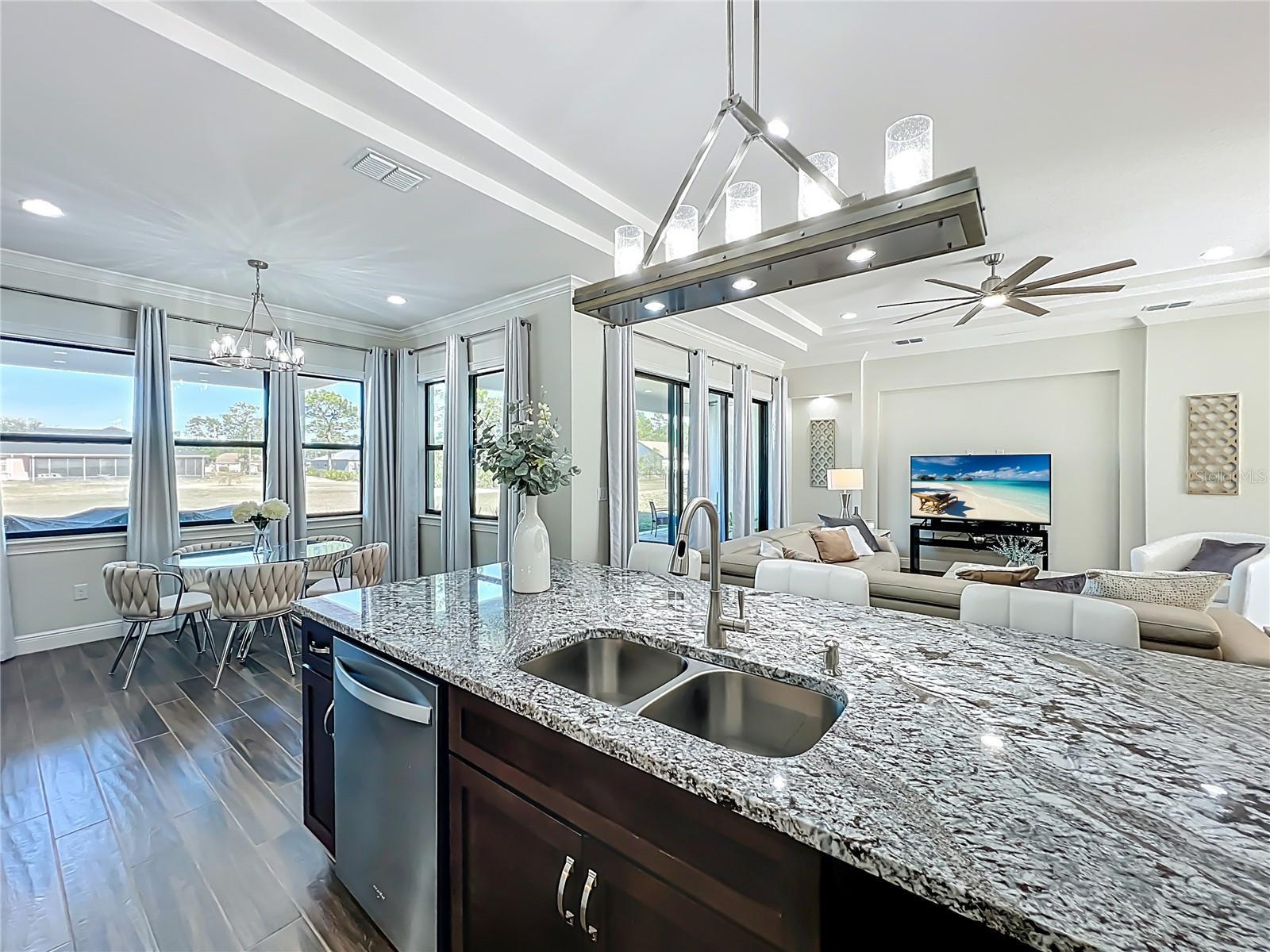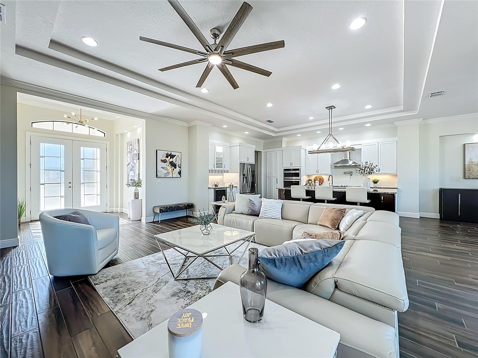 This stunning luxury residence built just five years ago and thoughtfully designed for modern living. This beautiful maintained 4 bedroom, 3 bath home with a 2 car garage sits on an expansive 1.24 acre lot, offering privacy and space. Inside you'll find granite countertops in the kitchen and quartz counter tops in all 3 bathrooms, complemented by modernized light fixtures and high ceilings throughout the home creating a sleek and modern feel. The open kitchen concept layout features a built in wine cooler, a pot filler over stove and a walk-in pantry that flows effortlessly into the iving areas, perfect for everyday living and entertaining. The spacious primary suite offers a large walk-in closet while the home also includes a large walk-in laundry room with built-in cabinetry, adding convenienece and ample storage. Abundant natural light fills the home through oversized windows and additional windows to include inside the closets, bathrooms and garage. The home is also equipped with a whole house water softener system, enduring quality water throughout. The owners have added a 22 X 25 Feet concrete slab in the backyard ready for your desired shed. Designed for both indoor and outdoor living, the property features an Extra large covered lanai and tremendous amount of backyard space, ideal for a pool,entertaining or relaxing. Storage is abundant, with reinforced attic storage above the garage engineered to support additional weight as well as additional supportive attic storage above the primary bedroom, providing safe and practical space for all of your seasonal items. Located in the sought-after Wedgefield community, this home offers a quiet and peaceful setting where homes are spaced apart, providing privacy and a serene lifestyle. Yet it remains convenienelty close to major highways with easy access to Orlando's theme parks, shopping, dining and entertainment.
