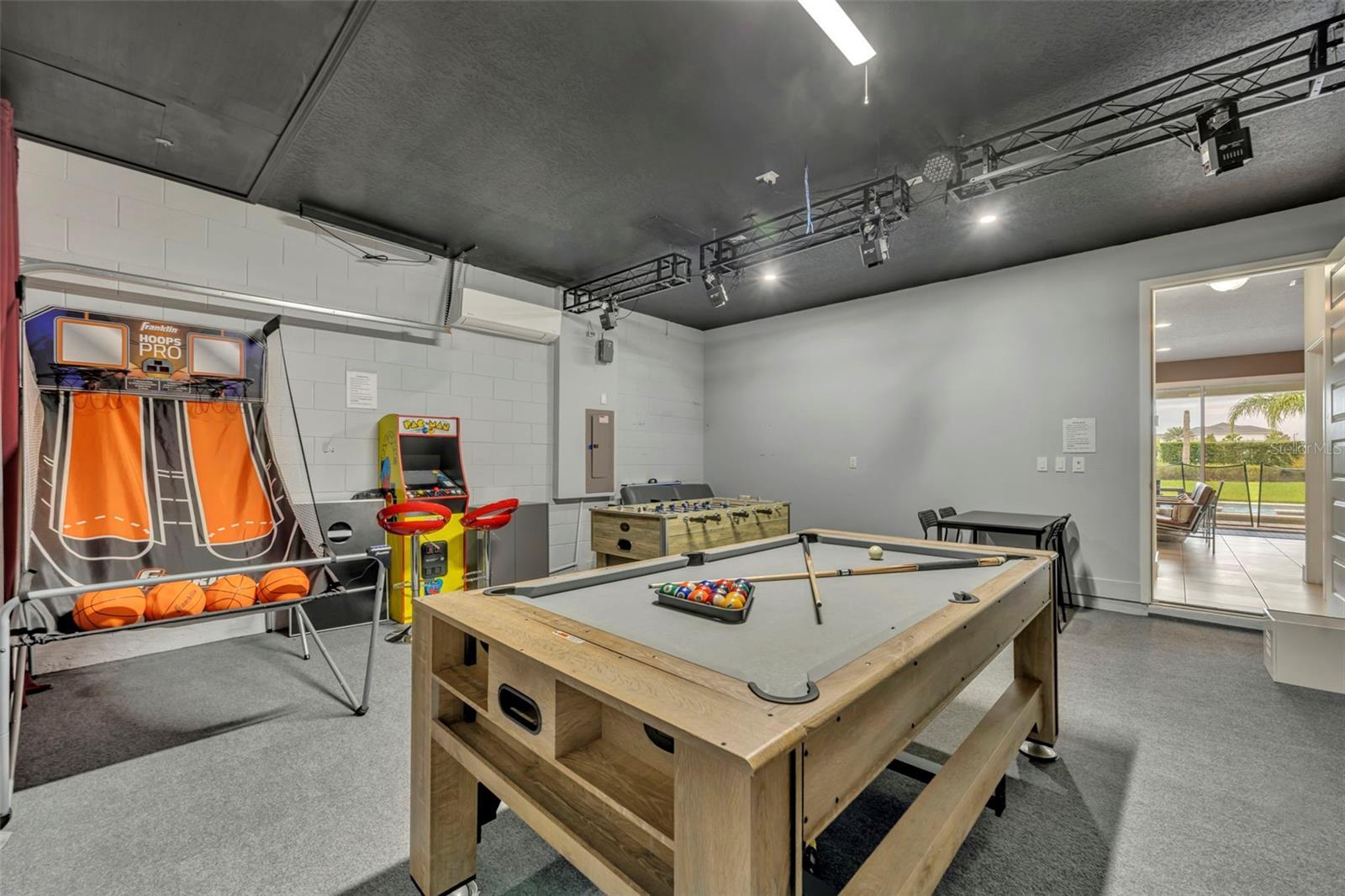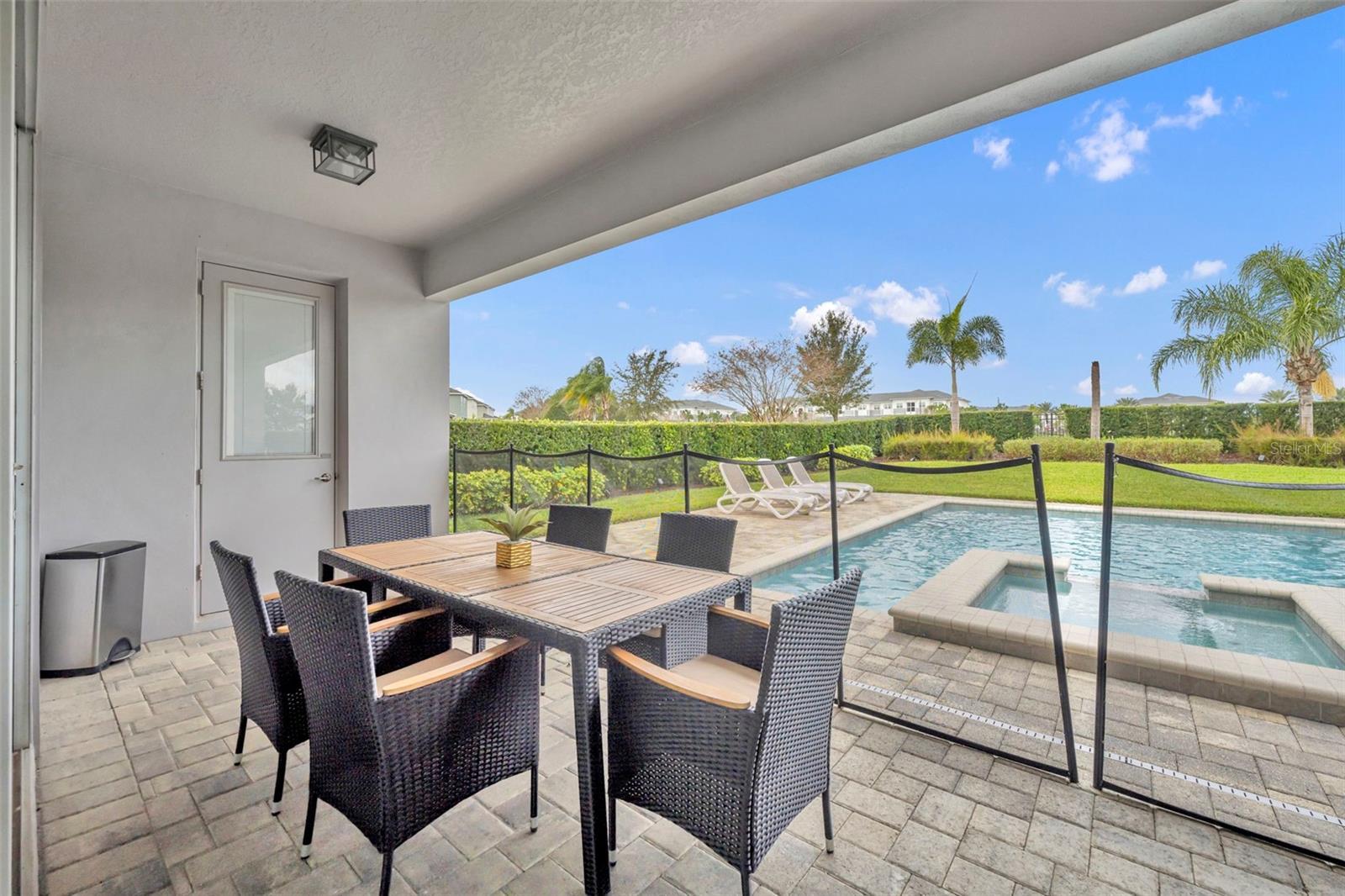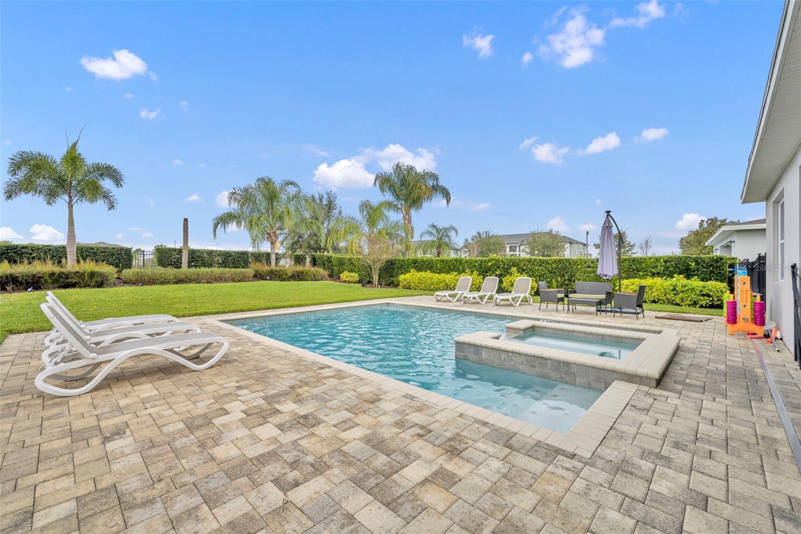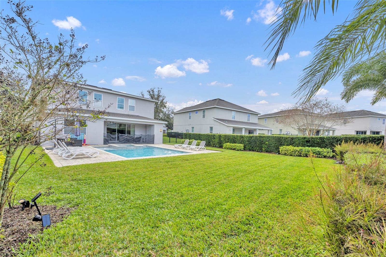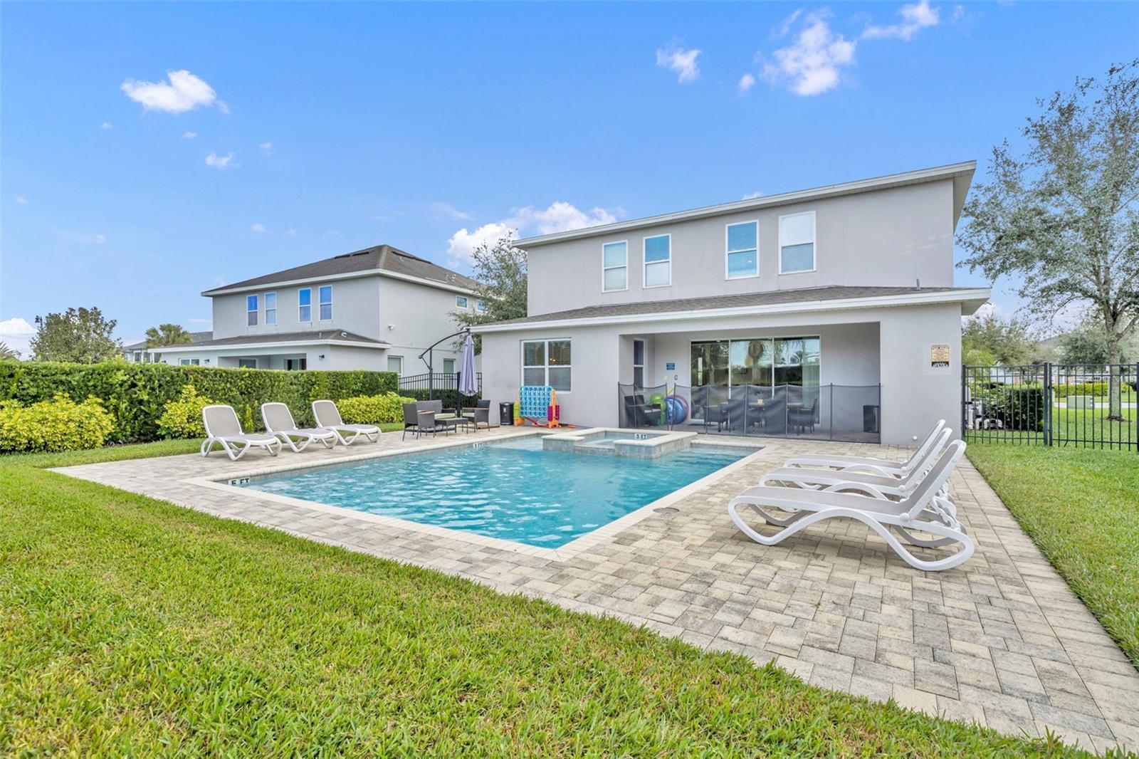 Welcome to your opportunity to own an immaculate luxury home. It is perfect for use as a primary residence, vacation retreat, or income-producing investment. This open-concept, fully furnished, designer-decorated home is truly move-in ready and ideal for both short- and long-term rentals. The spacious kitchen features 42” cabinetry, granite countertops, an oversized island, and stainless-steel appliances, including a newer refrigerator (December 2023). The kitchen, dining, and family room flow seamlessly together and overlook the covered lanai, expansive pool and spa, and a beautifully landscaped, private fenced backyard. Complete with lighting and plenty of green space. With no front or rear neighbors, enjoy peaceful surroundings and stunning sunset views. Located on a quiet area in the community with convenient access through the rear gate, this home offers both privacy and ease of entry. Seven mounted TVs are included. A first-floor bedroom with adjacent full bath is ideal for guests or multi-generational living. Upstairs, you’ll find four additional bedrooms—two themed rooms (two with balconies!)—and a luxurious primary suite featuring a walk-in closet and spa-like ensuite with double vanities and a dual shower. The second-floor loft provides a game area complete with a mounted console, while a private office is tucked away for quiet productivity. The garage has been converted into a game room, with the option to easily convert it back to a two-car garage. Enjoy low-maintenance living with HOA-included lawn care, pest control, internet, cable, phone, and more. Ownership also includes access to the Encore Clubhouse amenities, featuring a 10-acre water park, beach-entry pool, fitness center, basketball and tennis courts, and on-site dining. Recent upgrades include a newer pool heater (February 2023) and AC compressor (November 2022). All 2026 rental bookings convey to the new owner, along with a proven history of 5-star guest reviews. Located within the premier gated Encore at Reunion West community—roughly 10 minutes from Disney and close to shopping, golf, dining, and major roadways including 192, 429, and I-4—this exceptional home truly offers resort-style living every day. Buyer to verify all information, measurements, and details deemed important.